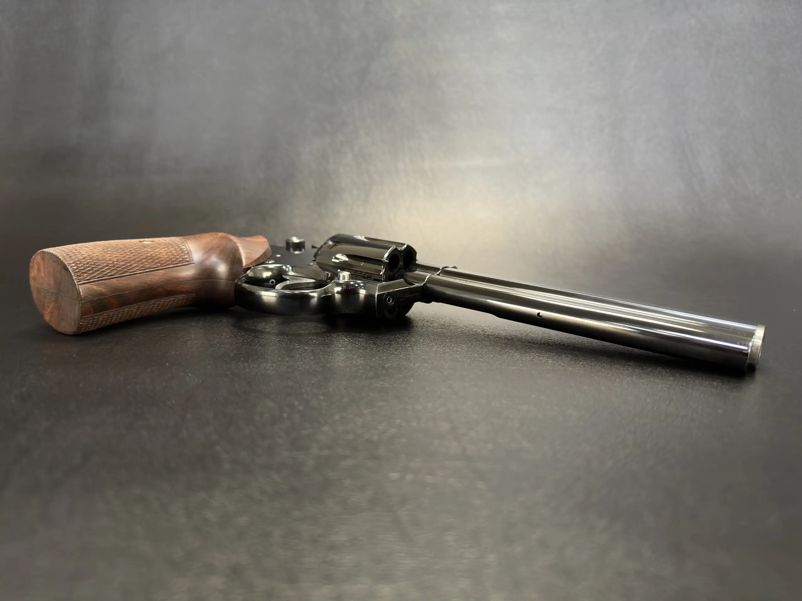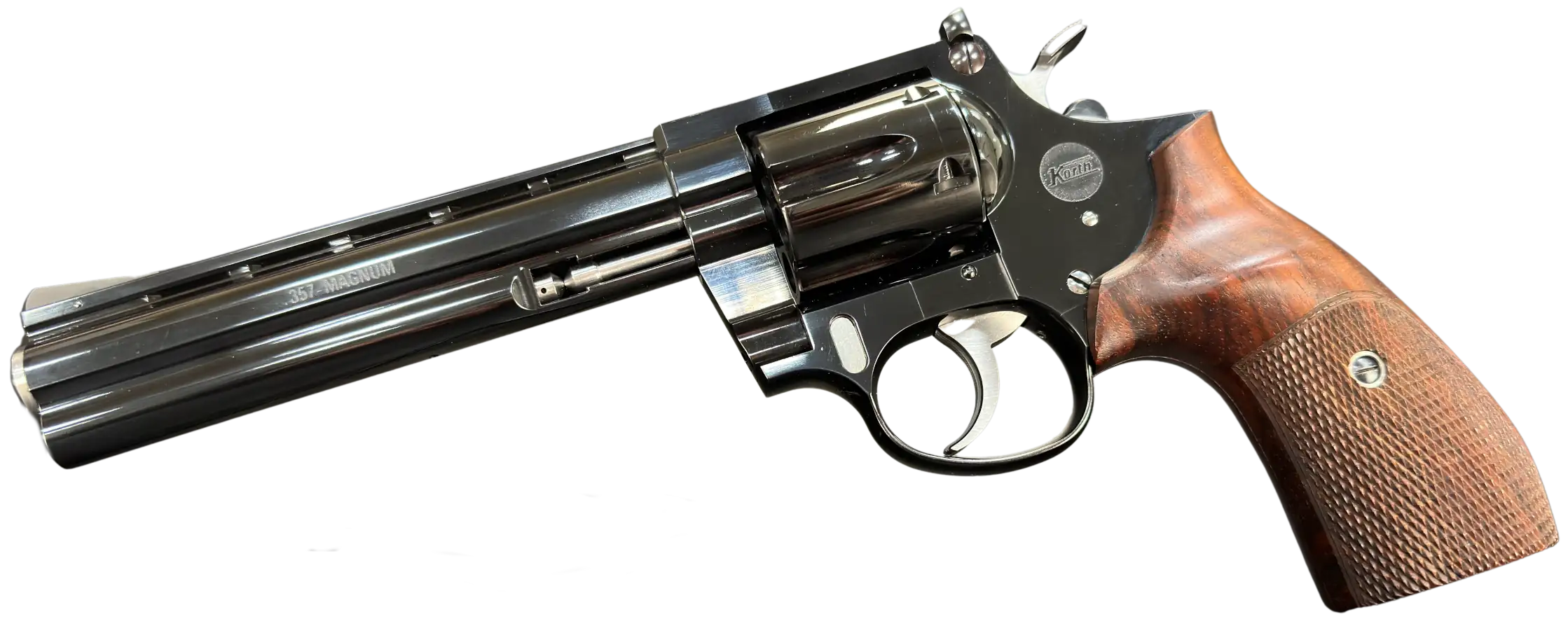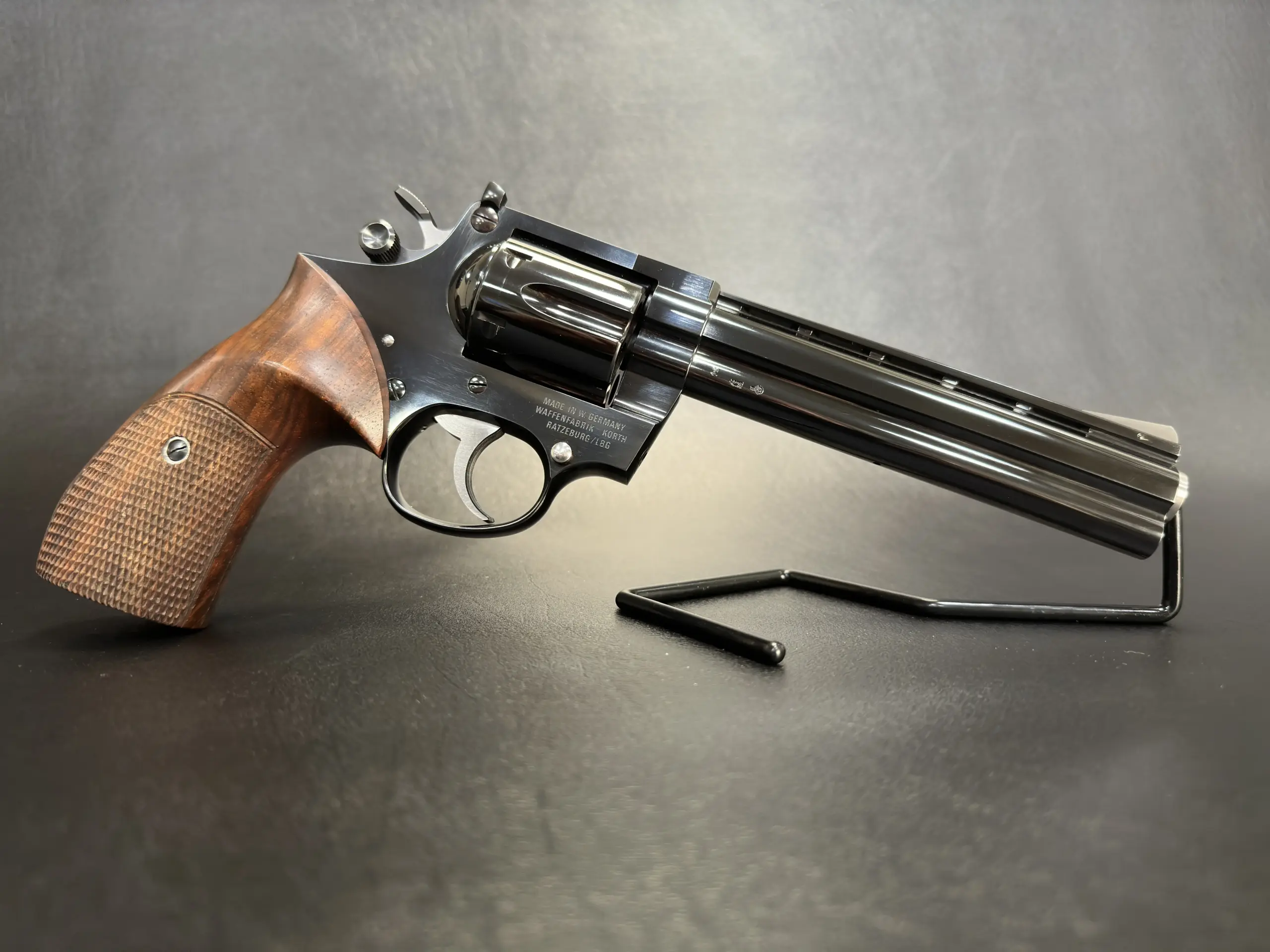 The Ratzeburg Korth Combat 6” in .357 Magnum captures the distinctive fit, finish, and mechanical refinement associated with Willi Korth’s original vision. Built with a 6-inch barrel, this Combat model has a commanding profile and the balanced handling that made these revolvers respected both on the range and in collections.