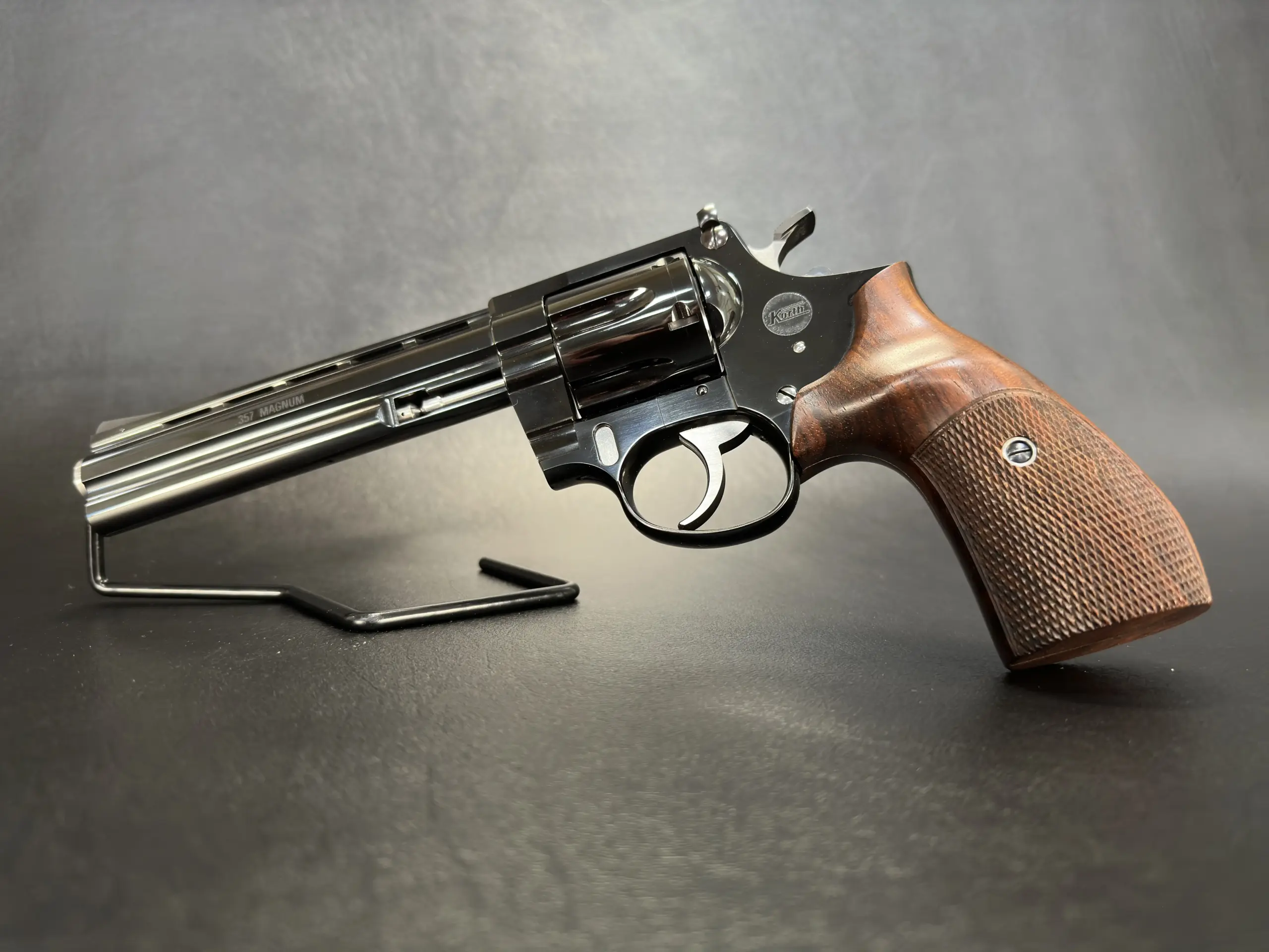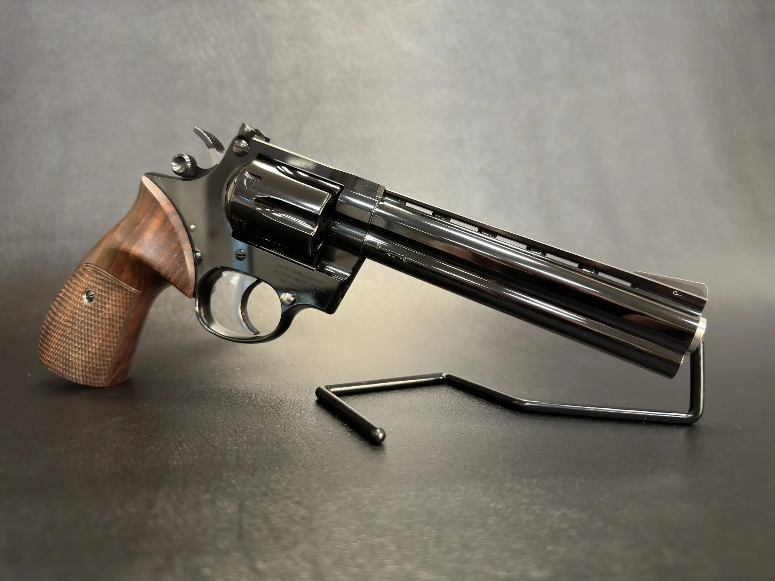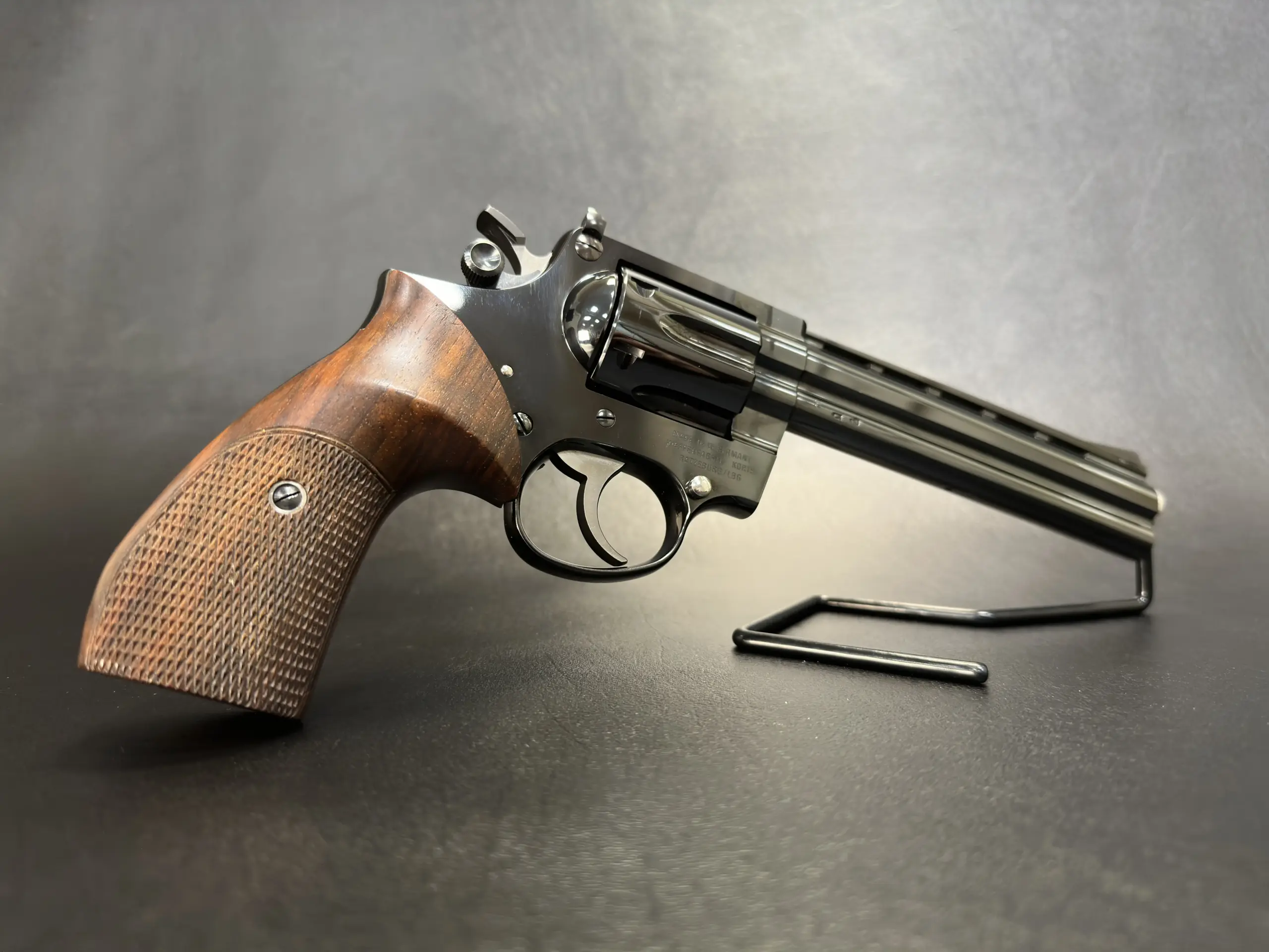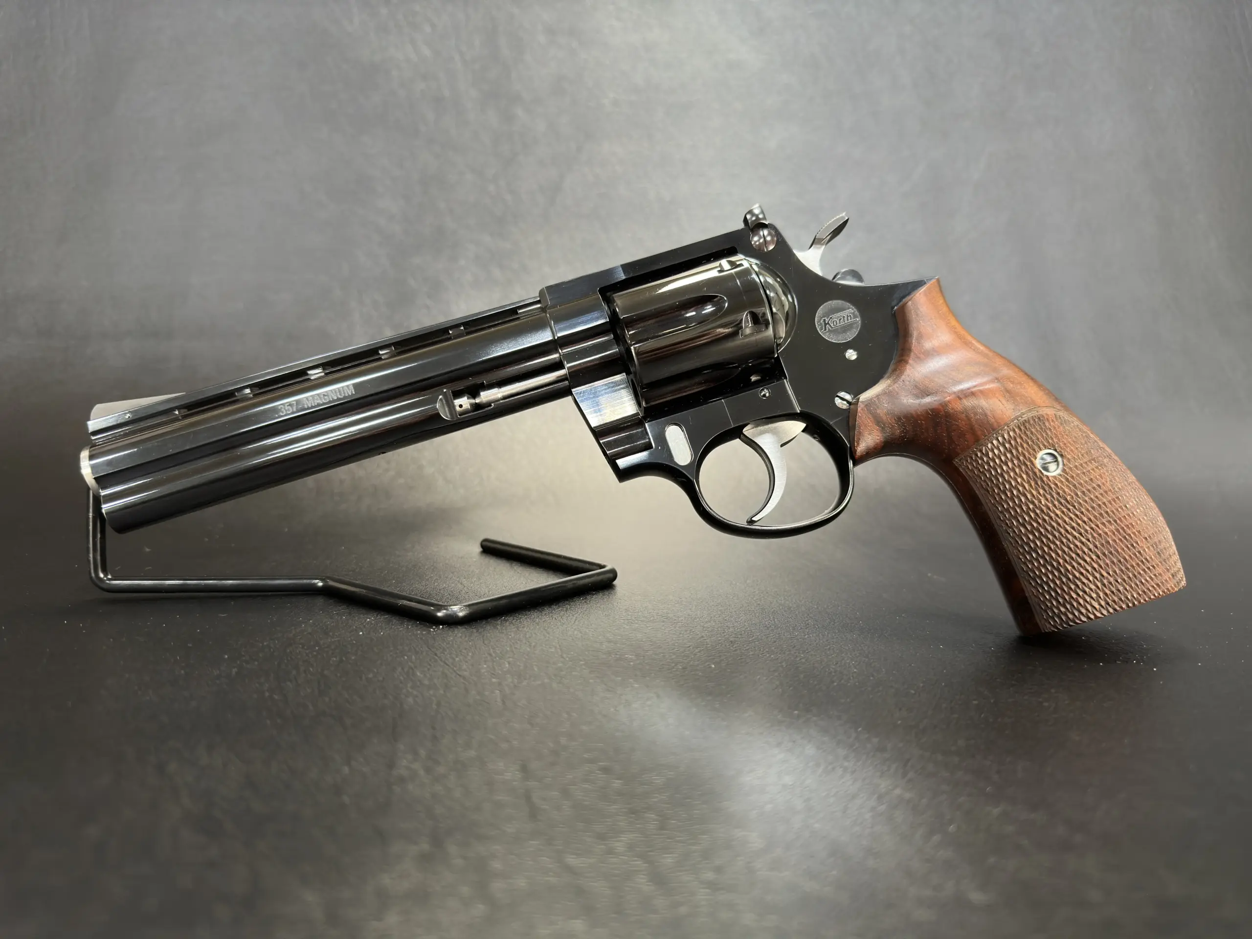 The Ratzeburg Korth Combat 6” in .357 Magnum captures the distinctive fit, finish, and mechanical refinement associated with Willi Korth’s original vision. Built with a 6-inch barrel, this Combat model has a commanding profile and the balanced handling that made these revolvers respected both on the range and in collections.