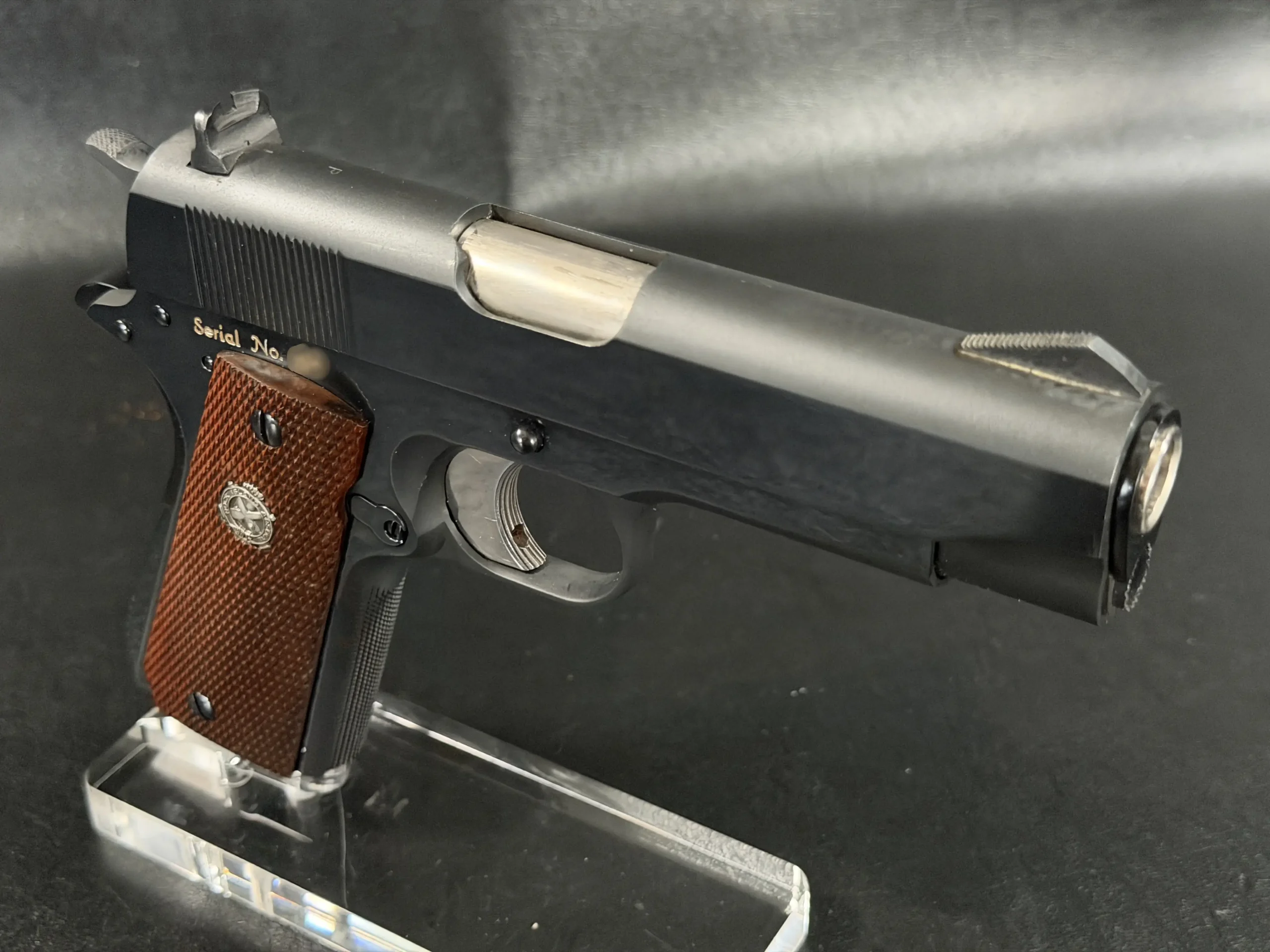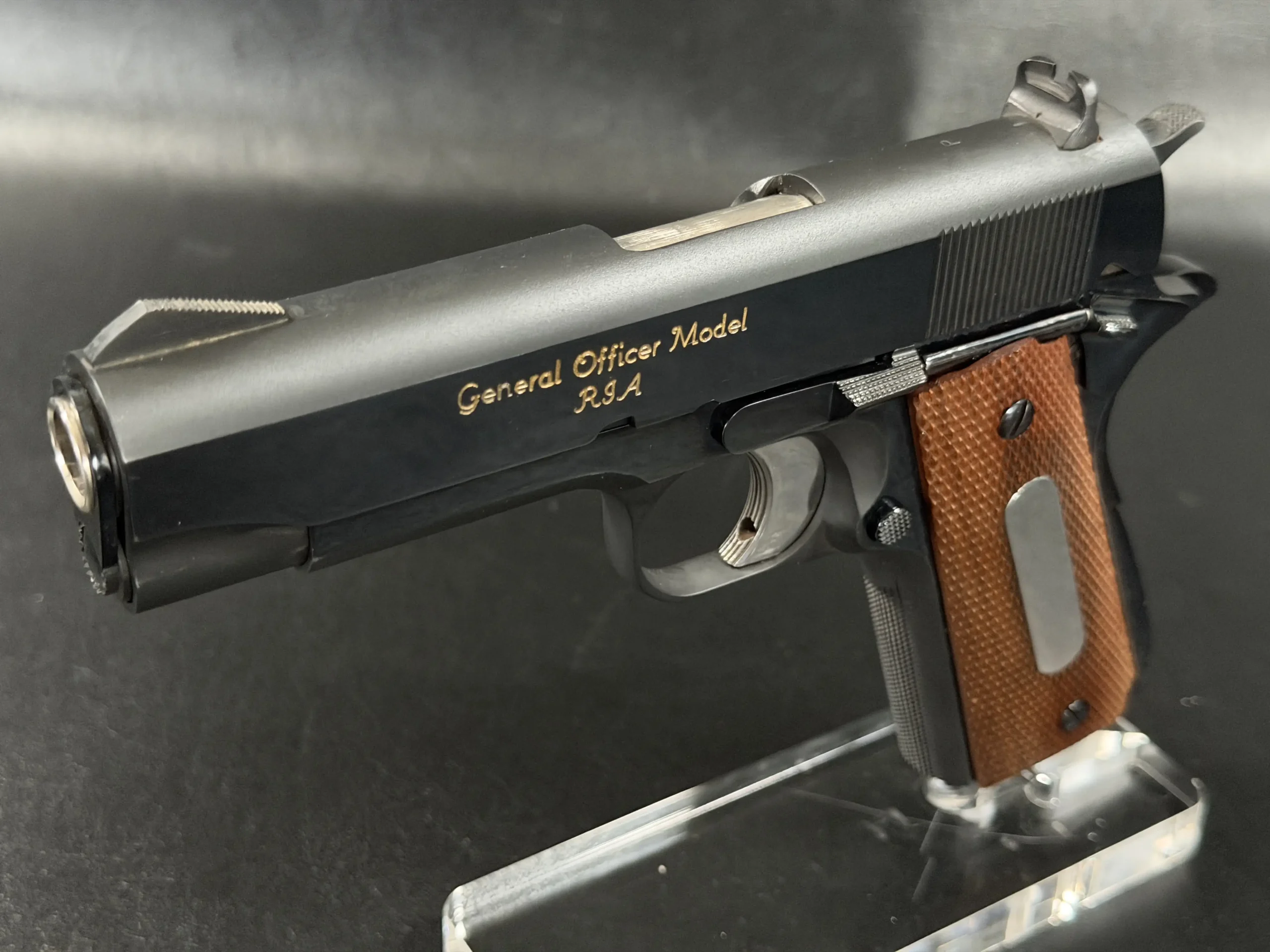 More than a standard production pistol, this prototype stands within the development lineage of the M15 General Officer Model. It offers a direct look at the refinement of markings, configuration, and design choices as the program moved toward limited-issue production.