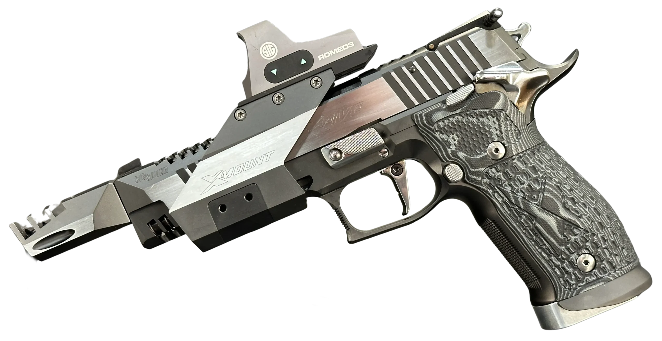 Produced through the SIG Sauer Mastershop, the P226 X-Five Open Skeleton Black & White SAO stands out as a refined example of the X-Five line, blending purposeful engineering with striking visual presentation.