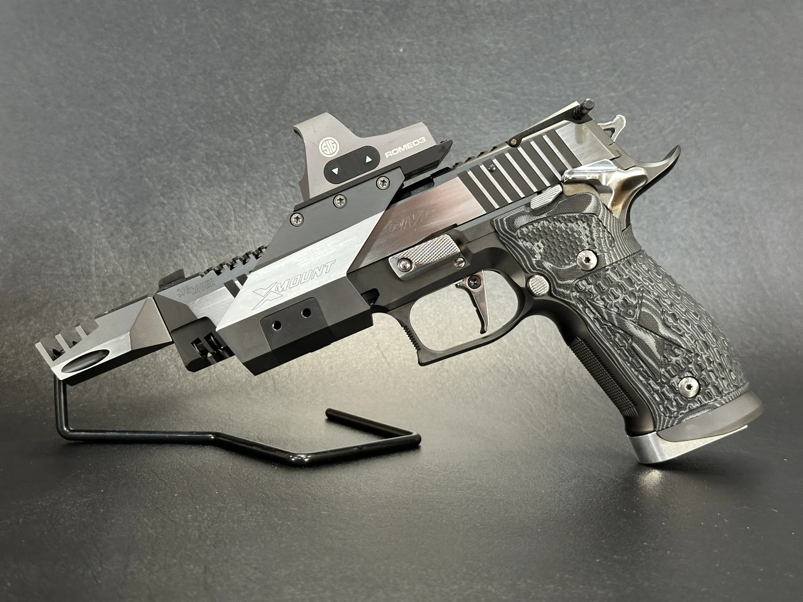 An adjustable single-action-only trigger is central to the X-Five platform, paired here with details oriented toward fast, controlled shooting. The integrated magwell, extended-capacity magazines, enhanced sights, and extended barrel length round out a configuration designed with precision and speed in mind.