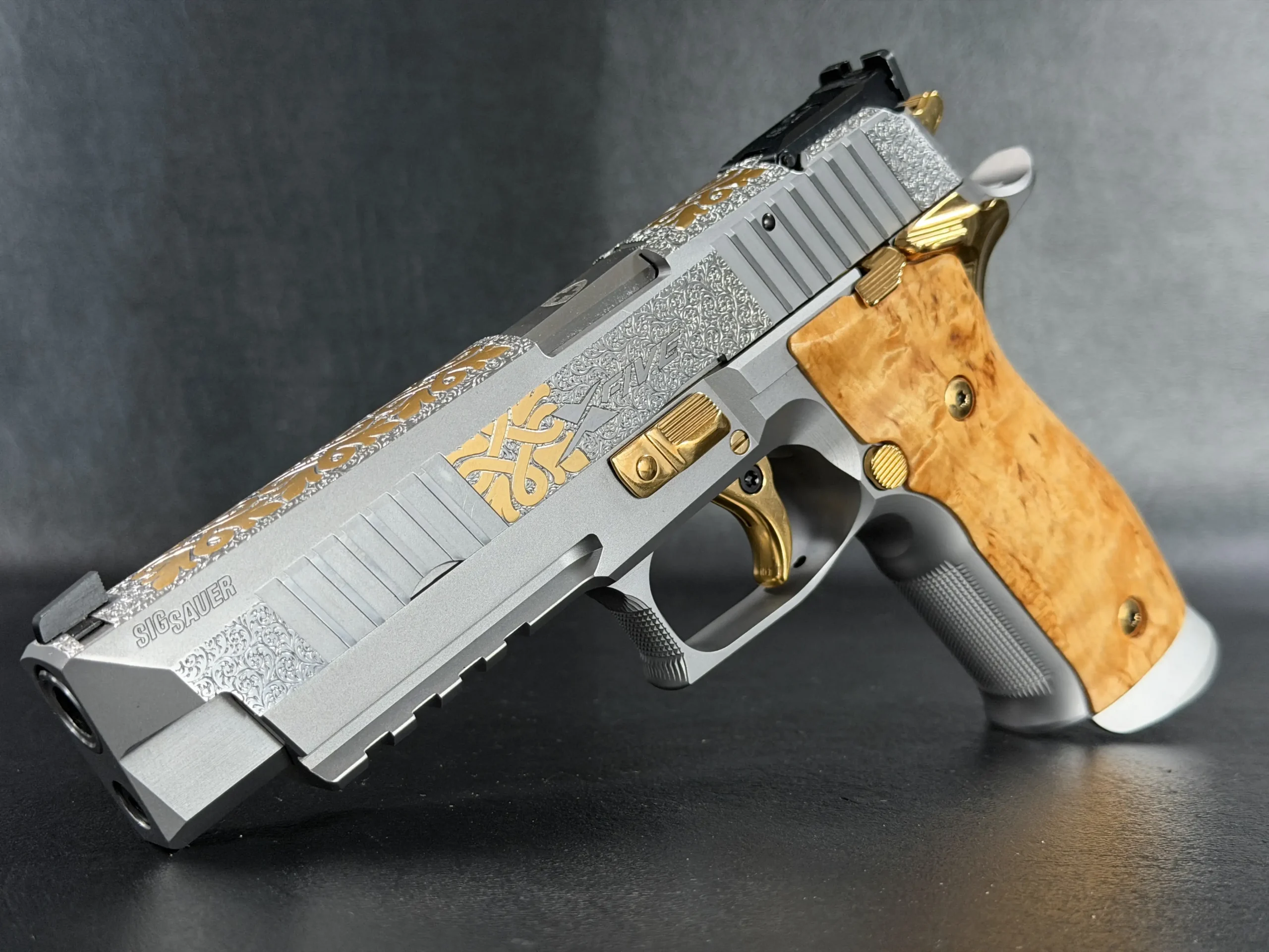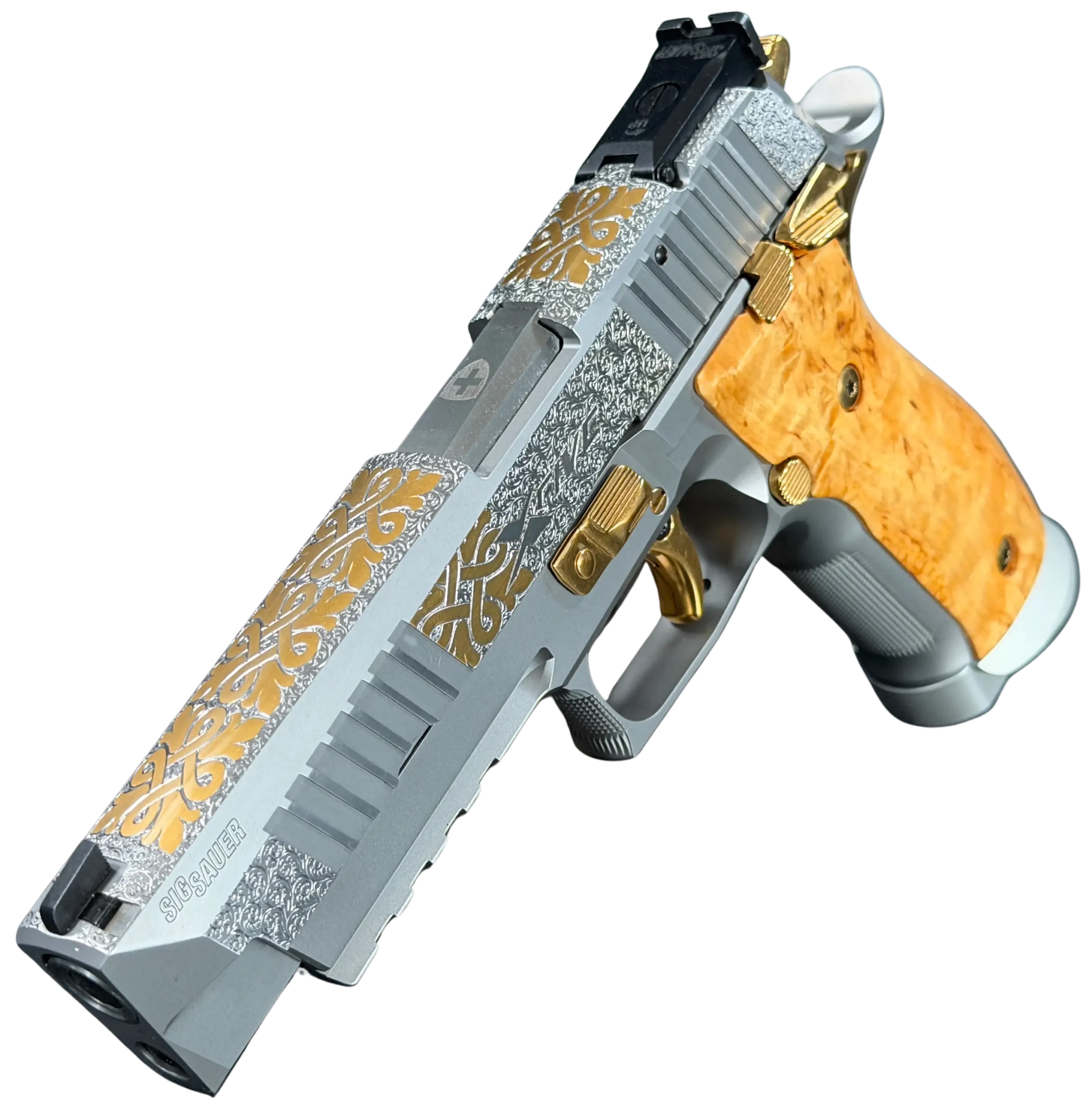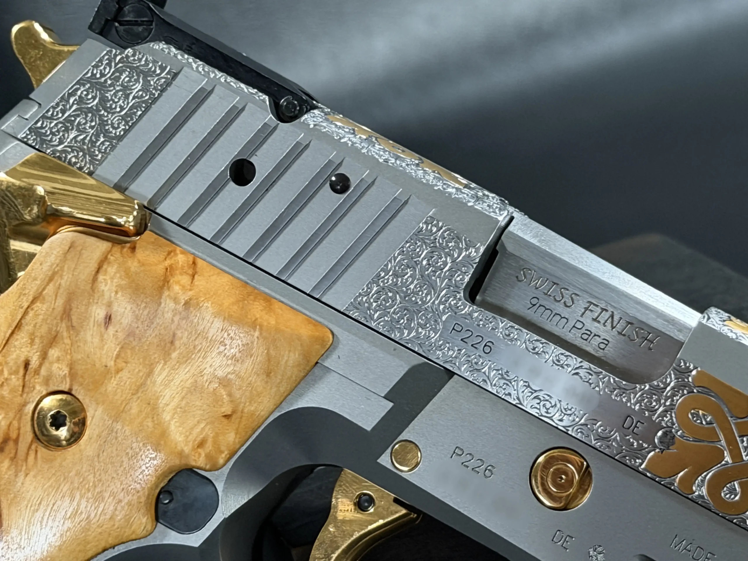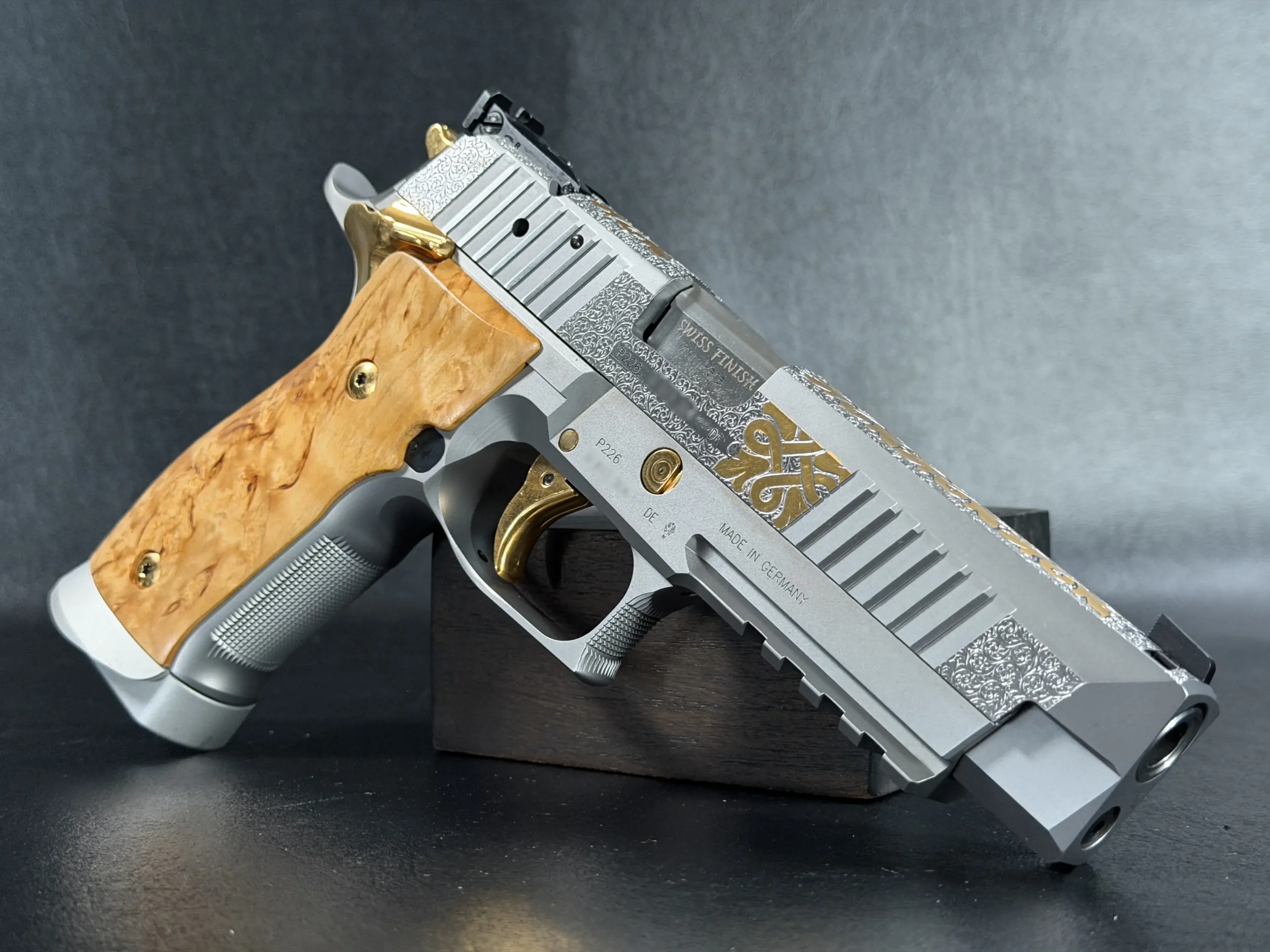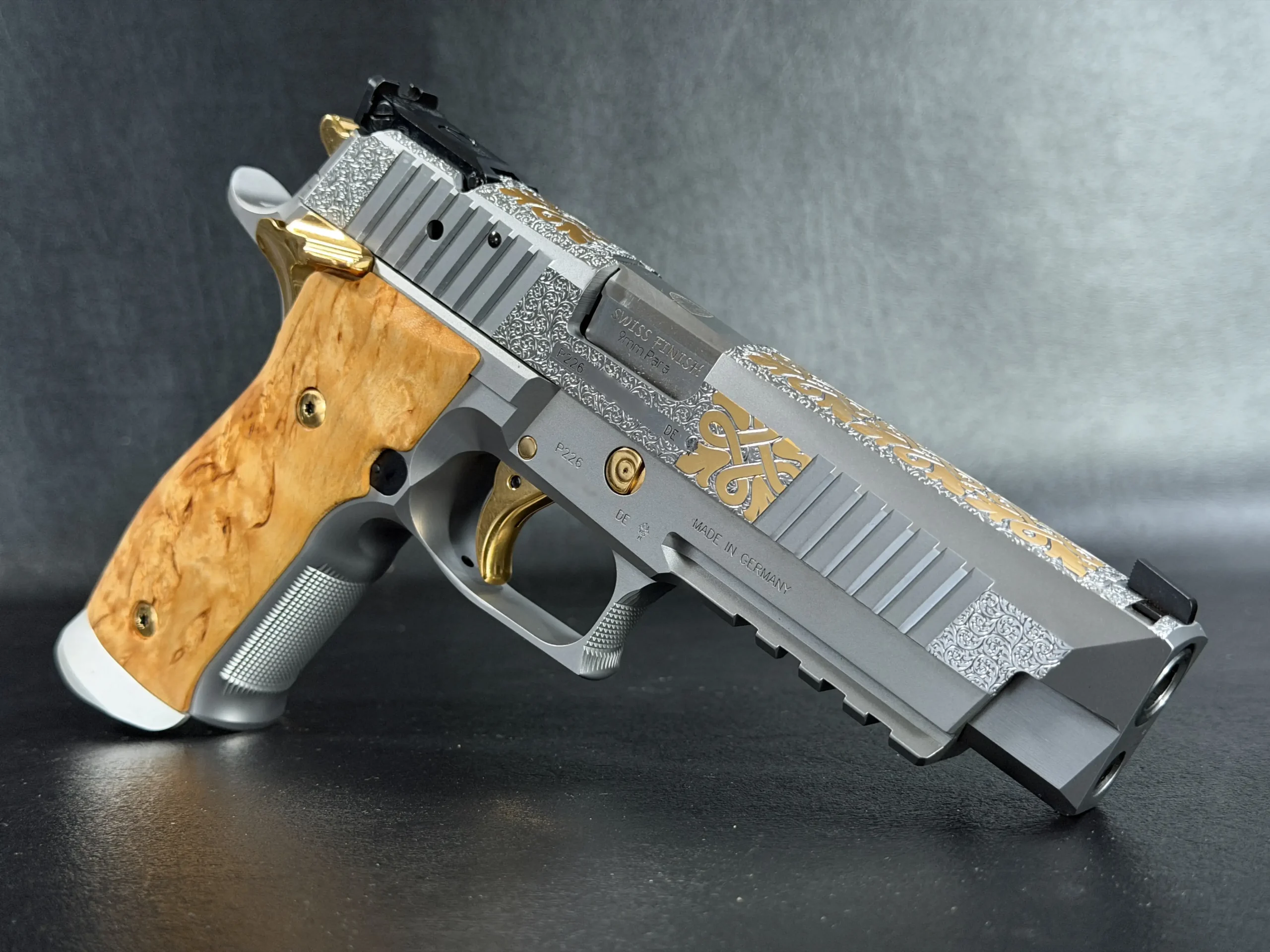 The SIG Sauer P226 X-Five Scandic Engraved, designed by Mueller Murgenthal, brings together the proven X-Series platform with finely executed decorative detail. Chambered in 9mm, this all-steel pistol features the extended slide and barrel configuration associated with the P226 X-Five.