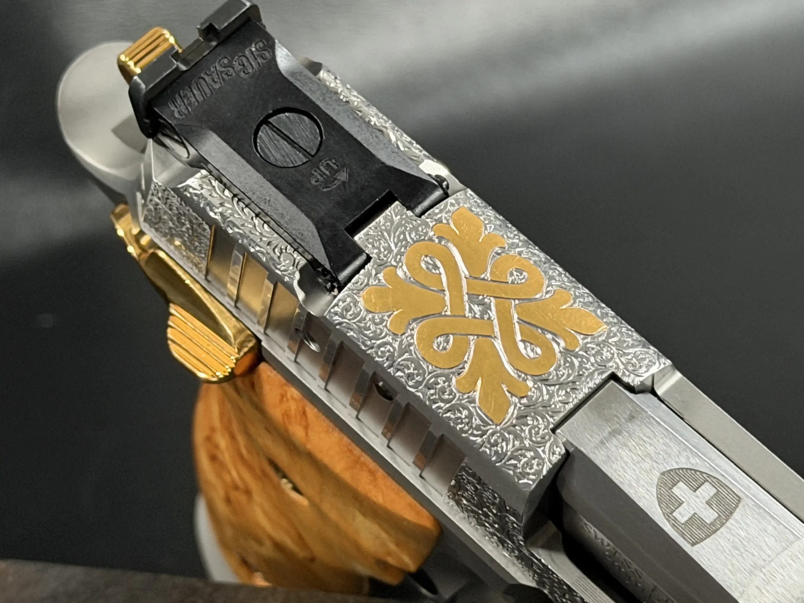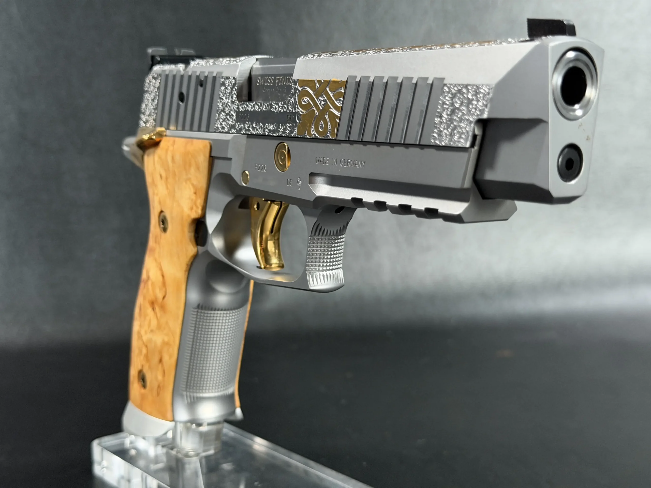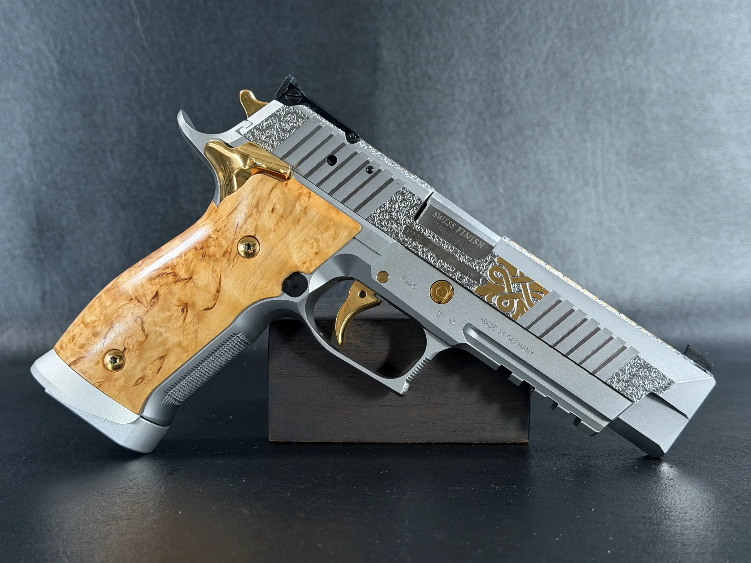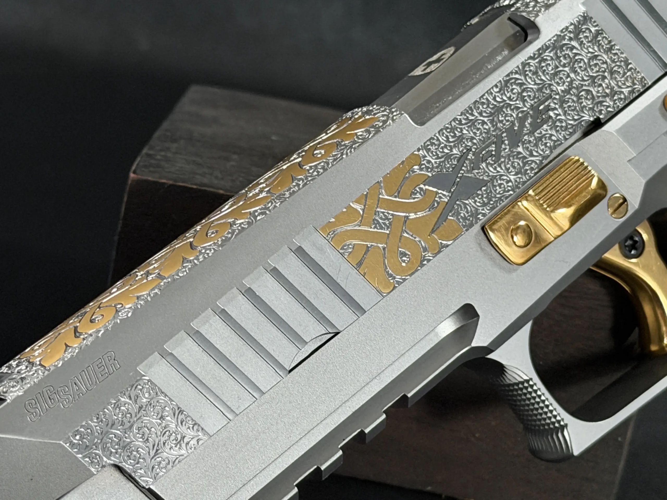 The SIG Sauer P226 X-Five Scandic Engraved, designed by Mueller Murgenthal, brings together the proven X-Series platform with finely executed decorative detail. Chambered in 9mm, this all-steel pistol features the extended slide and barrel configuration associated with the P226 X-Five.