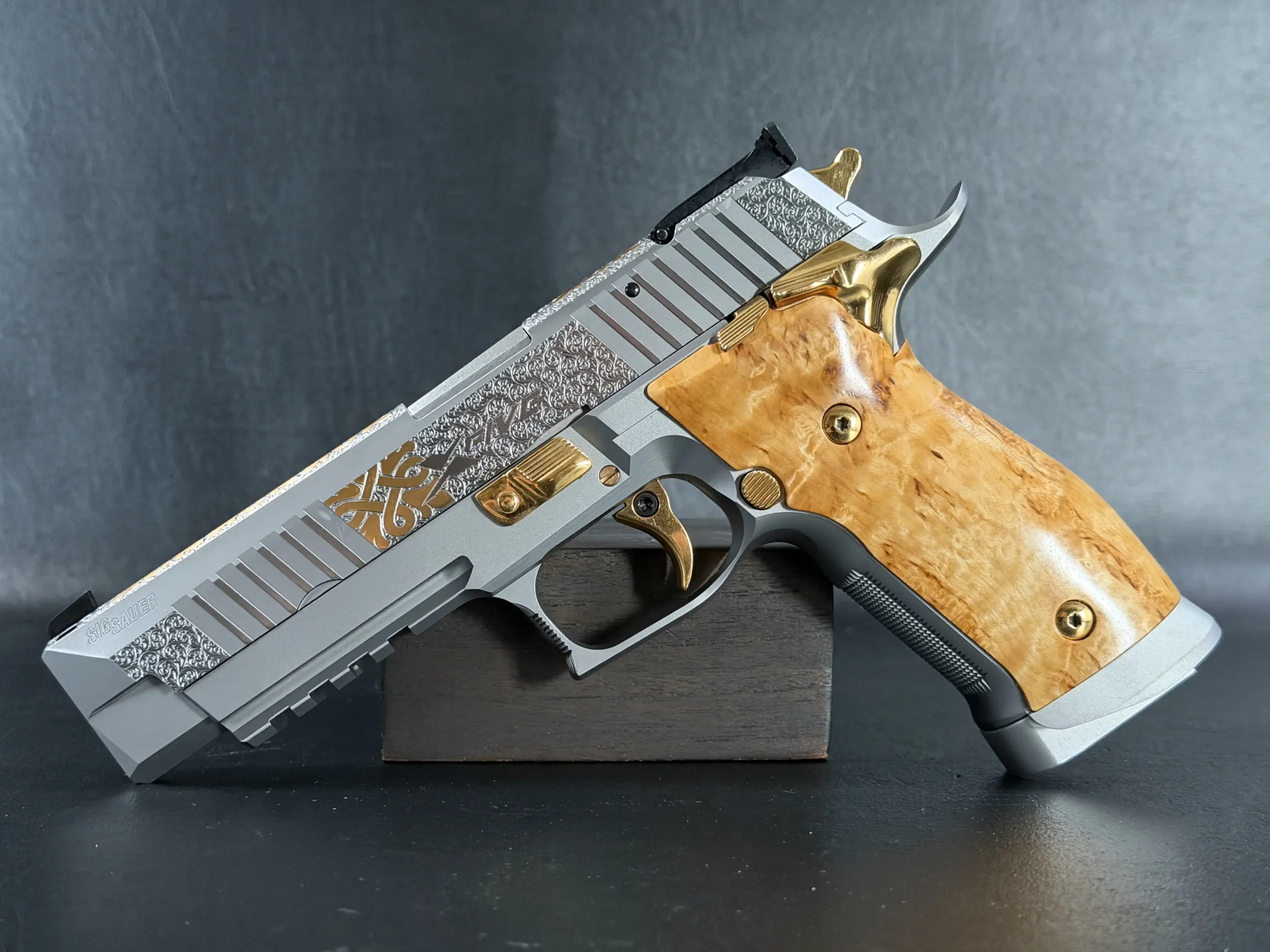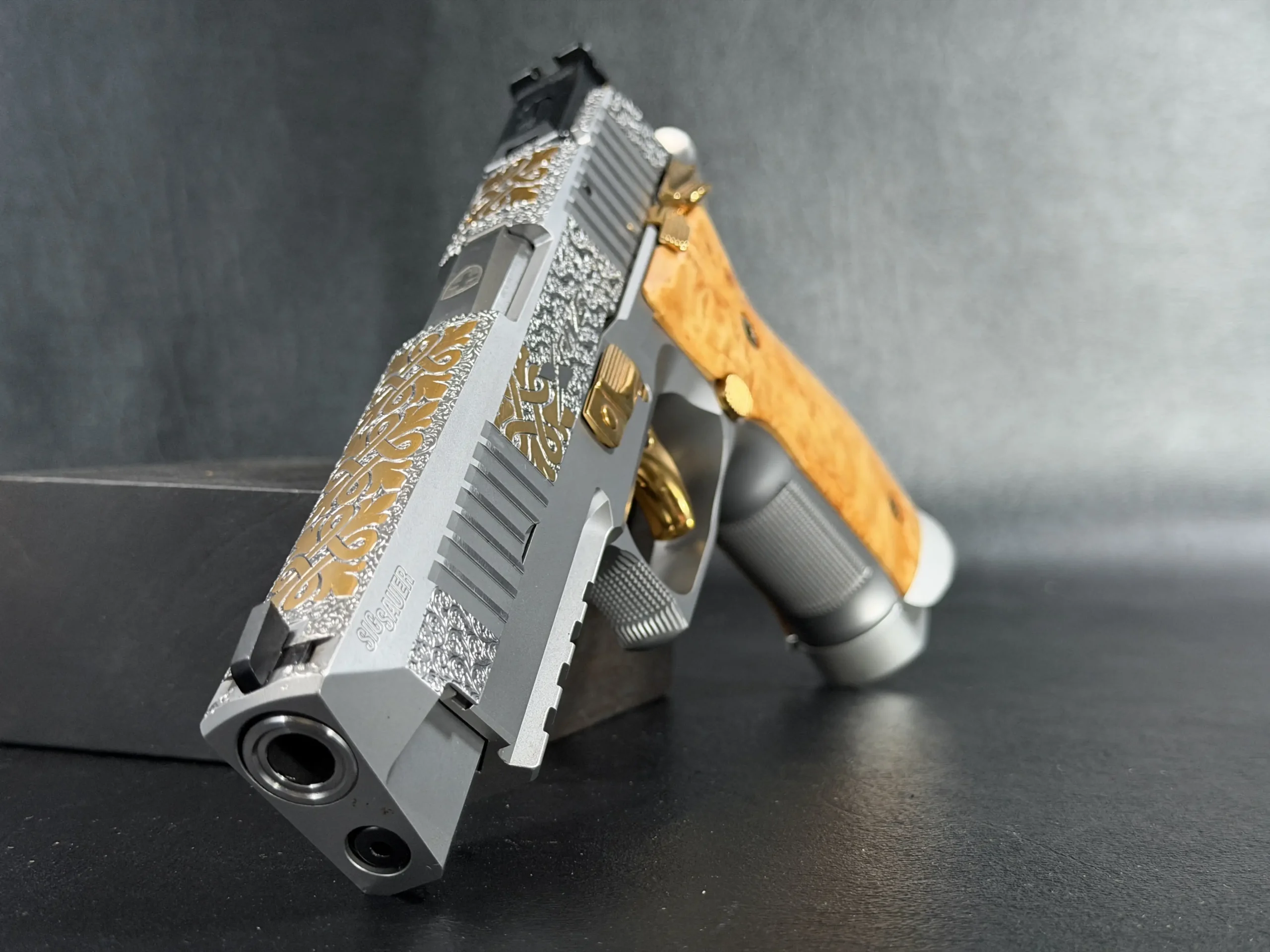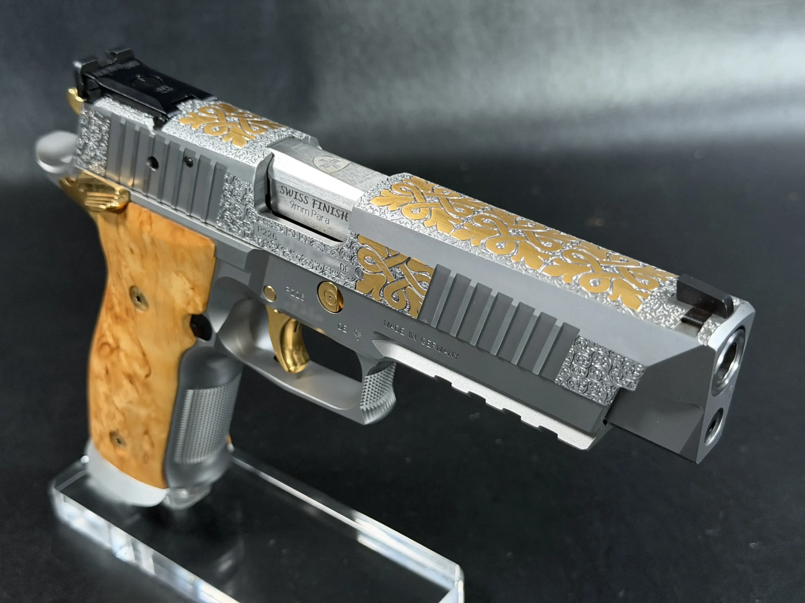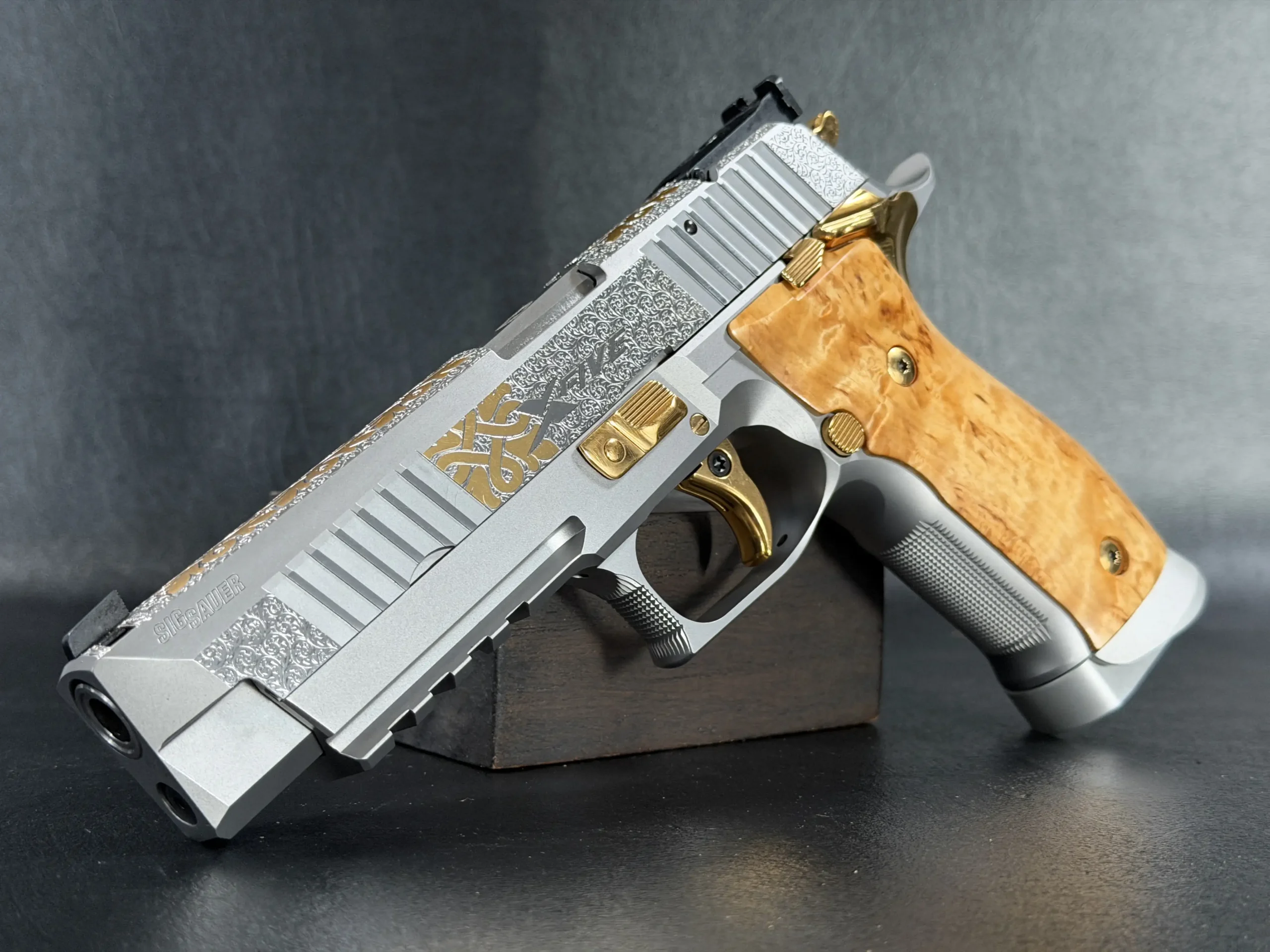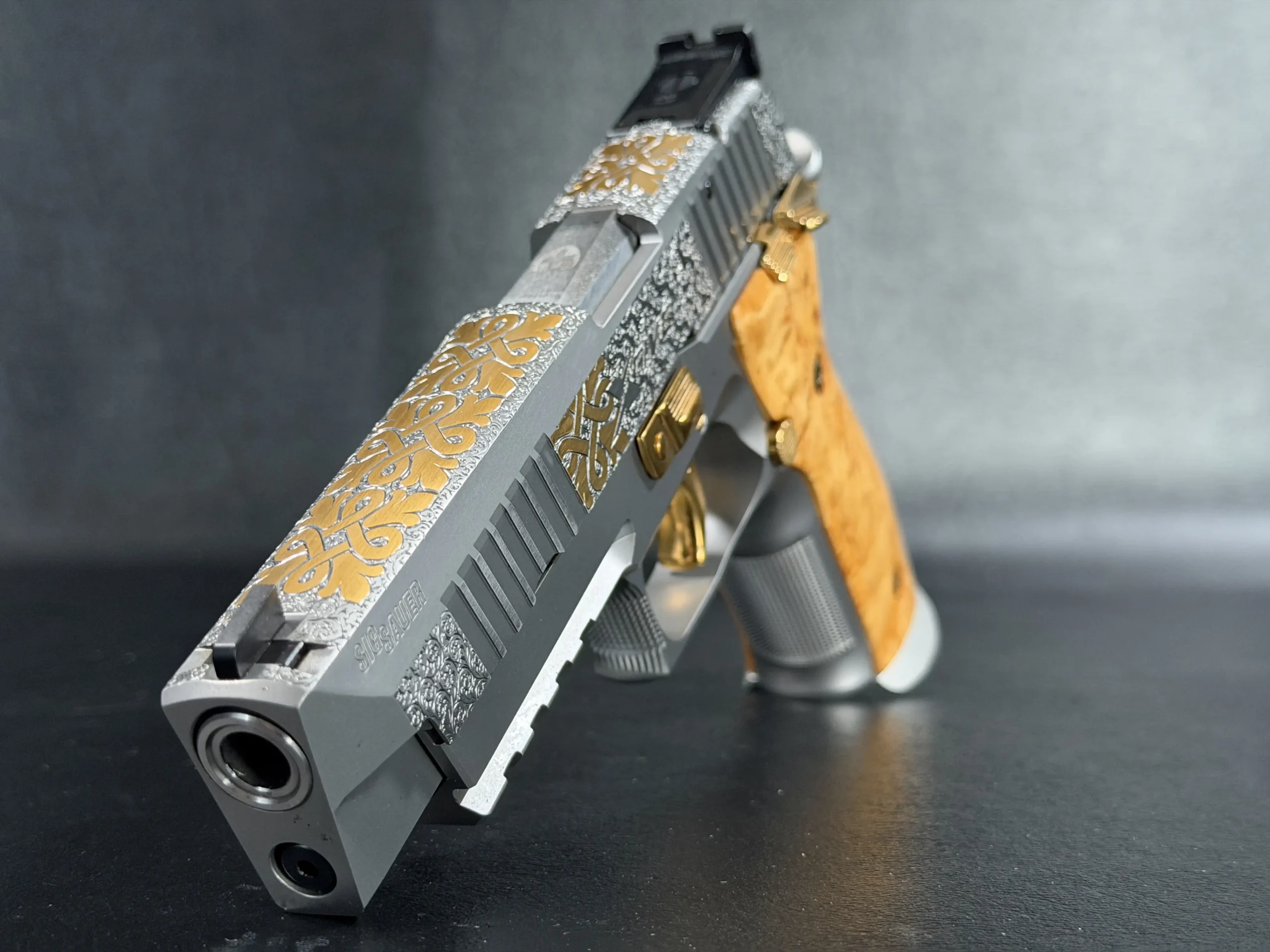 The SIG Sauer P226 X-Five Scandic Engraved, designed by Mueller Murgenthal, brings together the proven X-Series platform with finely executed decorative detail. Chambered in 9mm, this all-steel pistol features the extended slide and barrel configuration associated with the P226 X-Five.