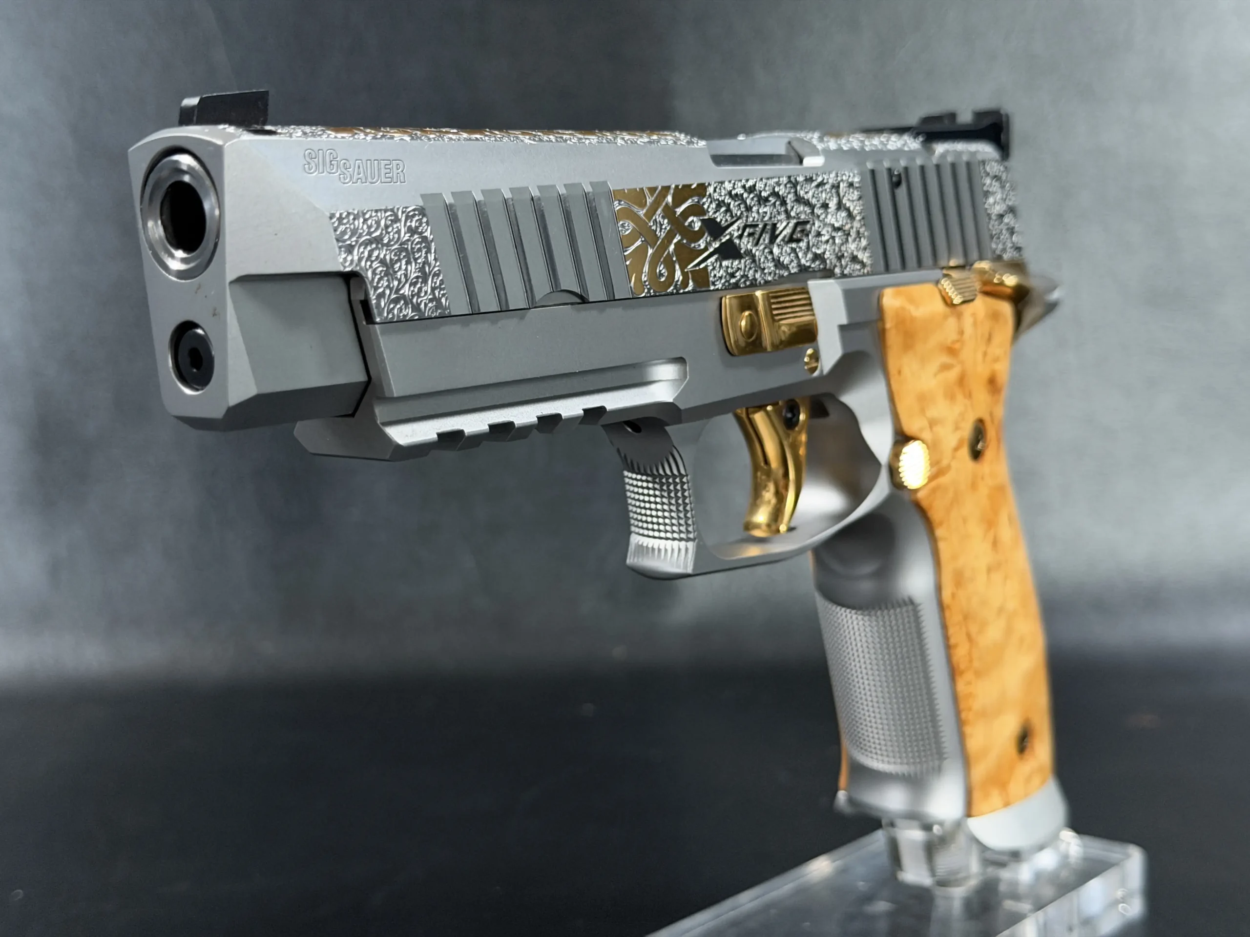 Built on the German-made SIG Sauer X-Series platform, this P226 X-Five reflects the balance of mechanical design and refined embellishment that defines the model. The result is a distinctive presentation piece with the unmistakable form and features of the X-Five.