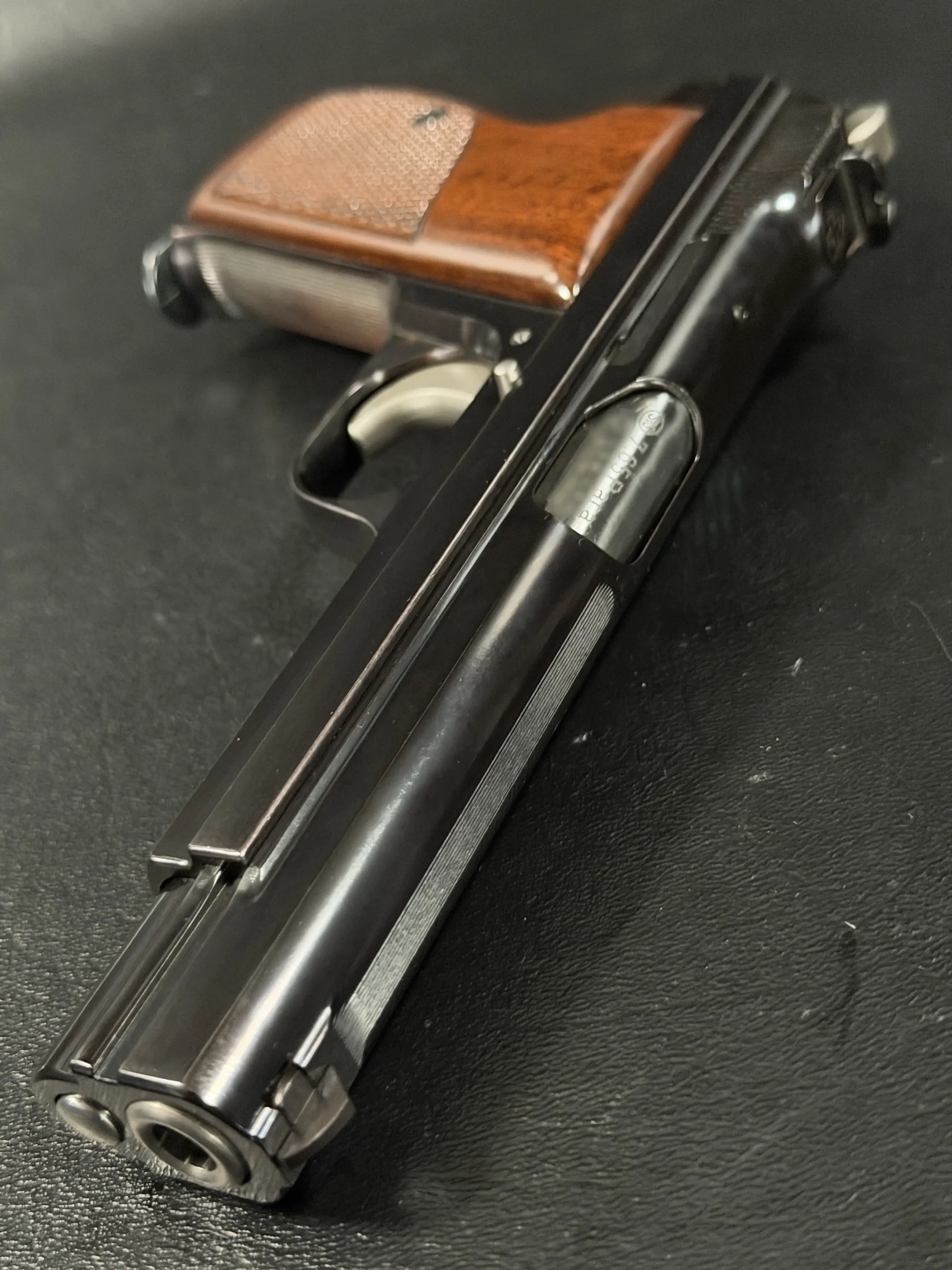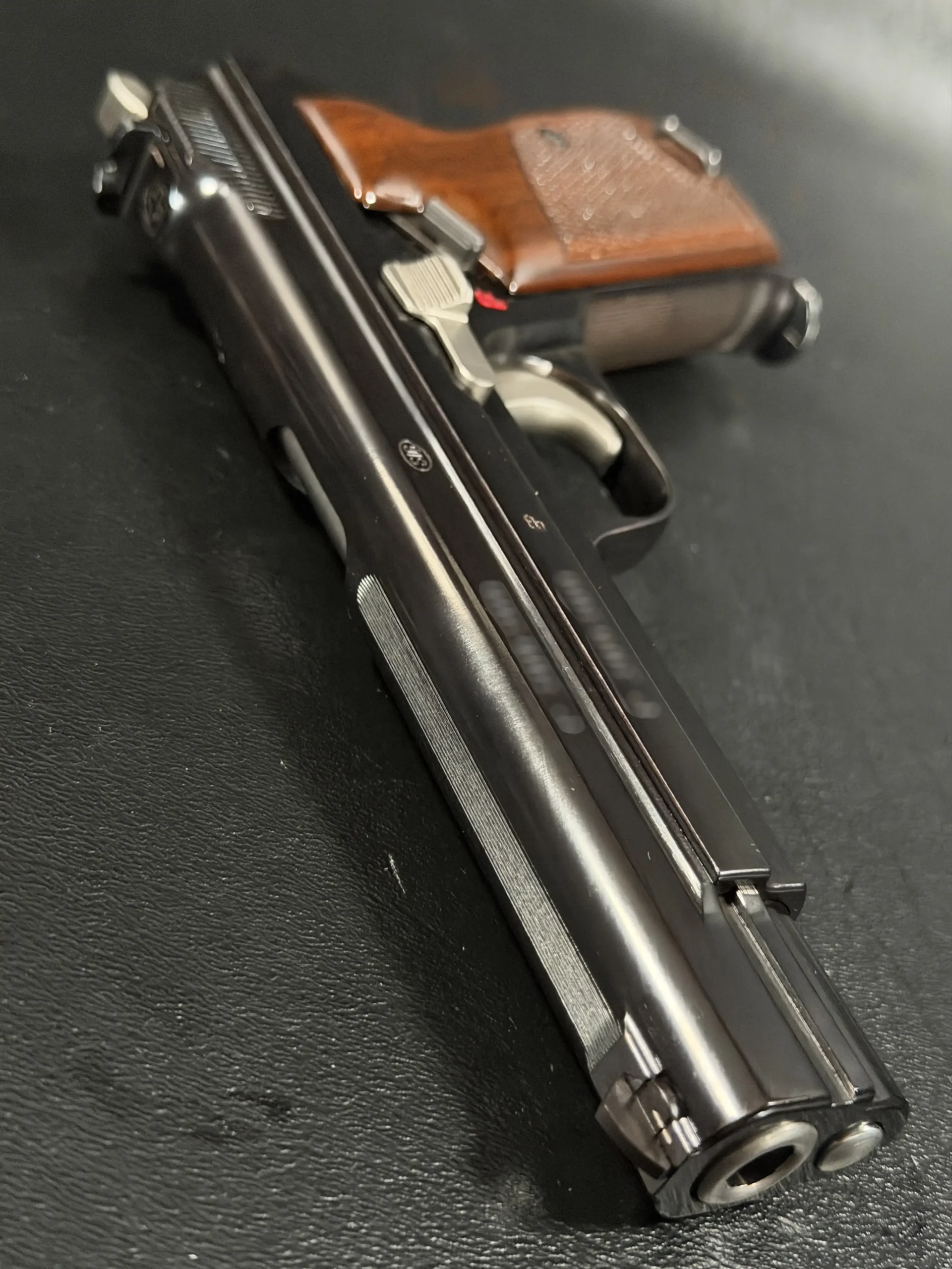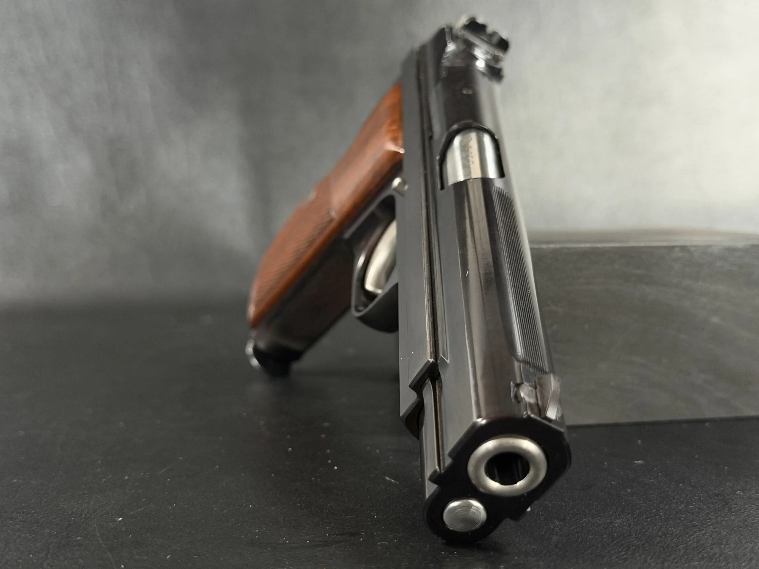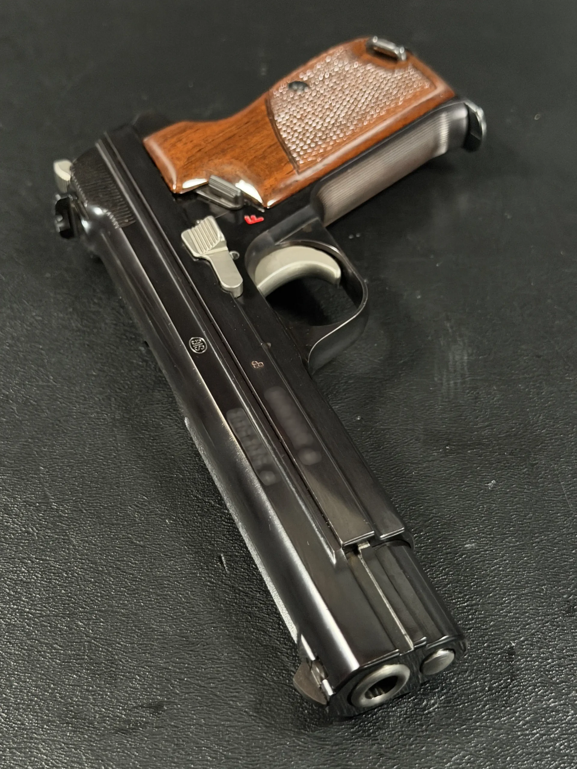 The SIG Sauer P210-6 is a 9mm pistol distinguished by its precision-focused design, refined craftsmanship, and classic European styling. Developed as a commercial variant of the well-known P210 platform, the -6 configuration is recognized by its extended slide and barrel profile, which provides a longer sight radius for improved target alignment.