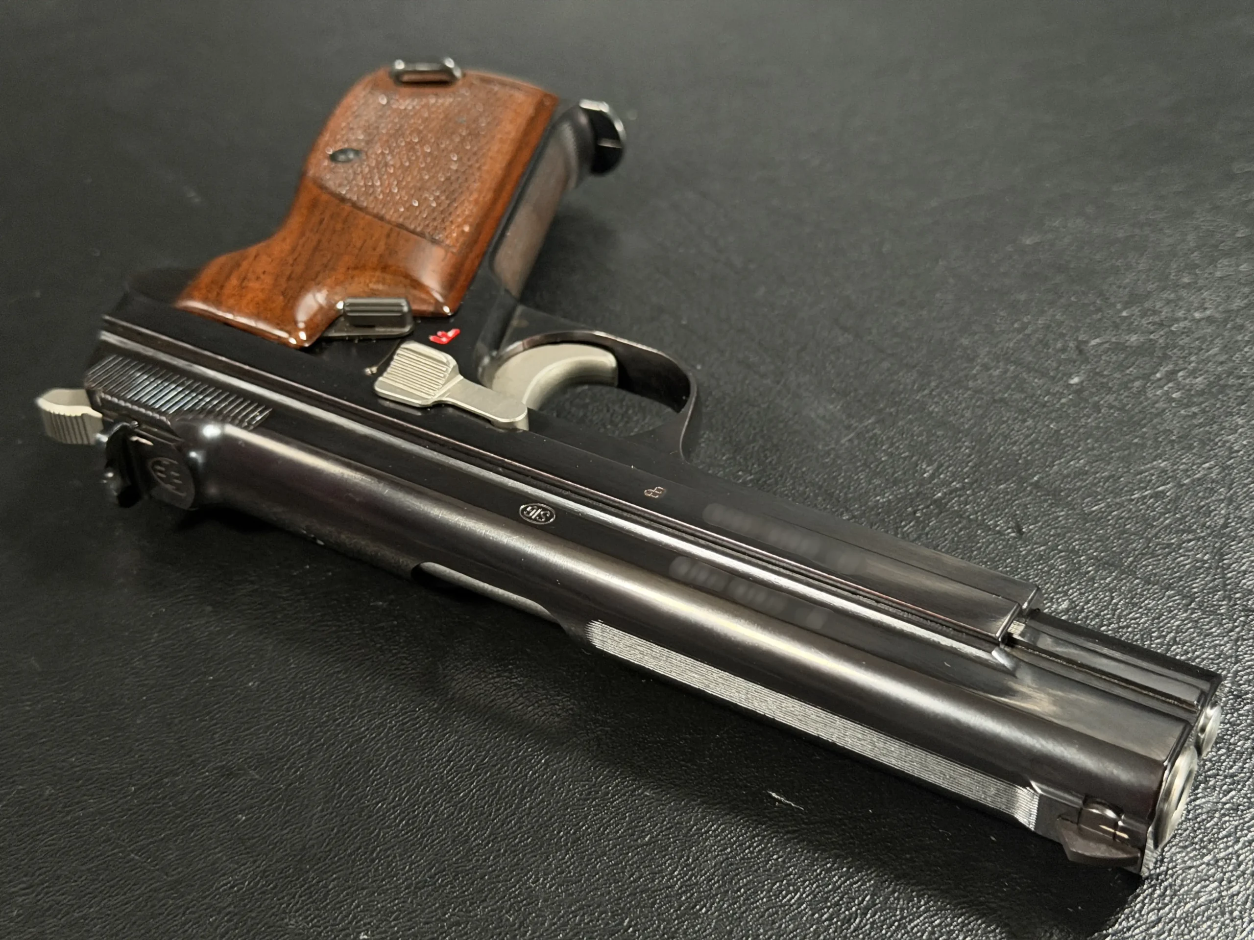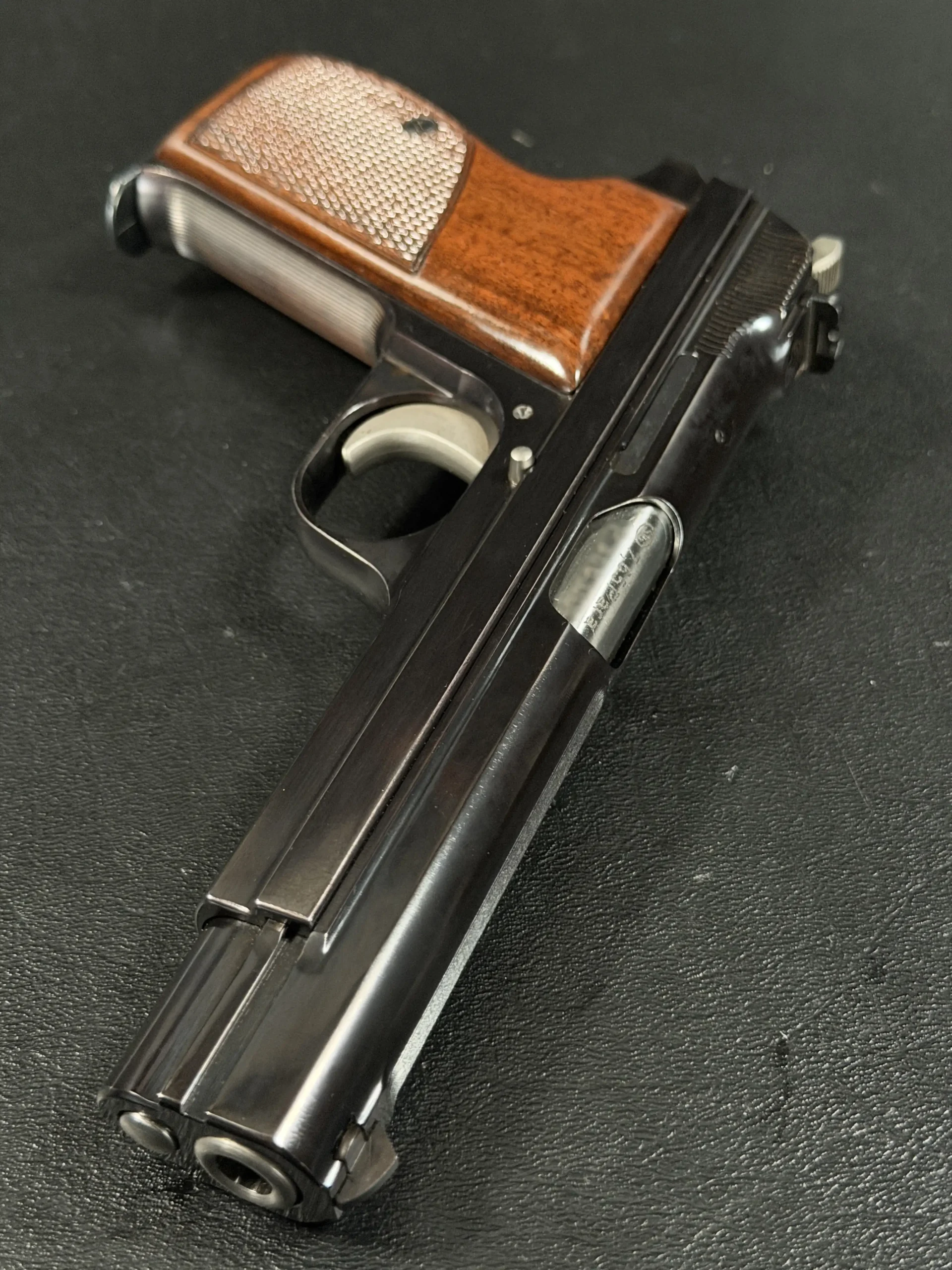 A defining feature of the P210 design is its internal slide rail arrangement, with the slide riding inside the frame rails rather than outside them. This design contributes to a notably tight lockup and is closely associated with the platform’s reputation for accuracy. Paired with a single-action trigger known for a clean, crisp break, the P210-6 offers a highly controlled and deliberate shooting experience.