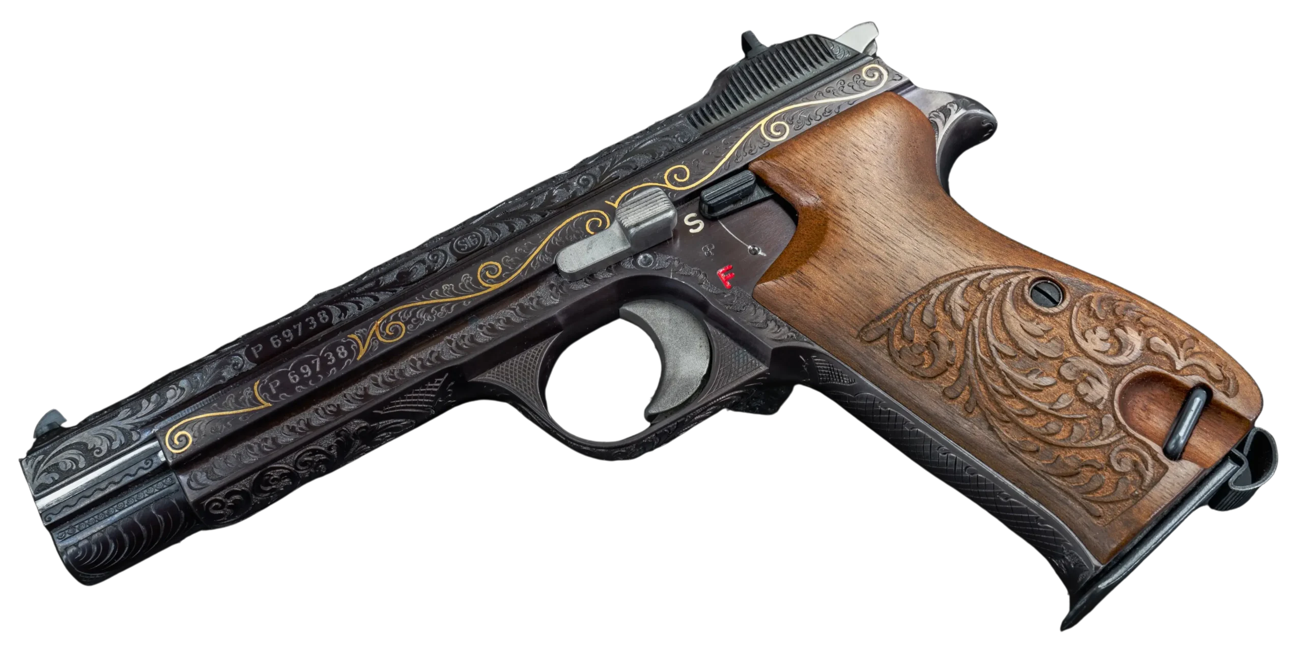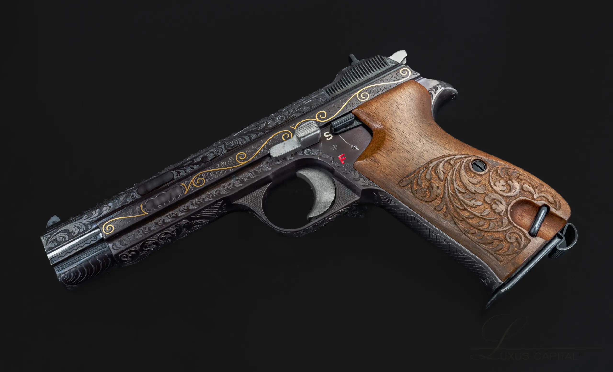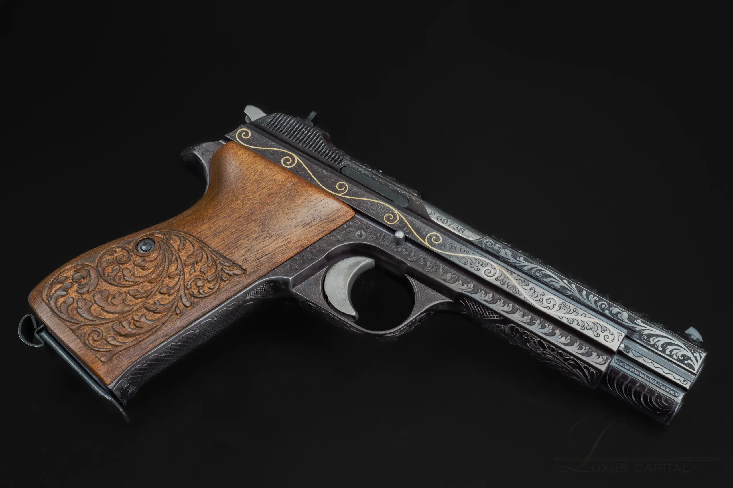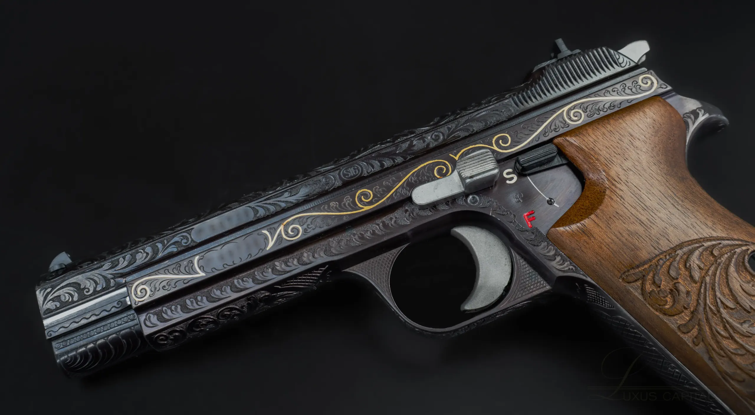 For collectors and enthusiasts drawn to classic European styling, the SIG Sauer P210 Luxus offers a distinctive combination of 9mm chambering, engraved steel surfaces, gold accents, and carved walnut grips.