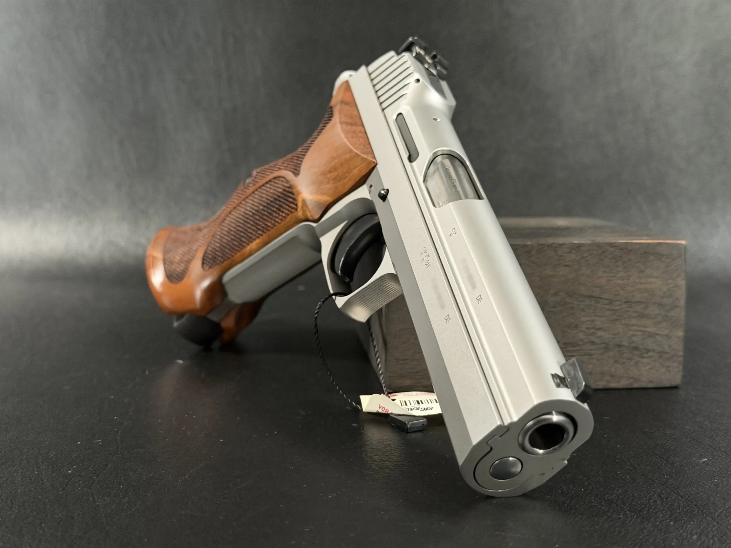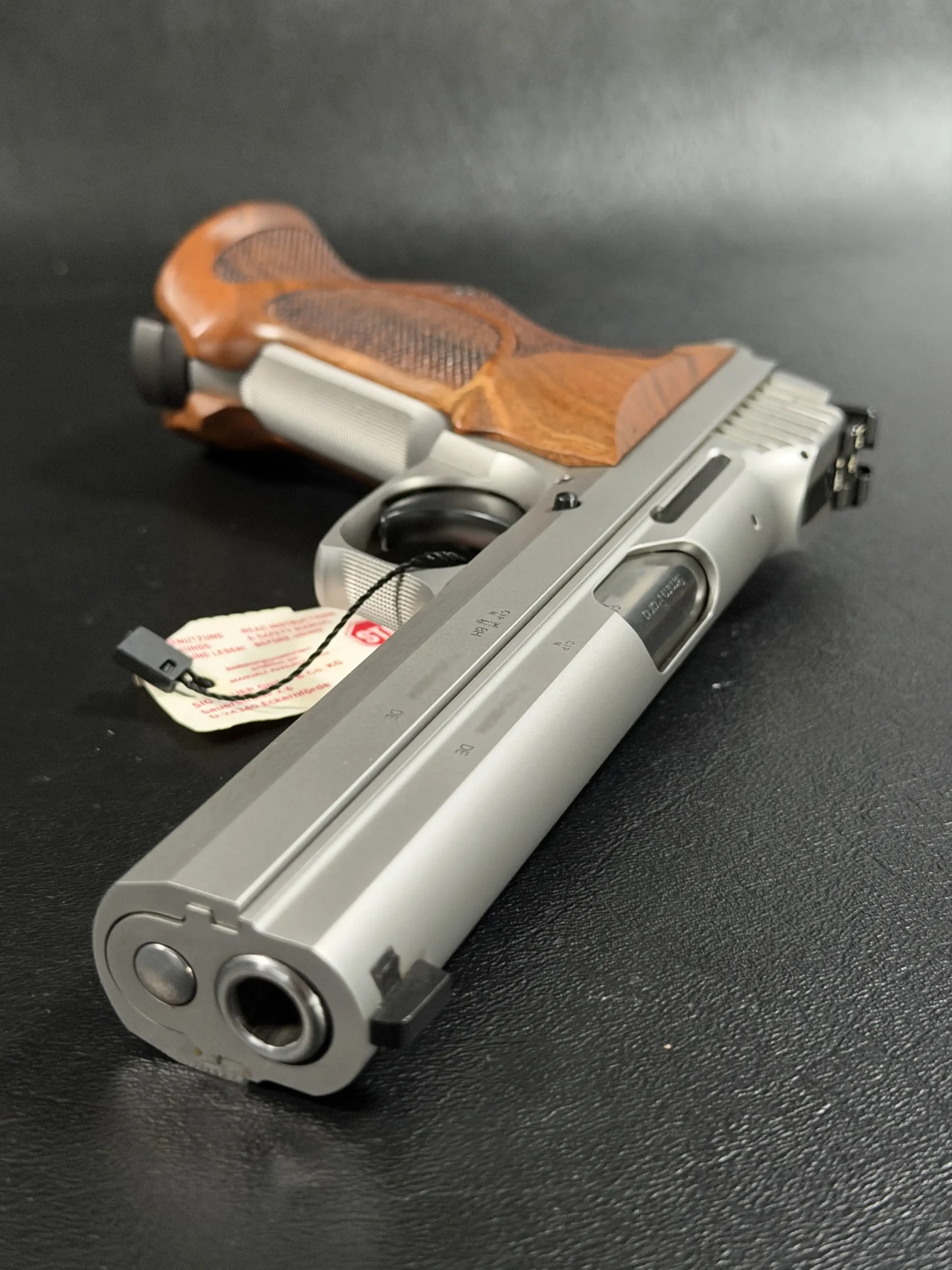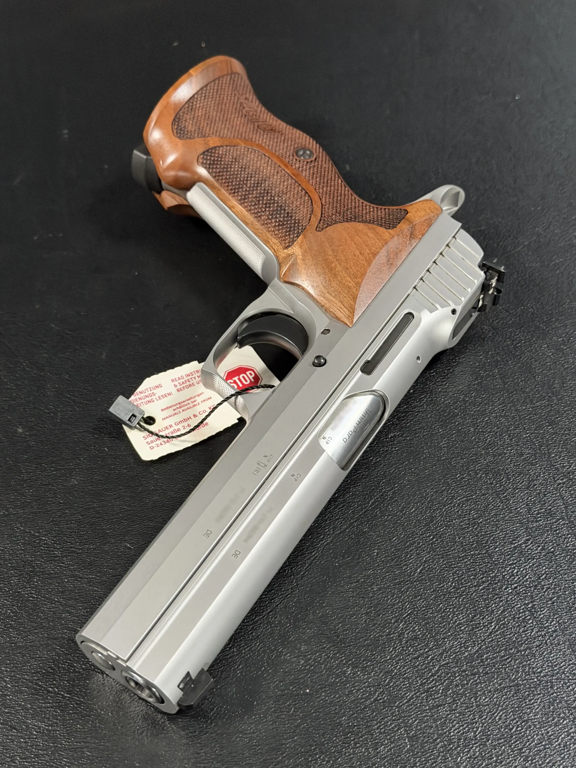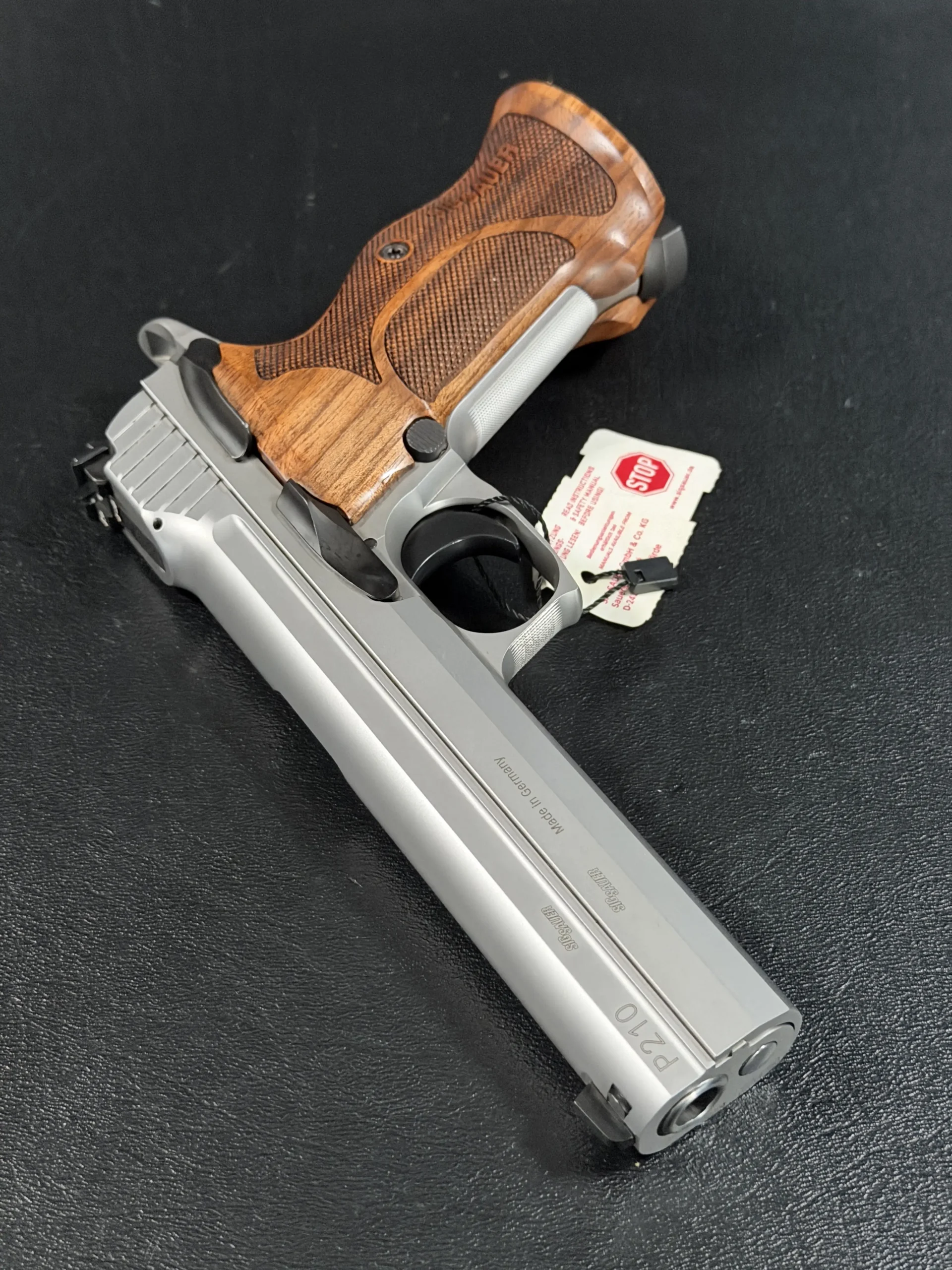 The SIG Sauer P210 Super Target 5" is a focused expression of the P210 platform, chambered in 9mm and presented with a satin stainless finish. Built around the design that established the model’s enduring reputation, it combines clean mechanical execution with a purposeful target-oriented layout.