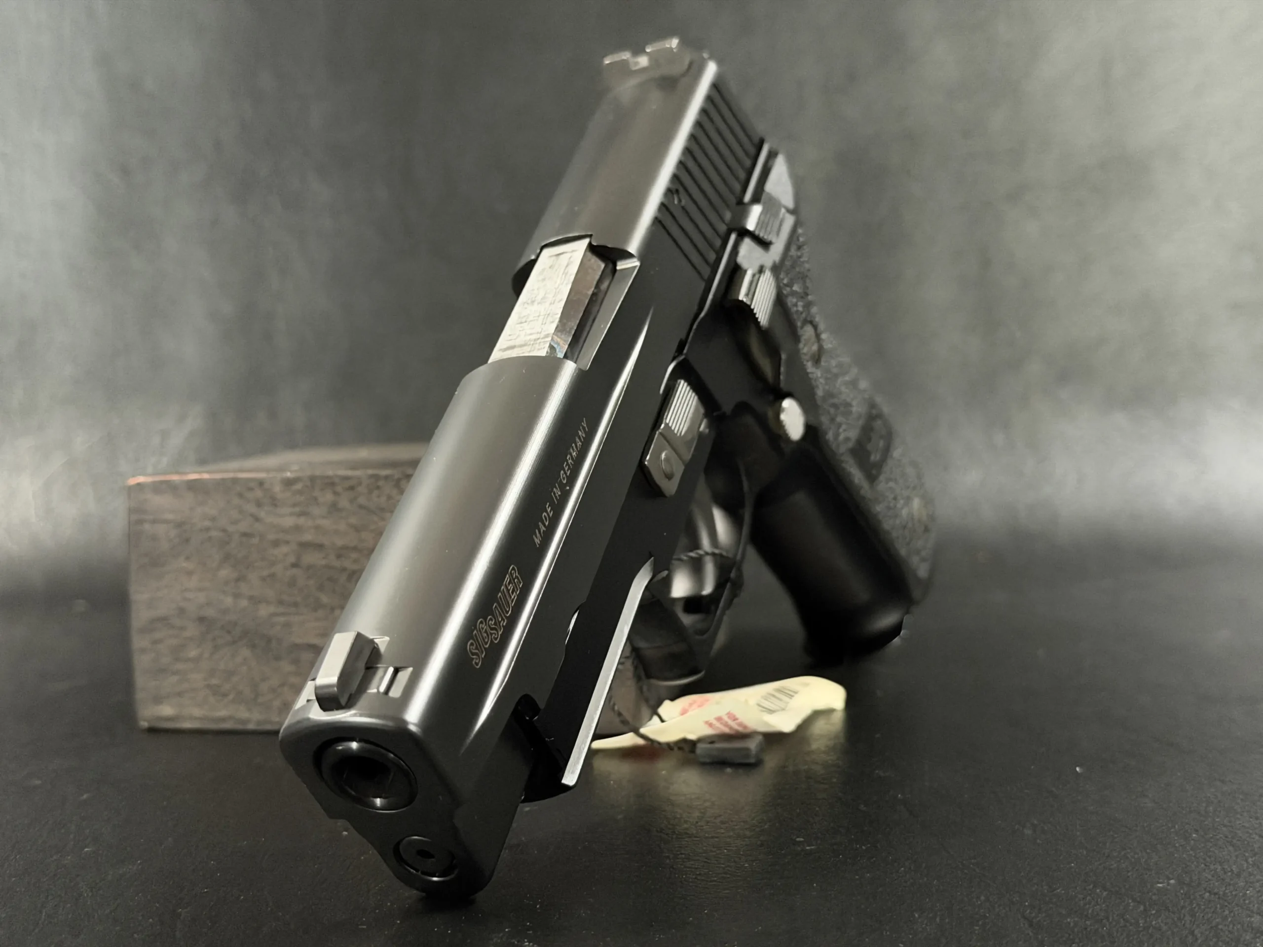 The “SO” configuration emphasizes simplicity and utility, with a straightforward layout that highlights the model’s practical character. Visually, the pistol presents the restrained industrial look often seen on German-made SIG Sauer pistols, with a subtle contrast between slide and frame, crisp markings, and well-executed machining.