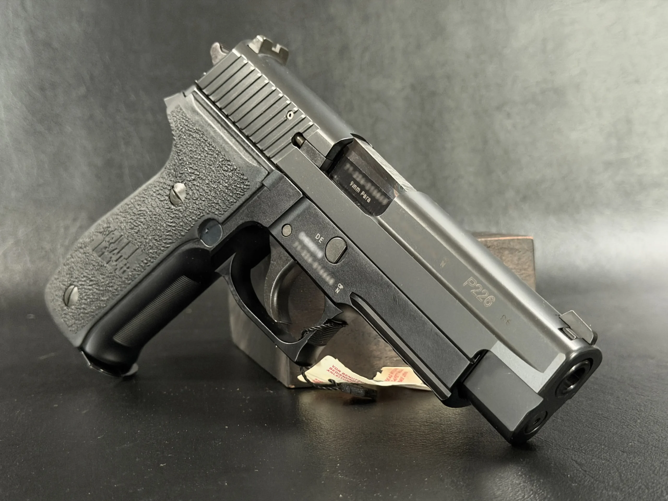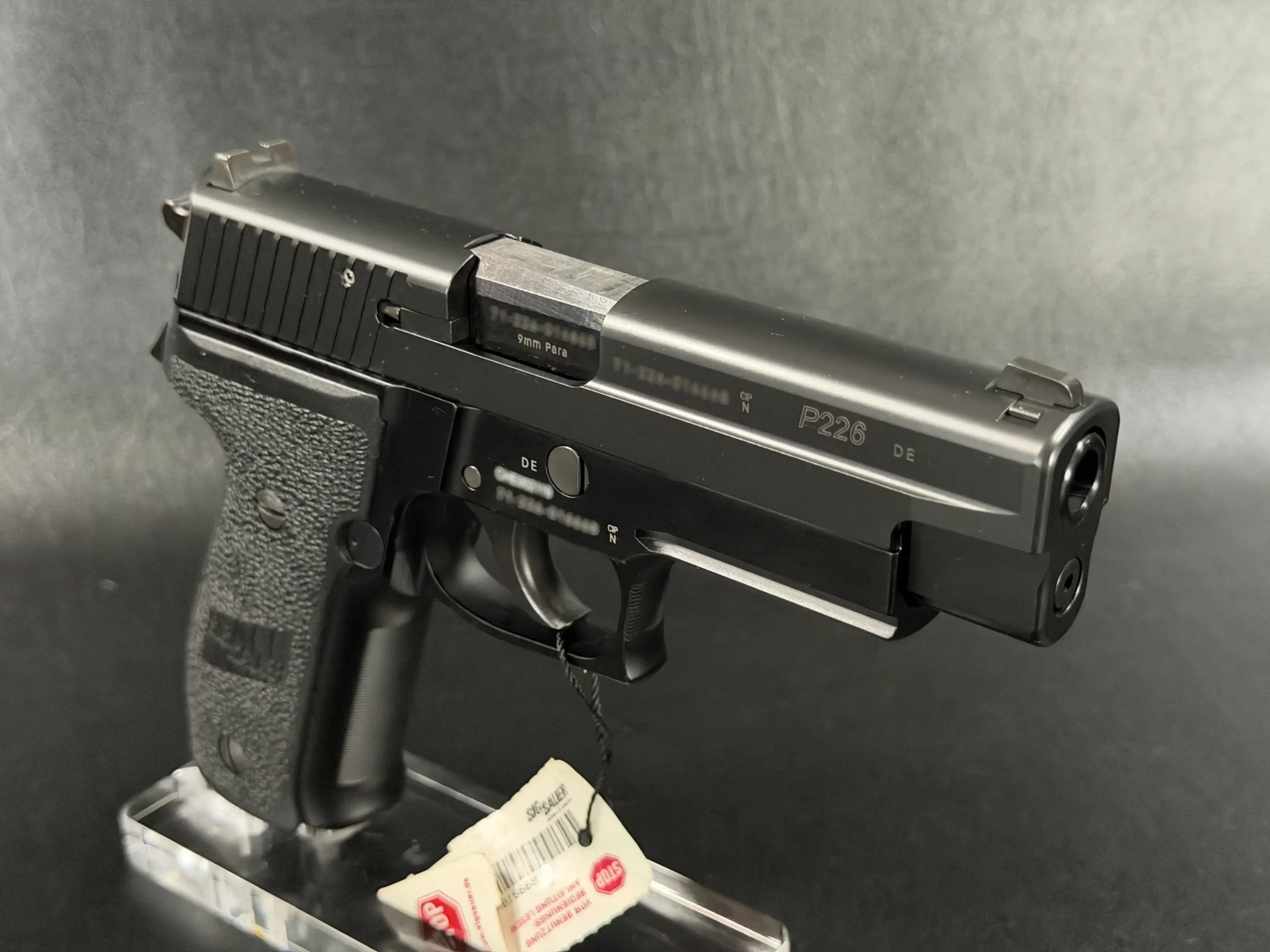 Original-style grips complete the profile, giving this P226 AL SO a purposeful, no-nonsense appearance. Matching major components add to the consistency of the package for buyers seeking a German-made example of this enduring 9mm design.