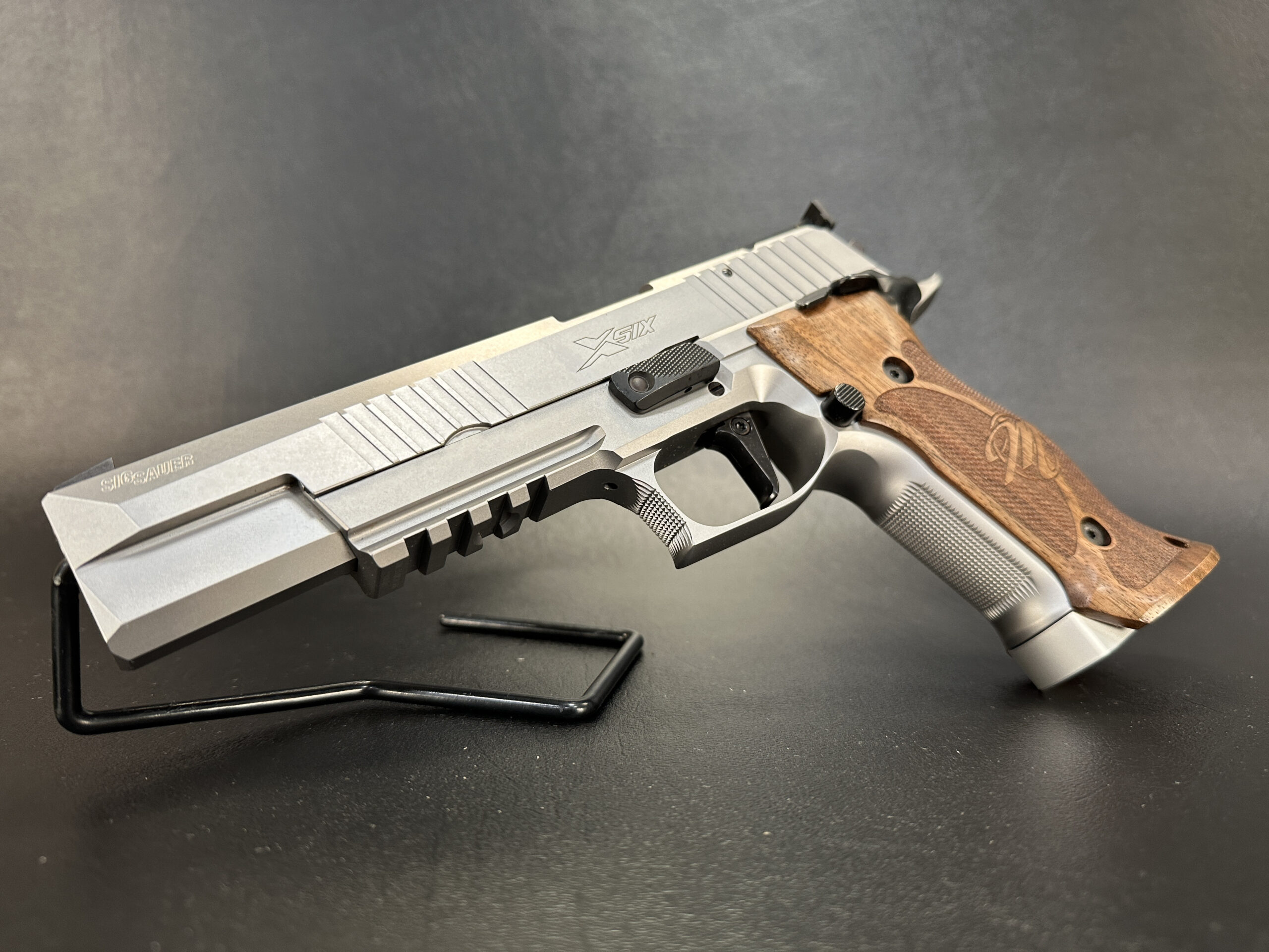 The SIG Sauer P226 X-6 PPC is a Mastershop-built pistol that pairs refined detailing with competition-focused features. It features a stainless steel finish with black controls, along with walnut grips that add warmth and contrast to its distinctive presentation.