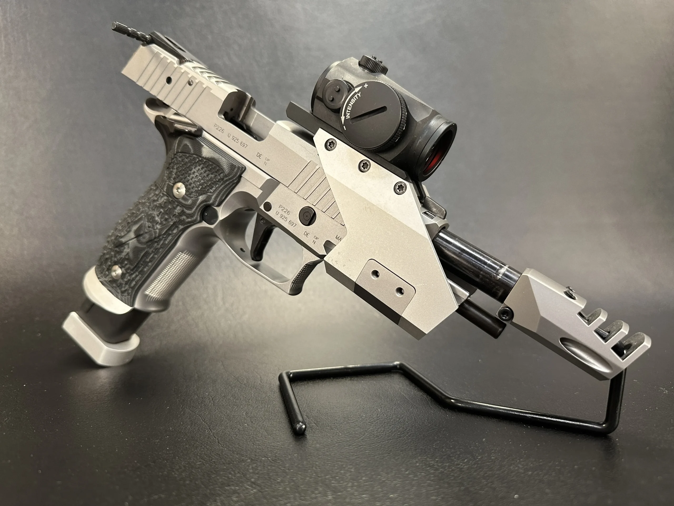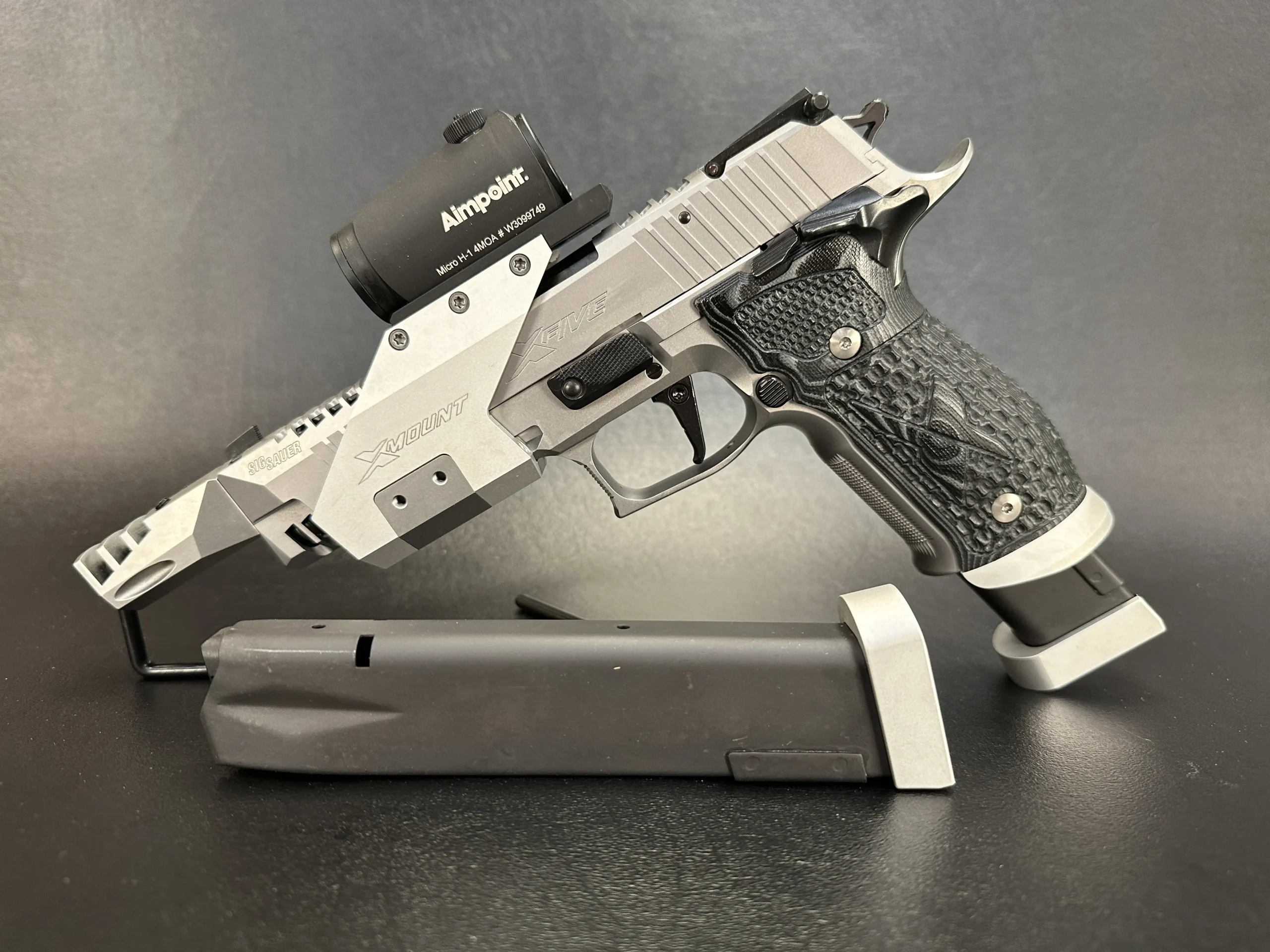 The SIG Sauer P226 X-Five Open Skeleton is a Mastershop-built pistol with a distinctive skeletonized frame and slide design. Finished in stainless steel, it pairs reduced weight with the bold, technical look that defines the X-Five Open platform.