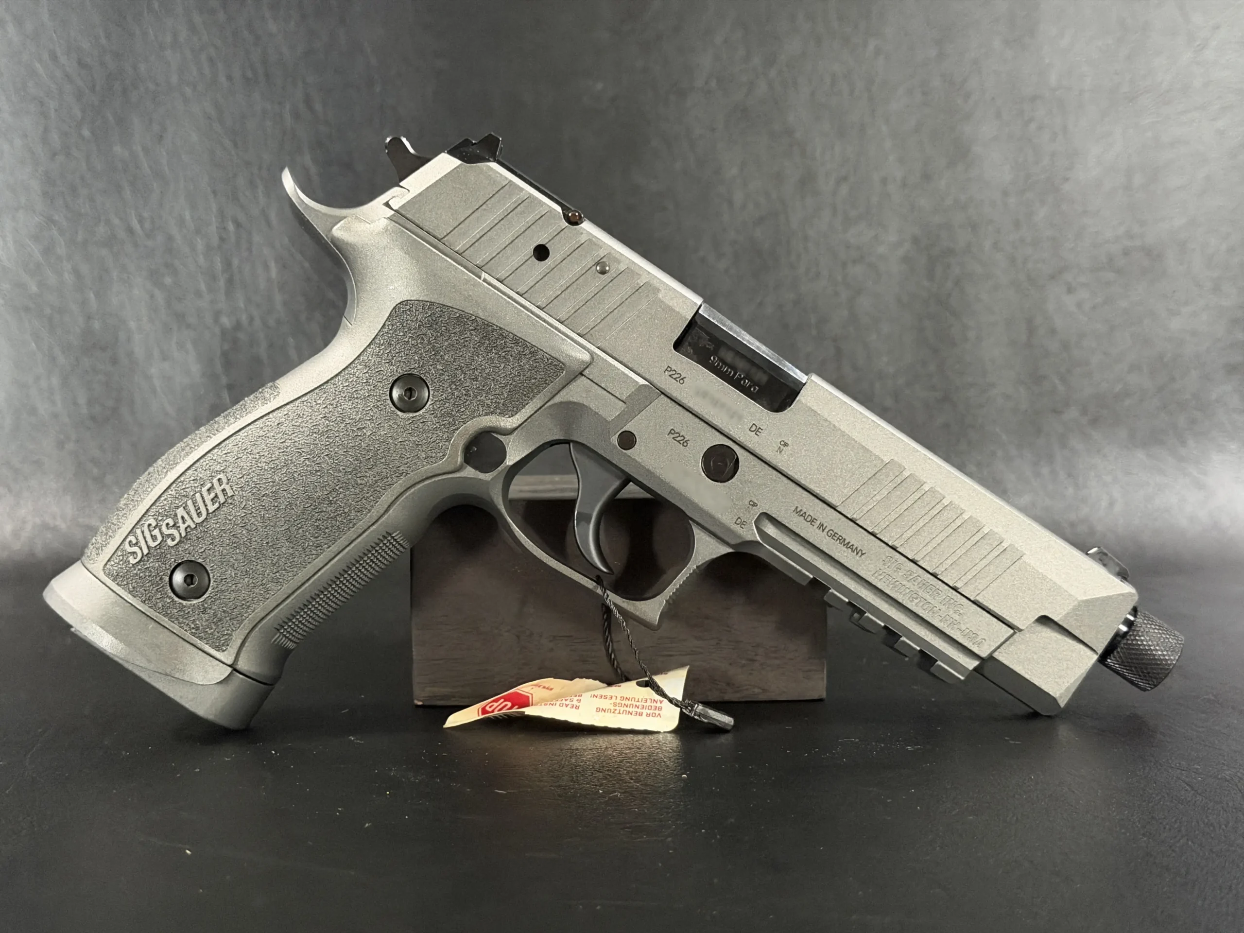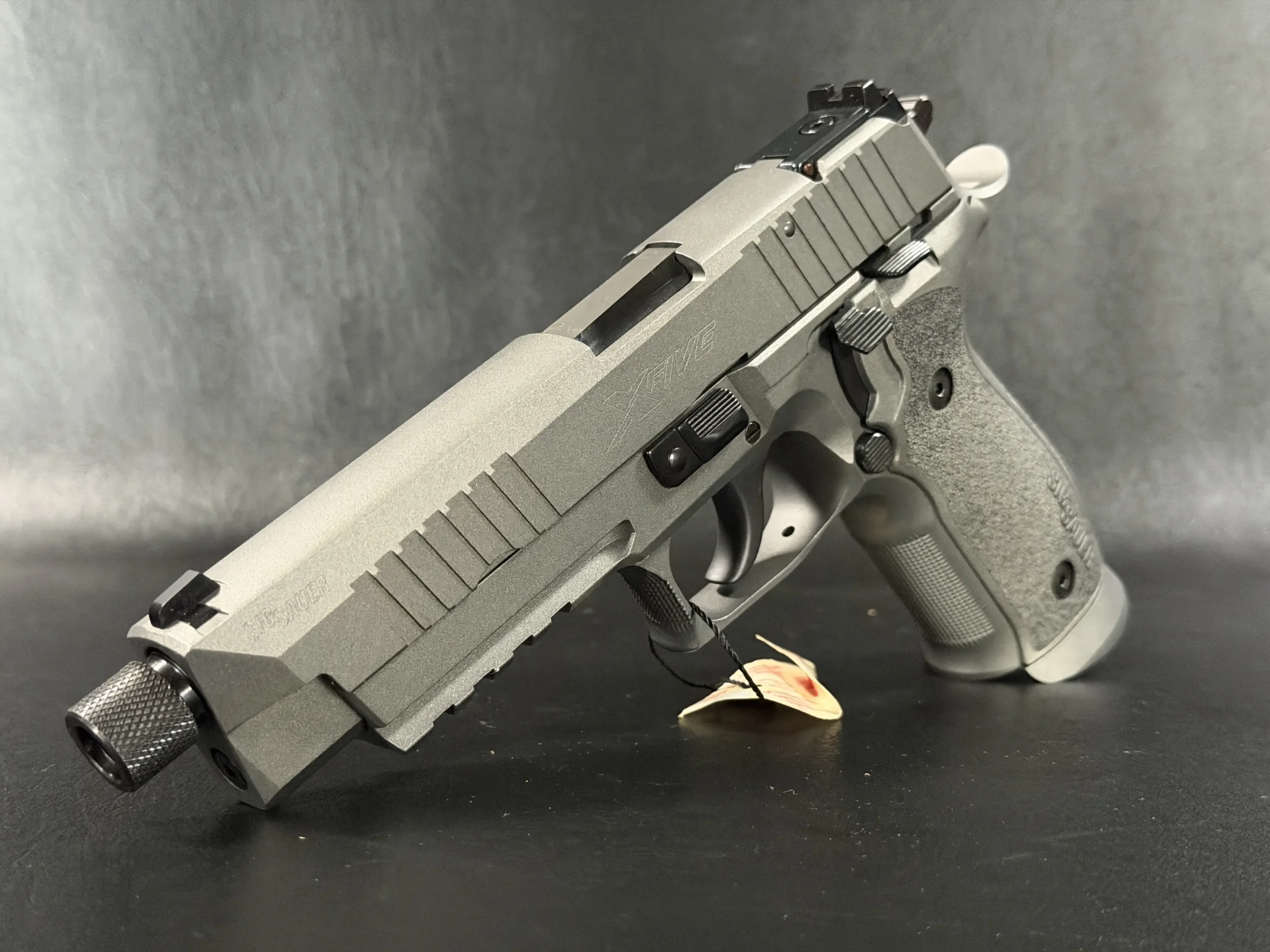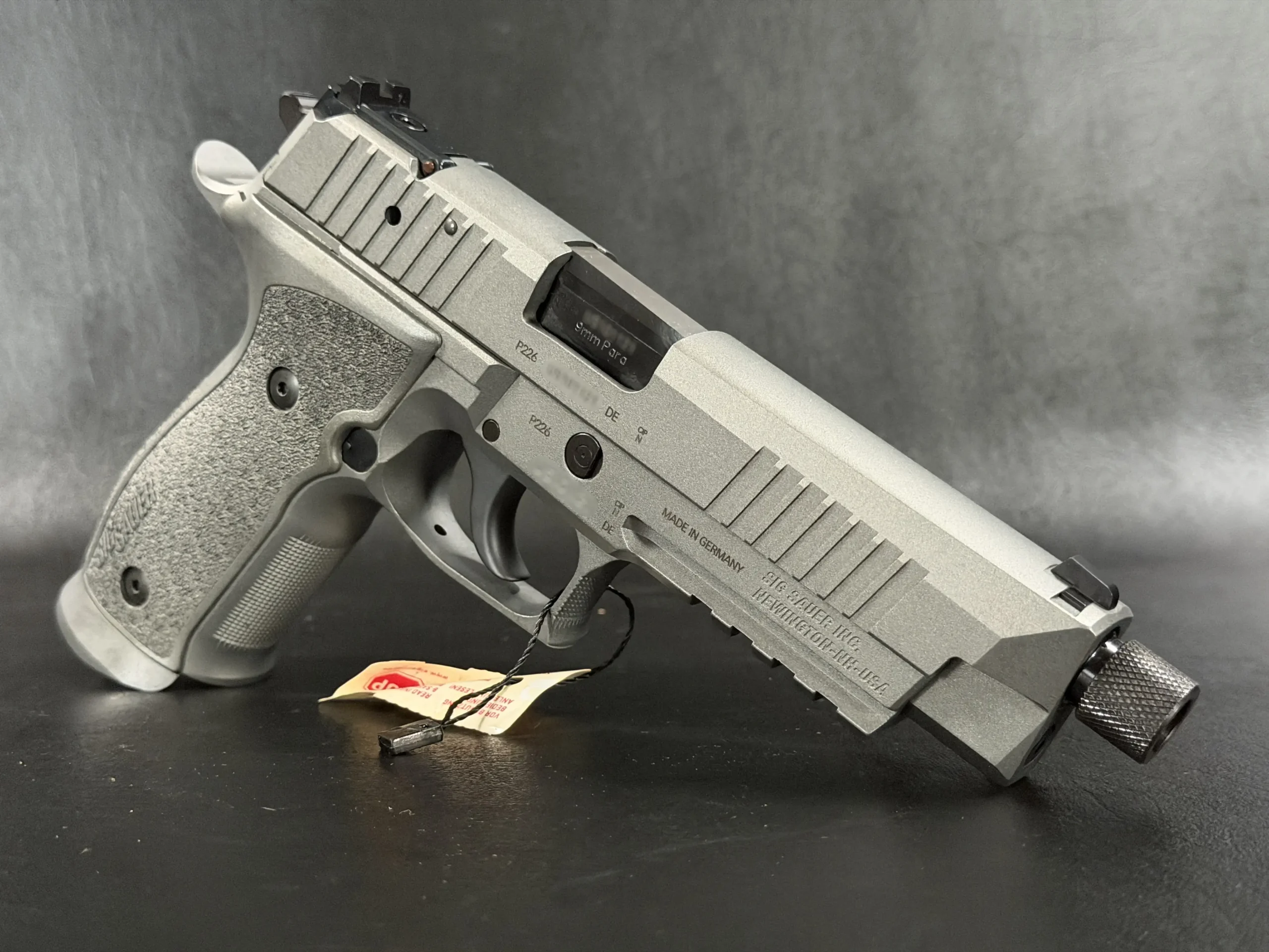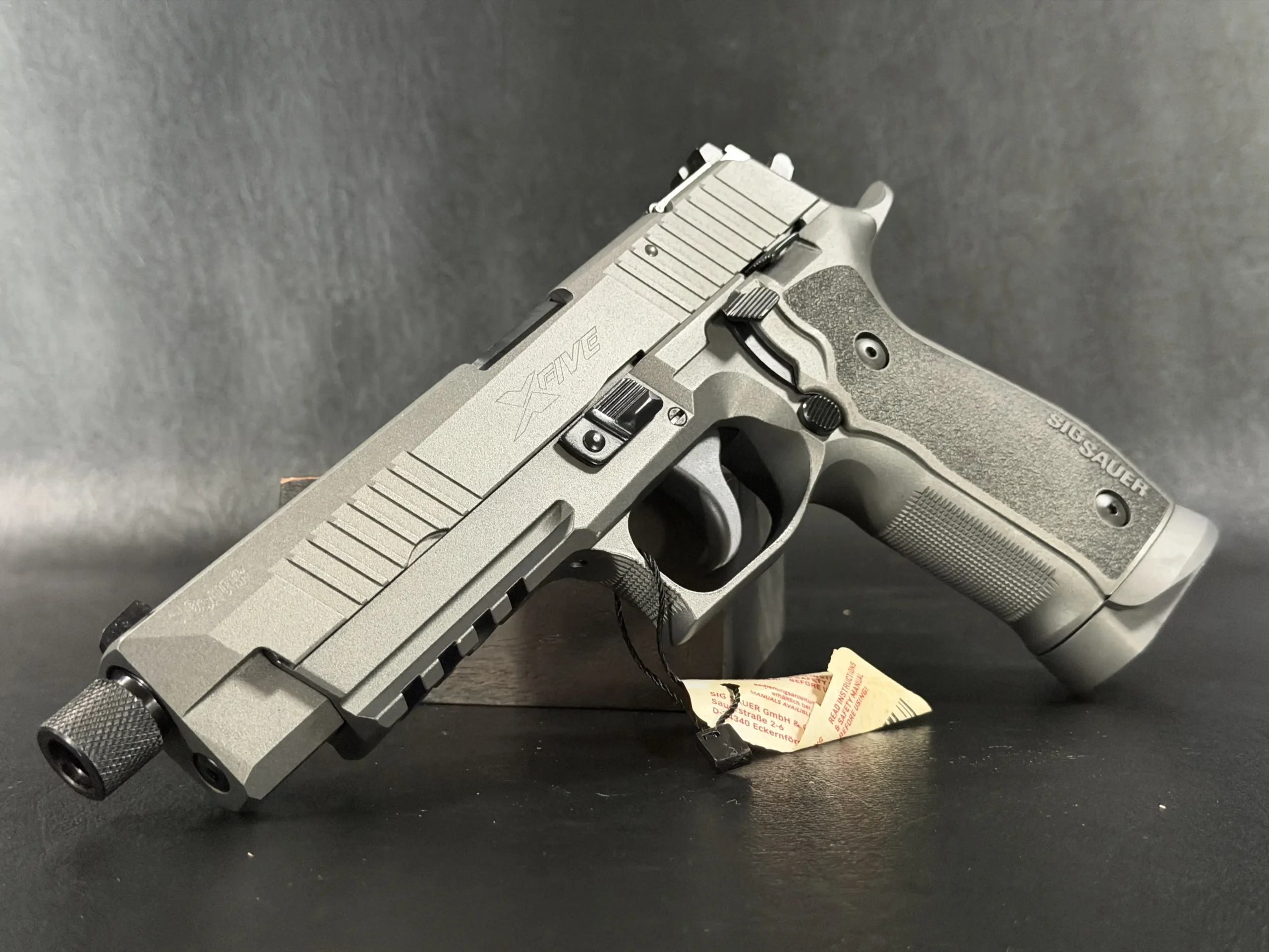 The SIG Sauer P226 X-Five Tactical Grey Mastershop is a German Mastershop-built pistol with a Tactical Grey finish, long X-Five slide, and integrated accessory rail. It features a 5.5-inch threaded barrel in 13.5×1mm LH and the single-action trigger system associated with the X-Five line.
