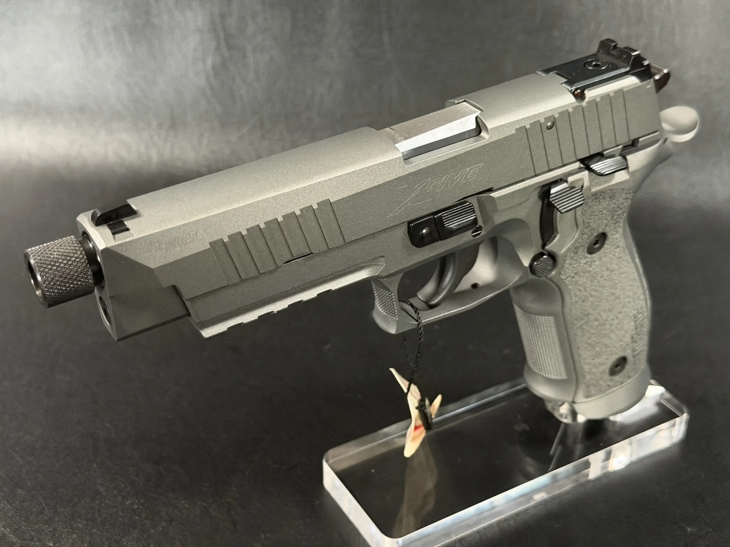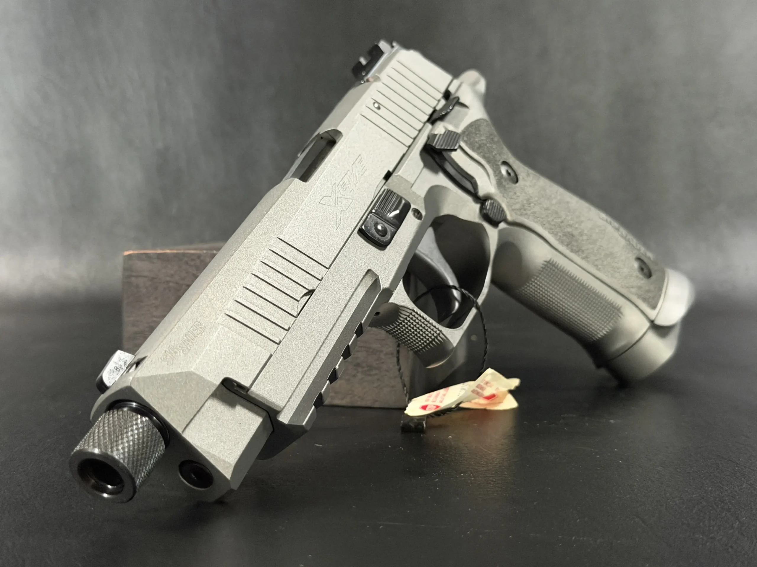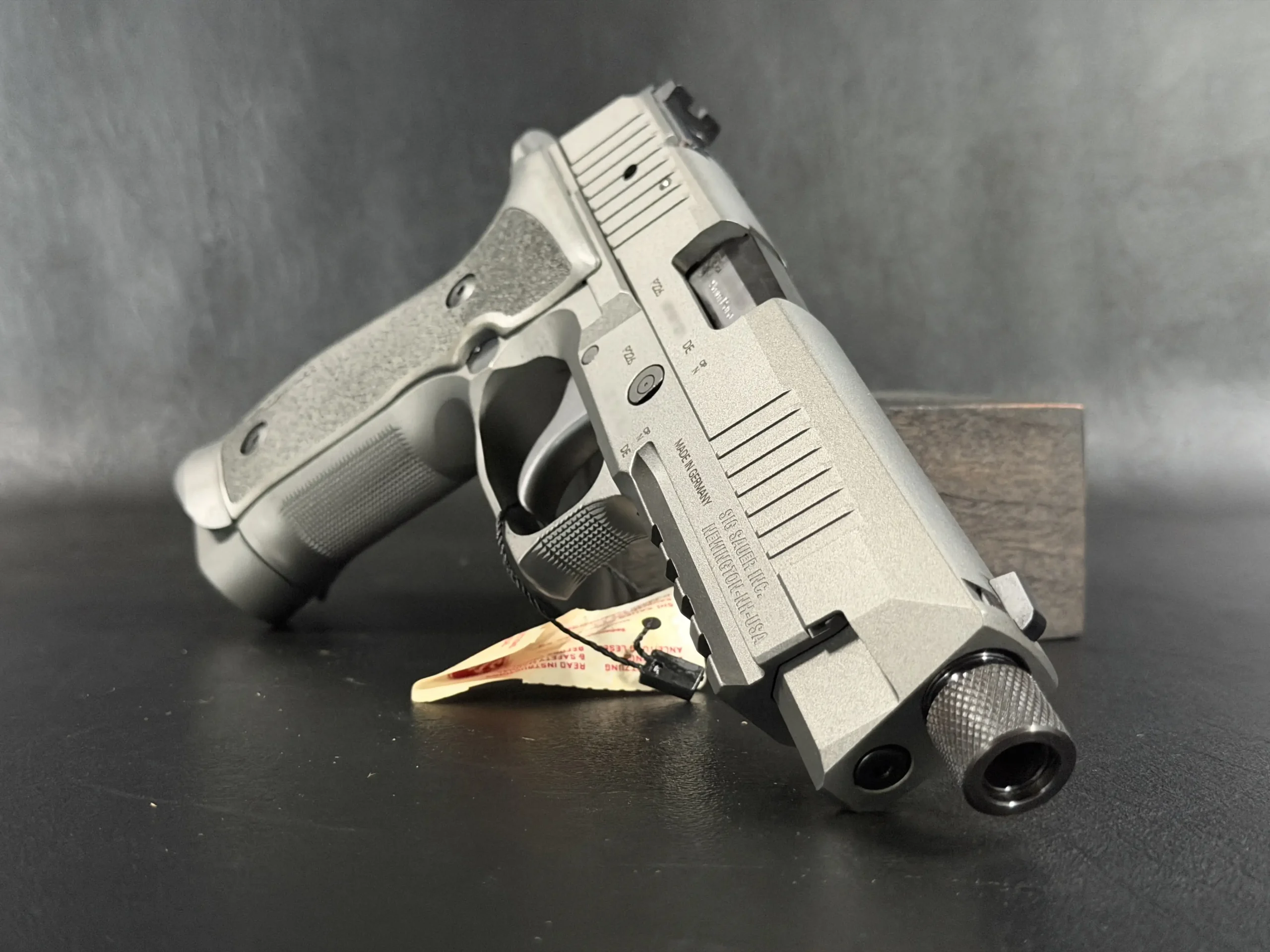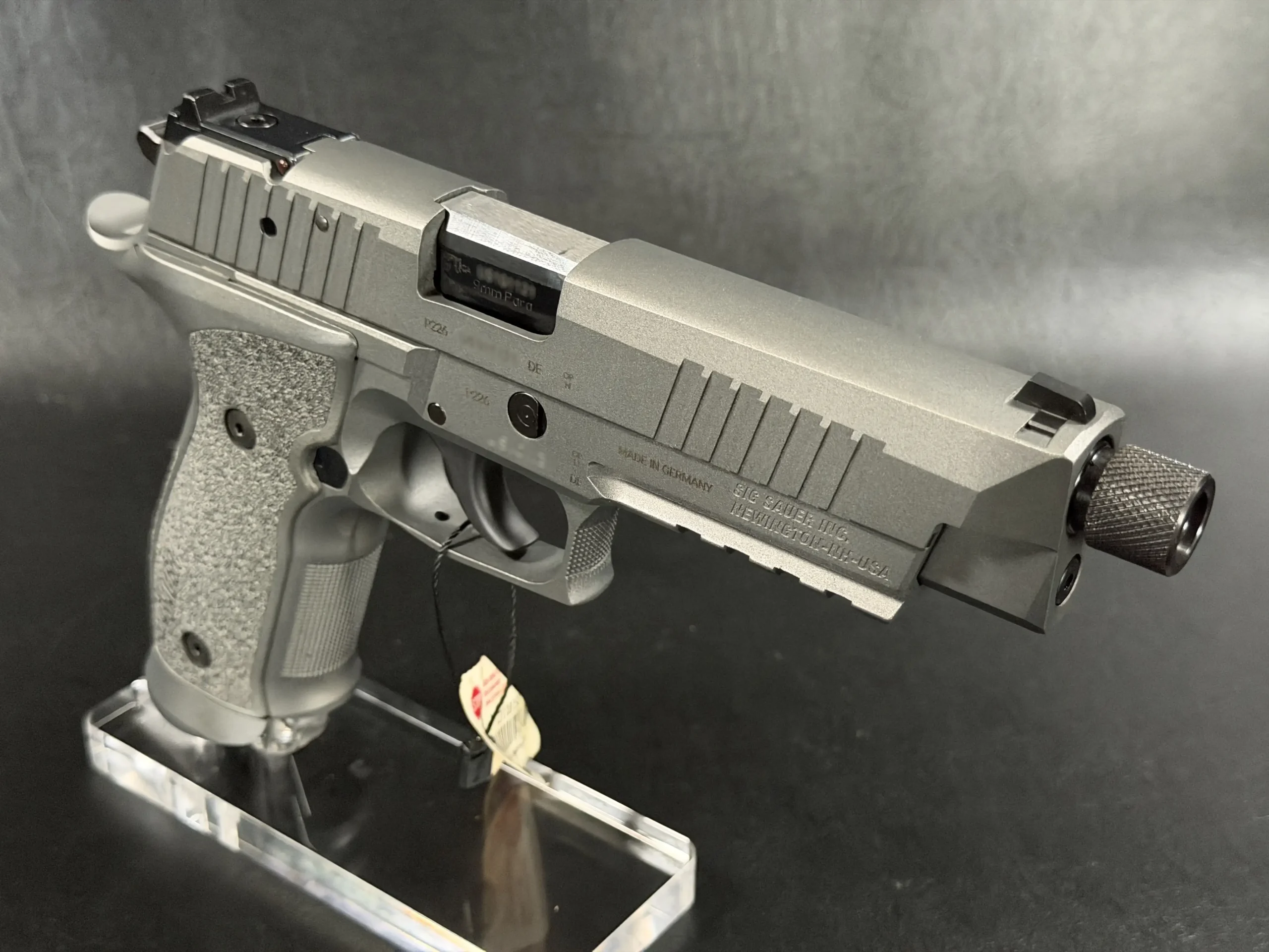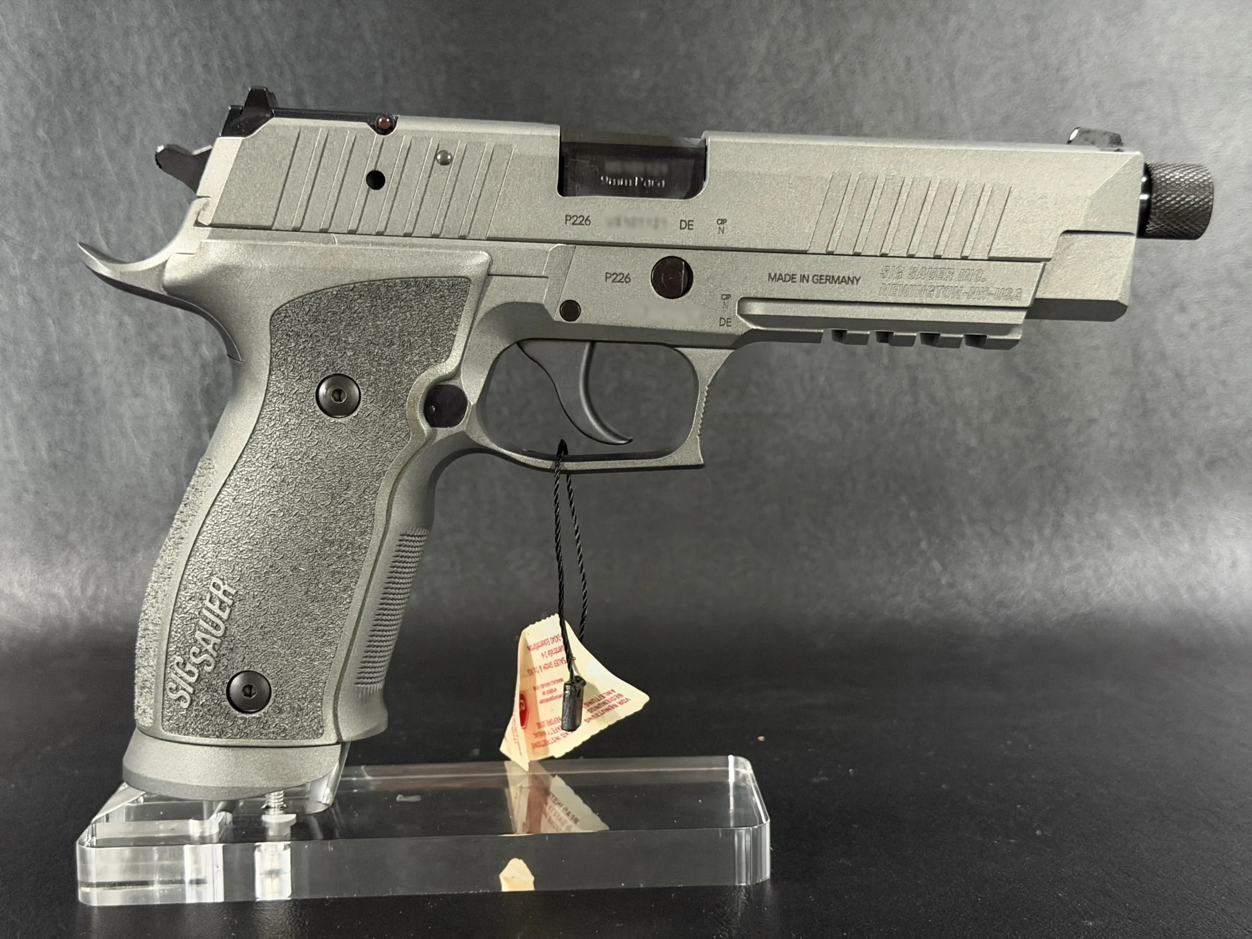 The SIG Sauer P226 X-Five Tactical Grey Mastershop is a German Mastershop-built pistol with a Tactical Grey finish, long X-Five slide, and integrated accessory rail. It features a 5.5-inch threaded barrel in 13.5×1mm LH and the single-action trigger system associated with the X-Five line.