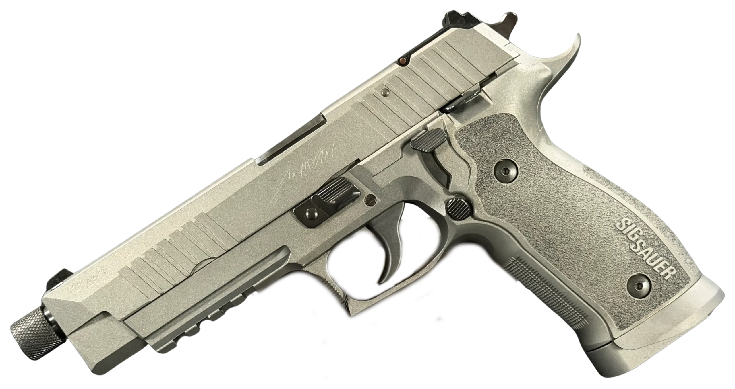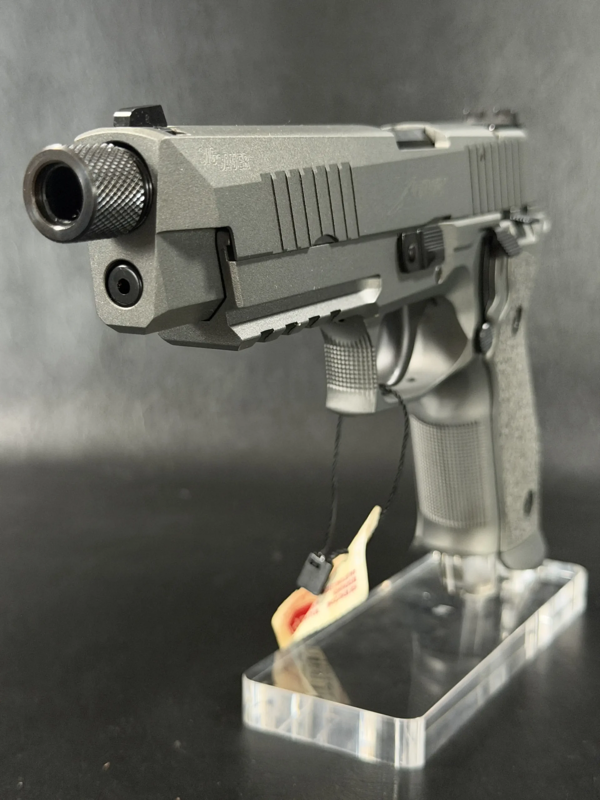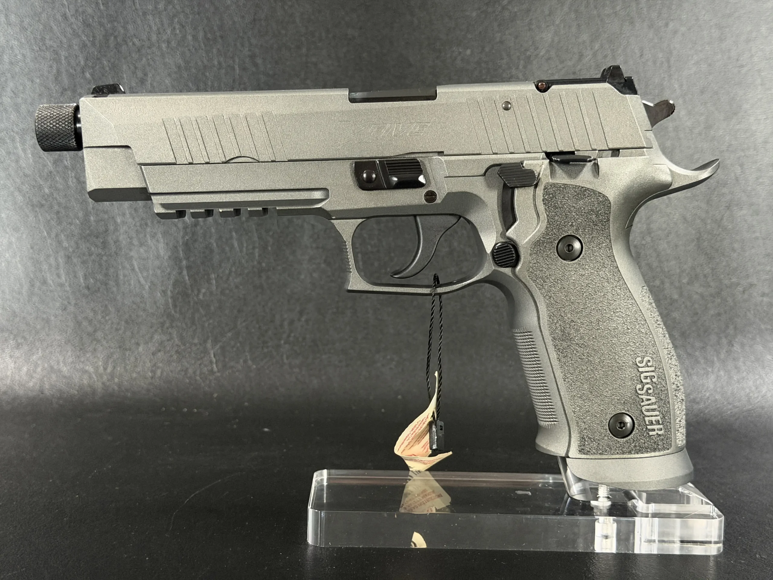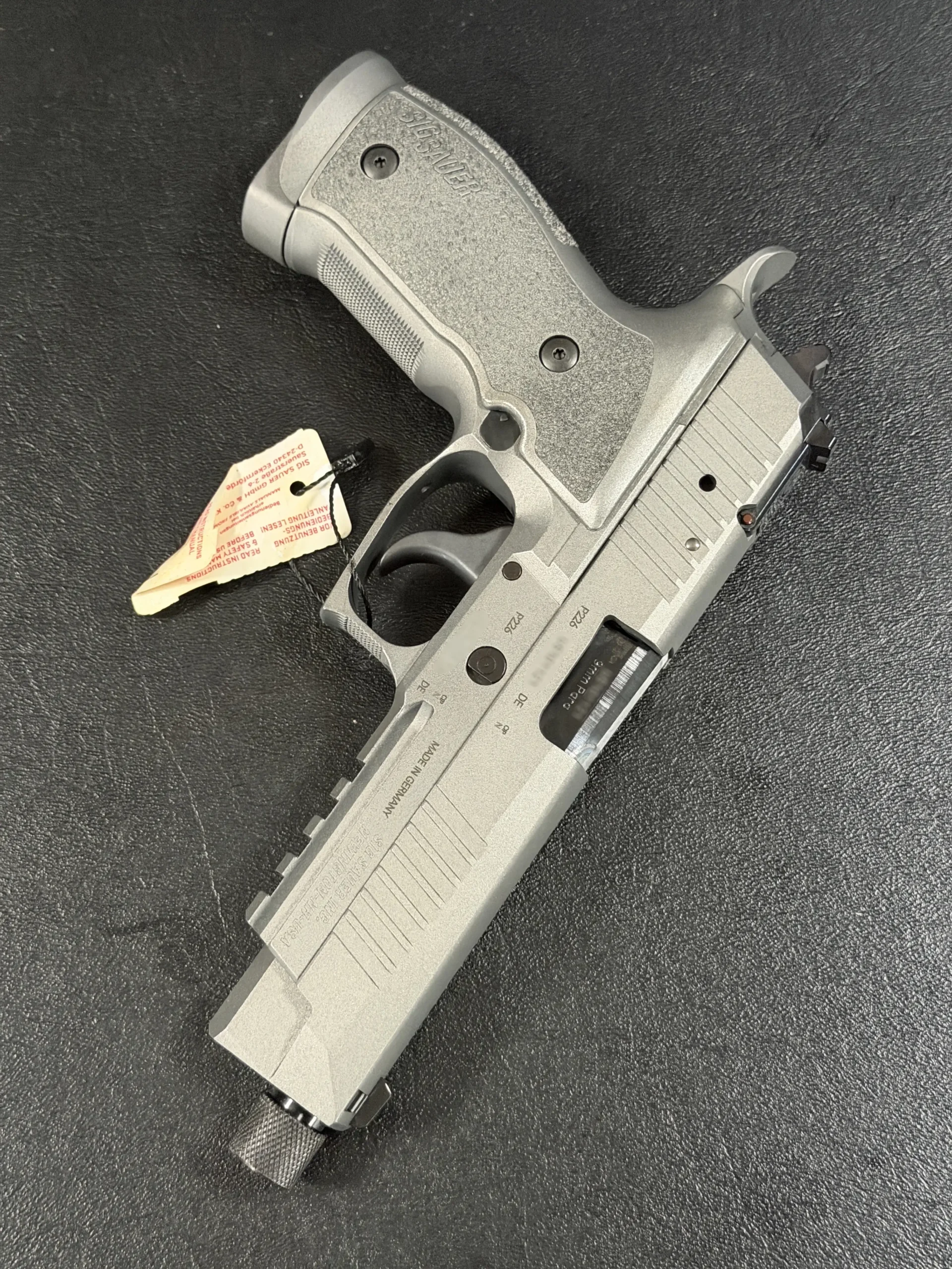 The SIG Sauer P226 X-Five Tactical Grey Mastershop is a German Mastershop-built pistol with a Tactical Grey finish, long X-Five slide, and integrated accessory rail. It features a 5.5-inch threaded barrel in 13.5×1mm LH and the single-action trigger system associated with the X-Five line.