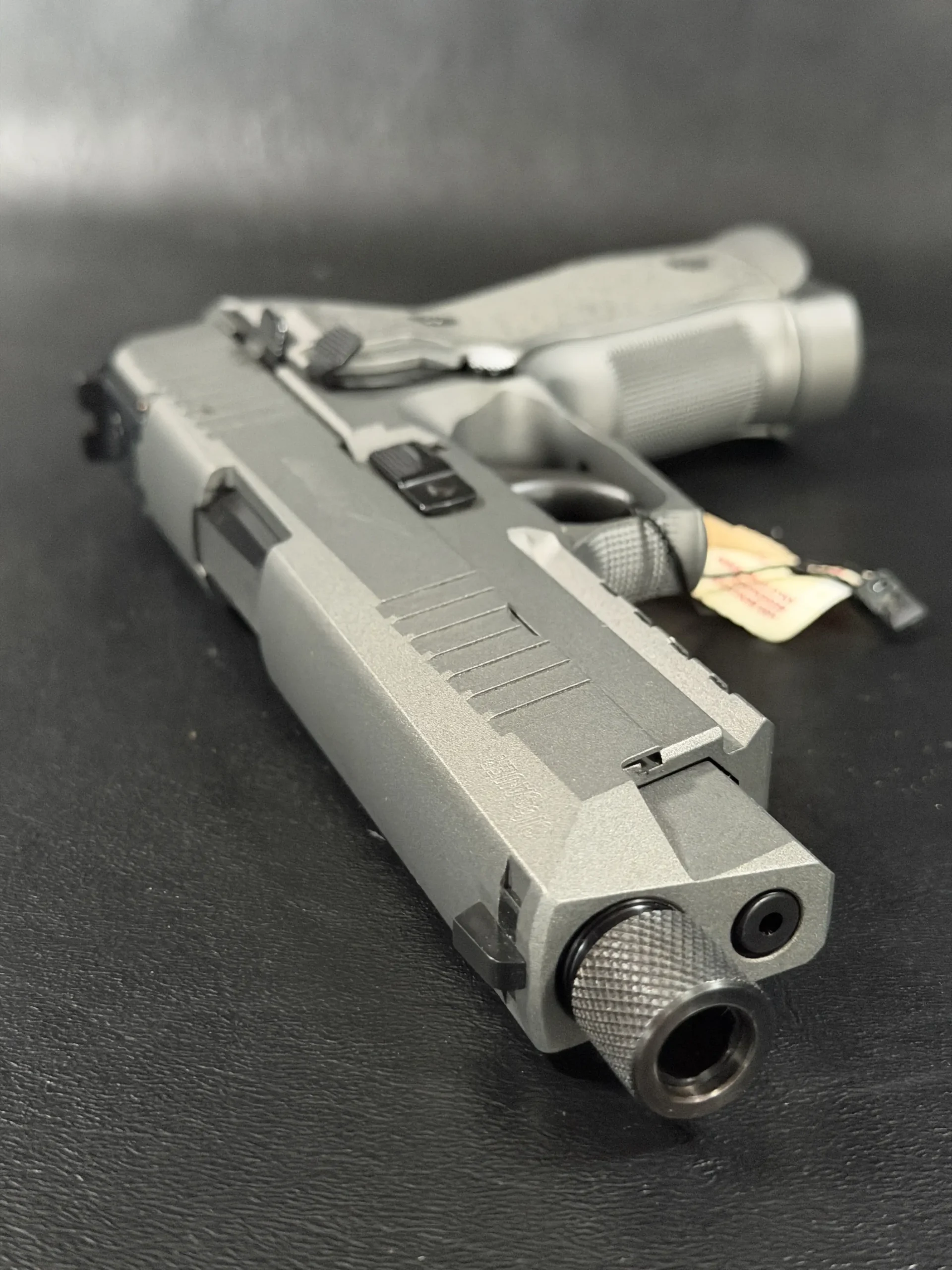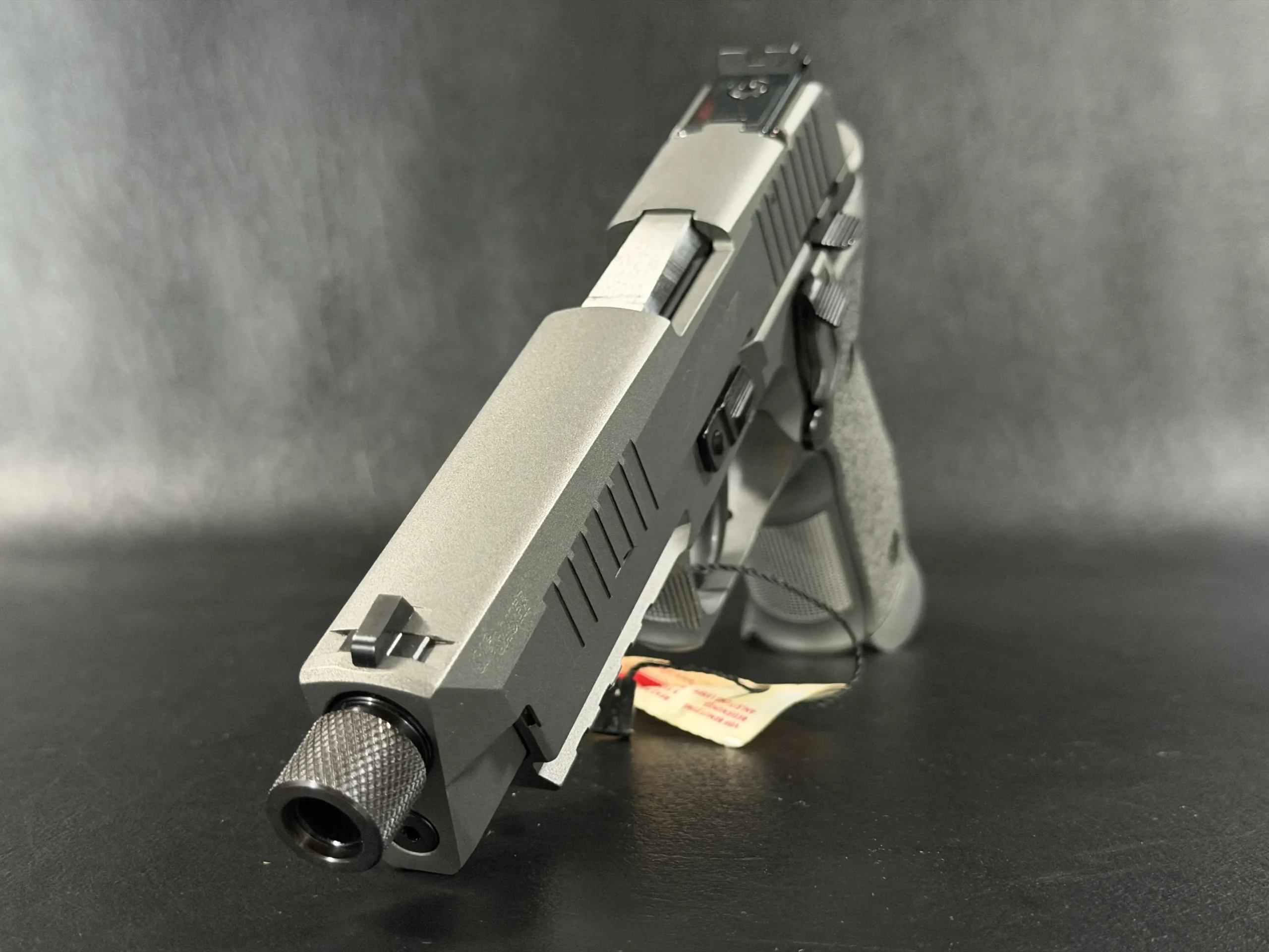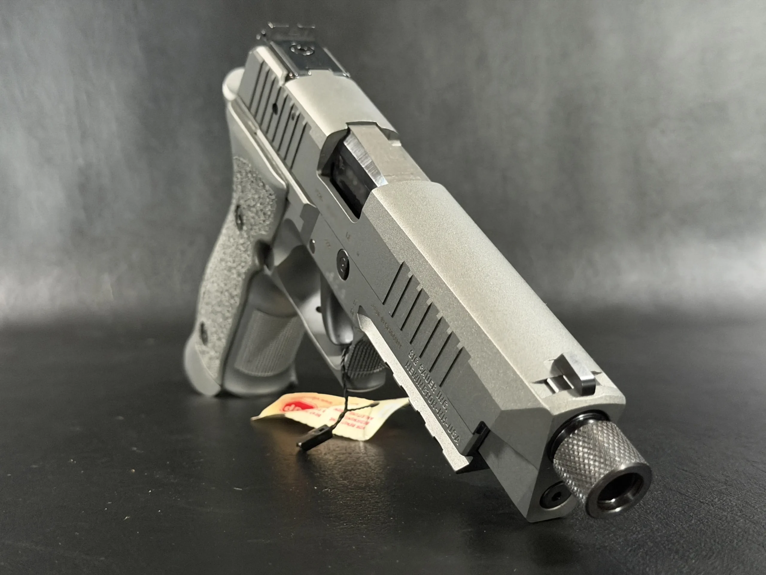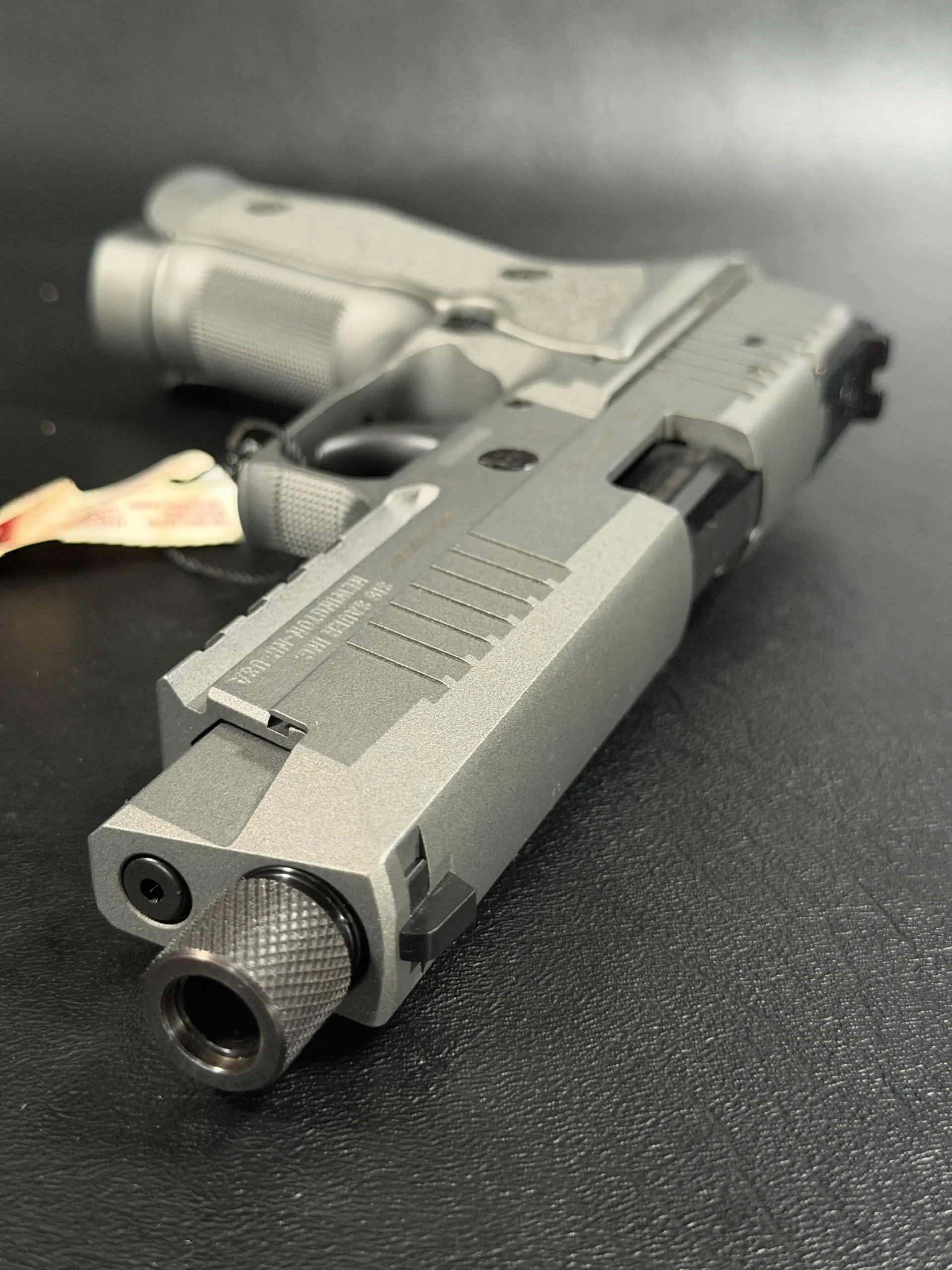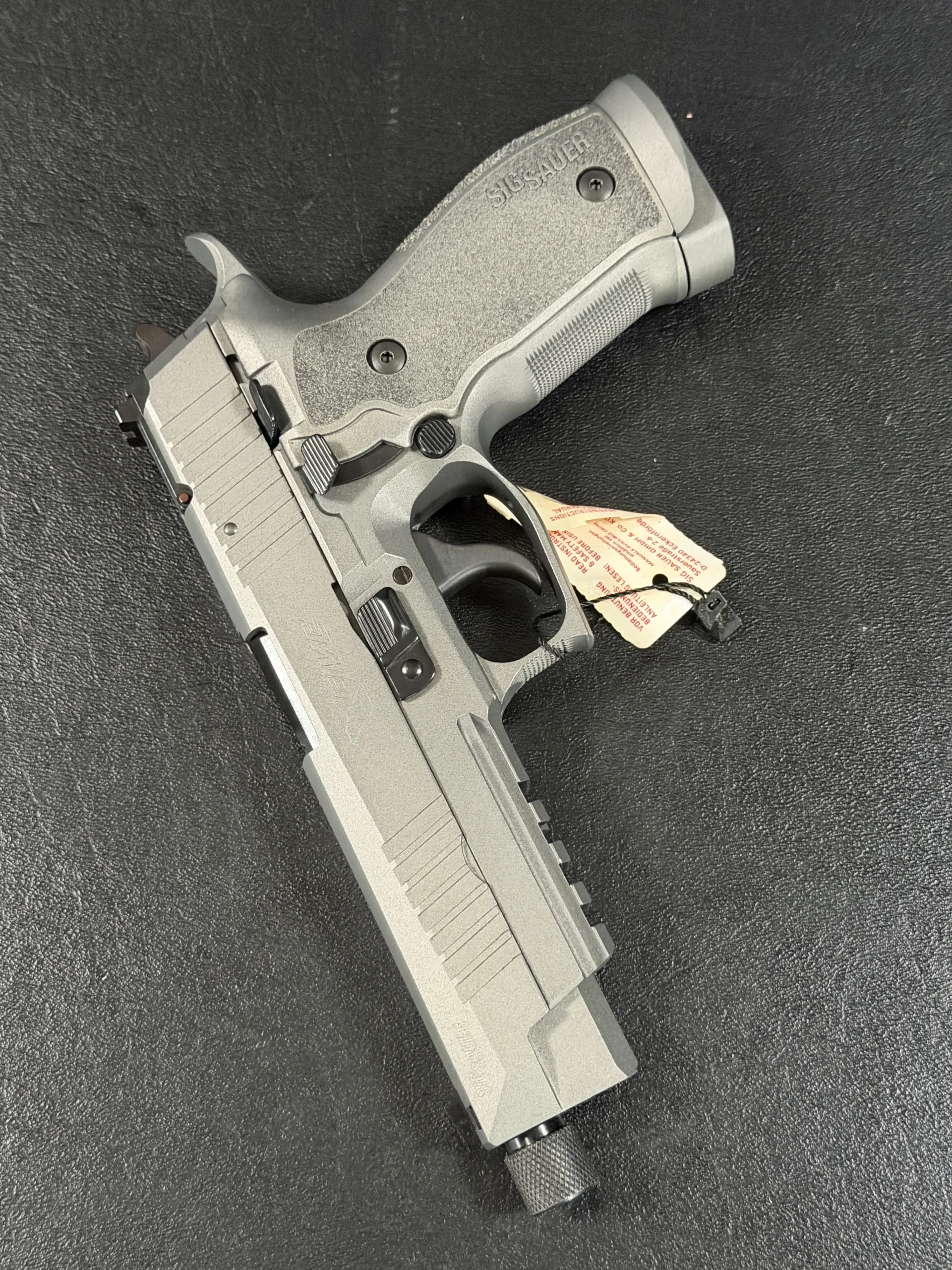 The SIG Sauer P226 X-Five Tactical Grey Mastershop is a German Mastershop-built pistol with a Tactical Grey finish, long X-Five slide, and integrated accessory rail. It features a 5.5-inch threaded barrel in 13.5×1mm LH and the single-action trigger system associated with the X-Five line.
