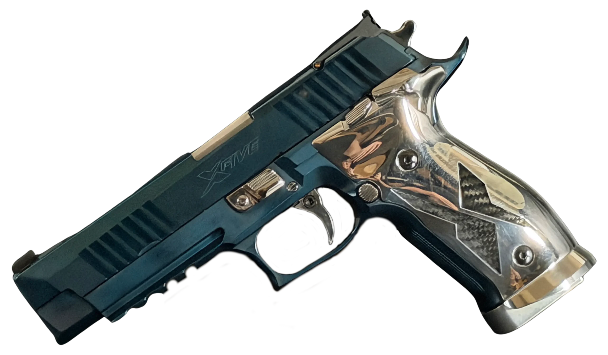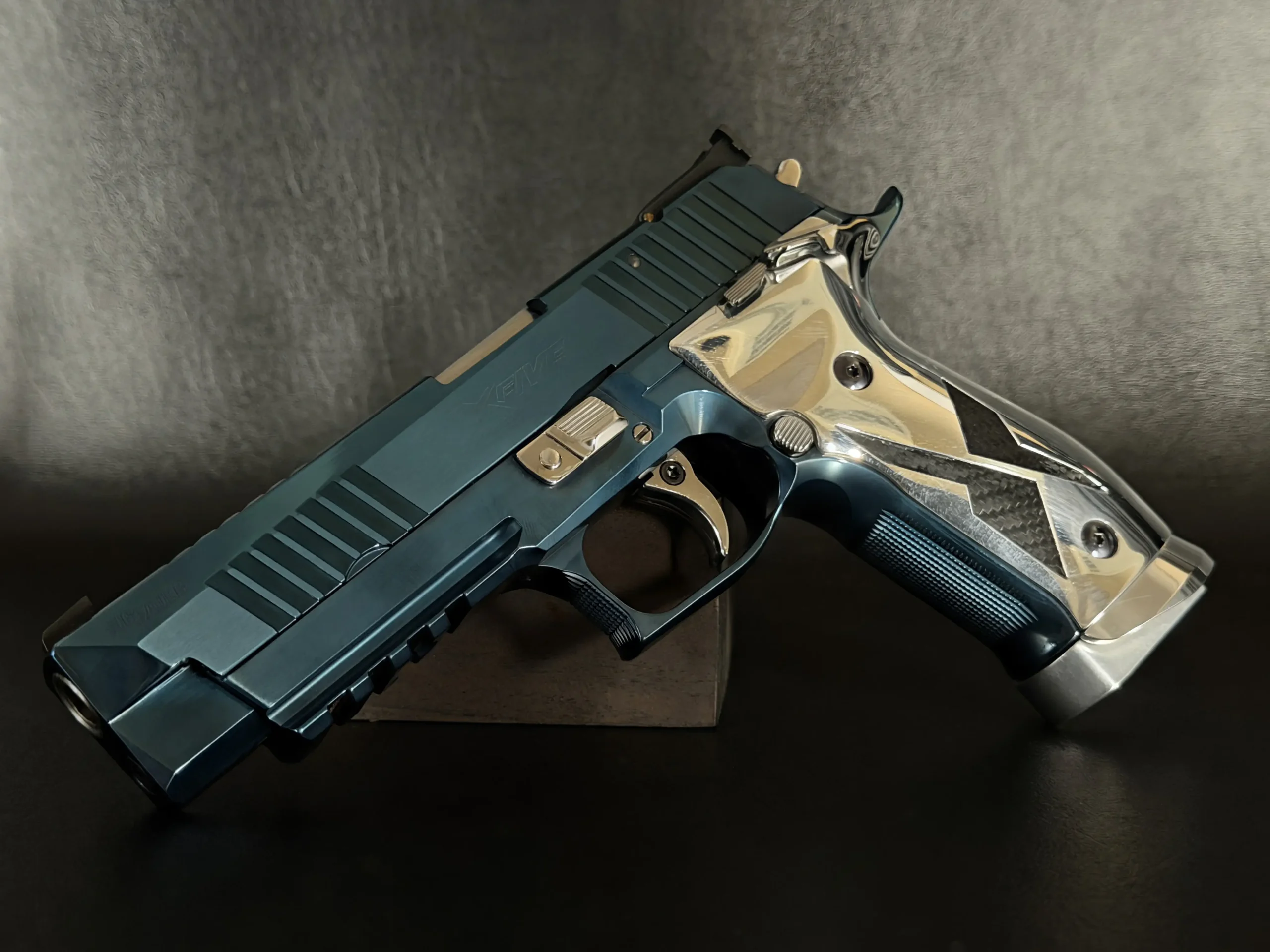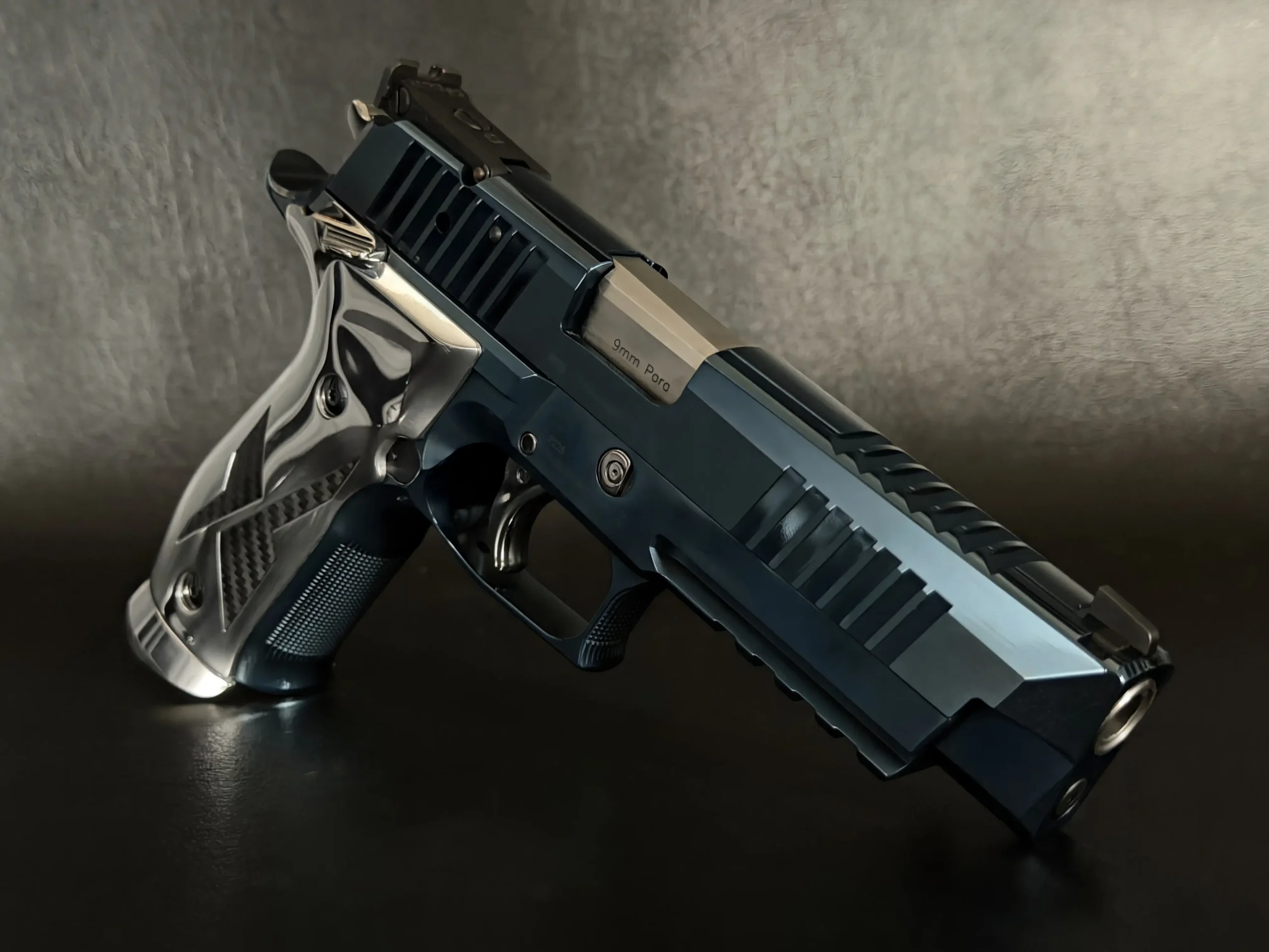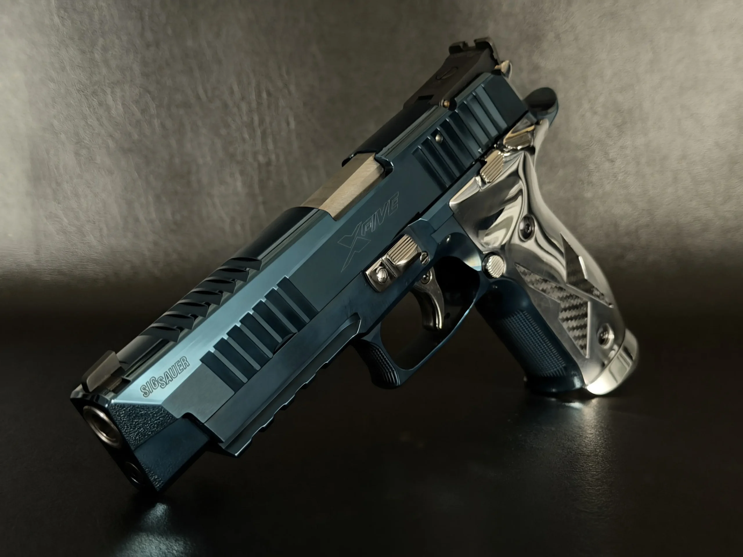 For collectors and enthusiasts of the X-Series, the P226 X-Five Titanium Blue stands out for its uncommon finish combination and unmistakable styling. It is an eye-catching example of the craftsmanship and design language that made the Mastershop-era pistols so memorable.