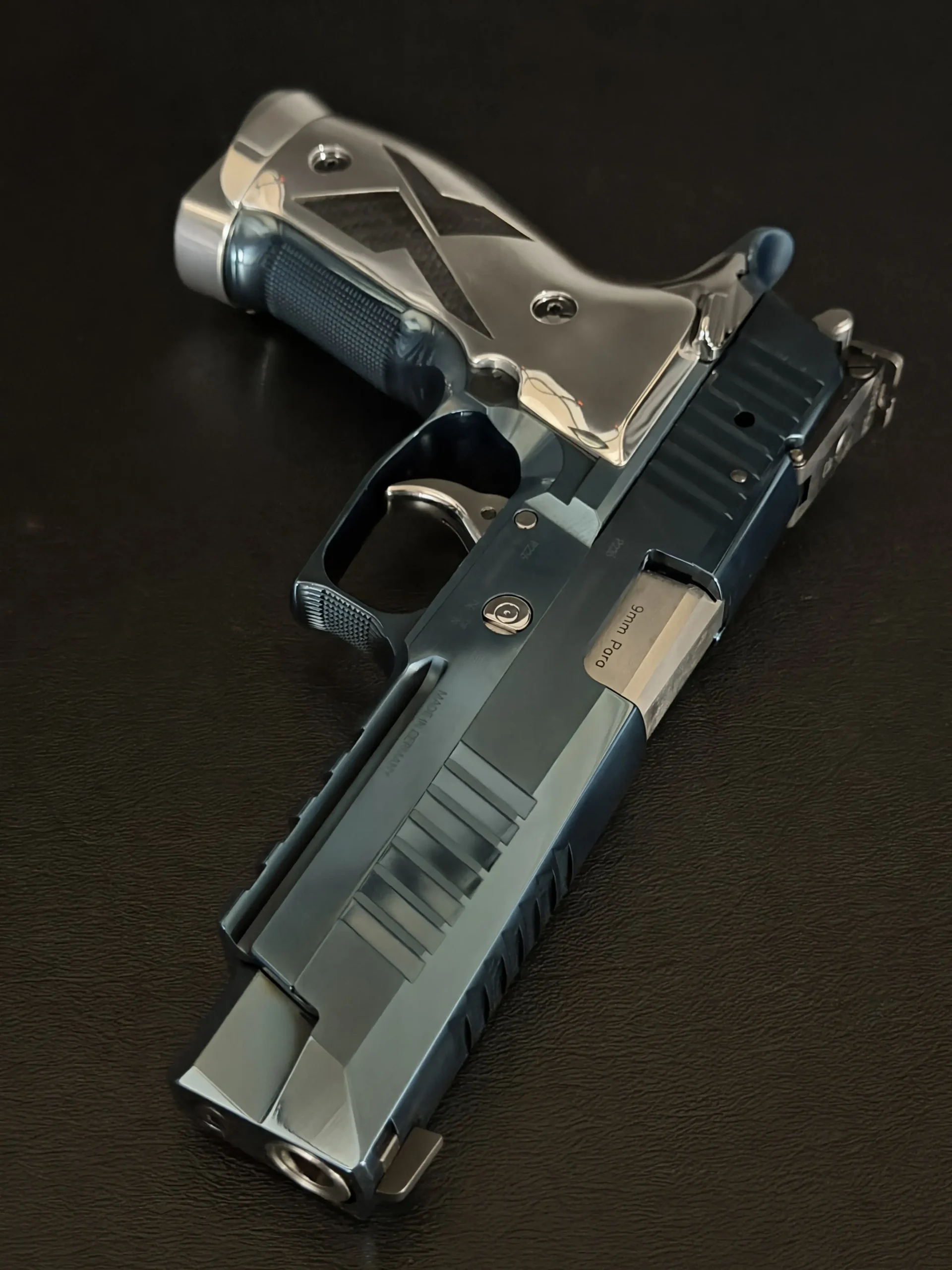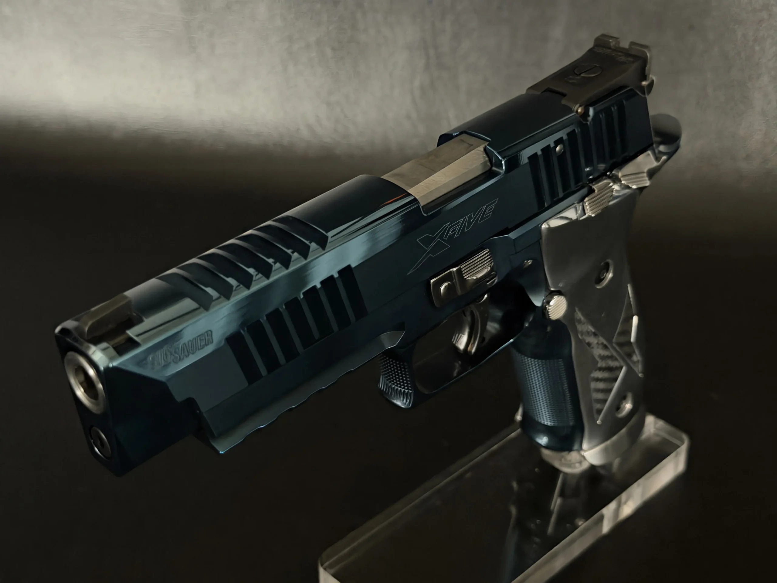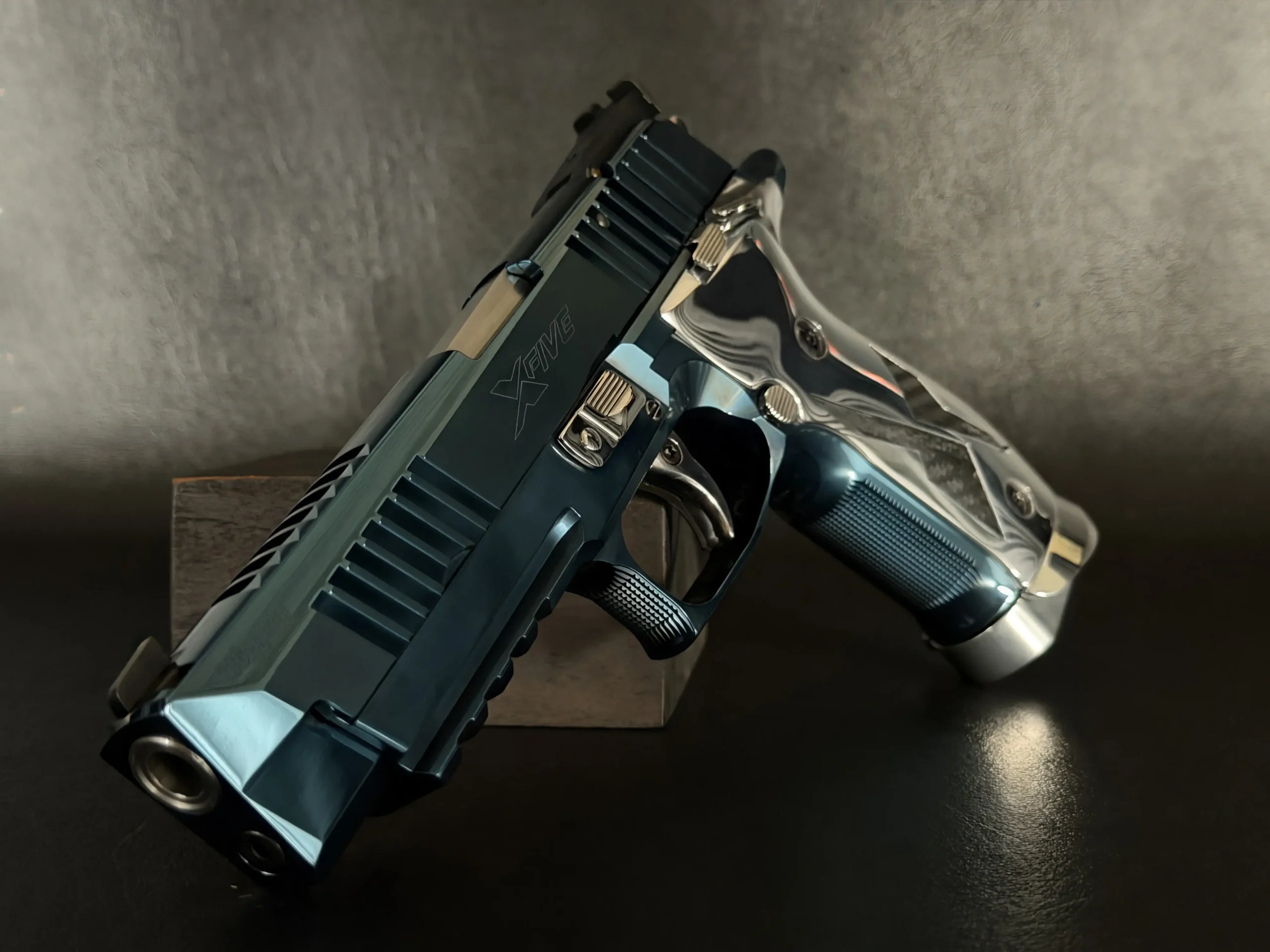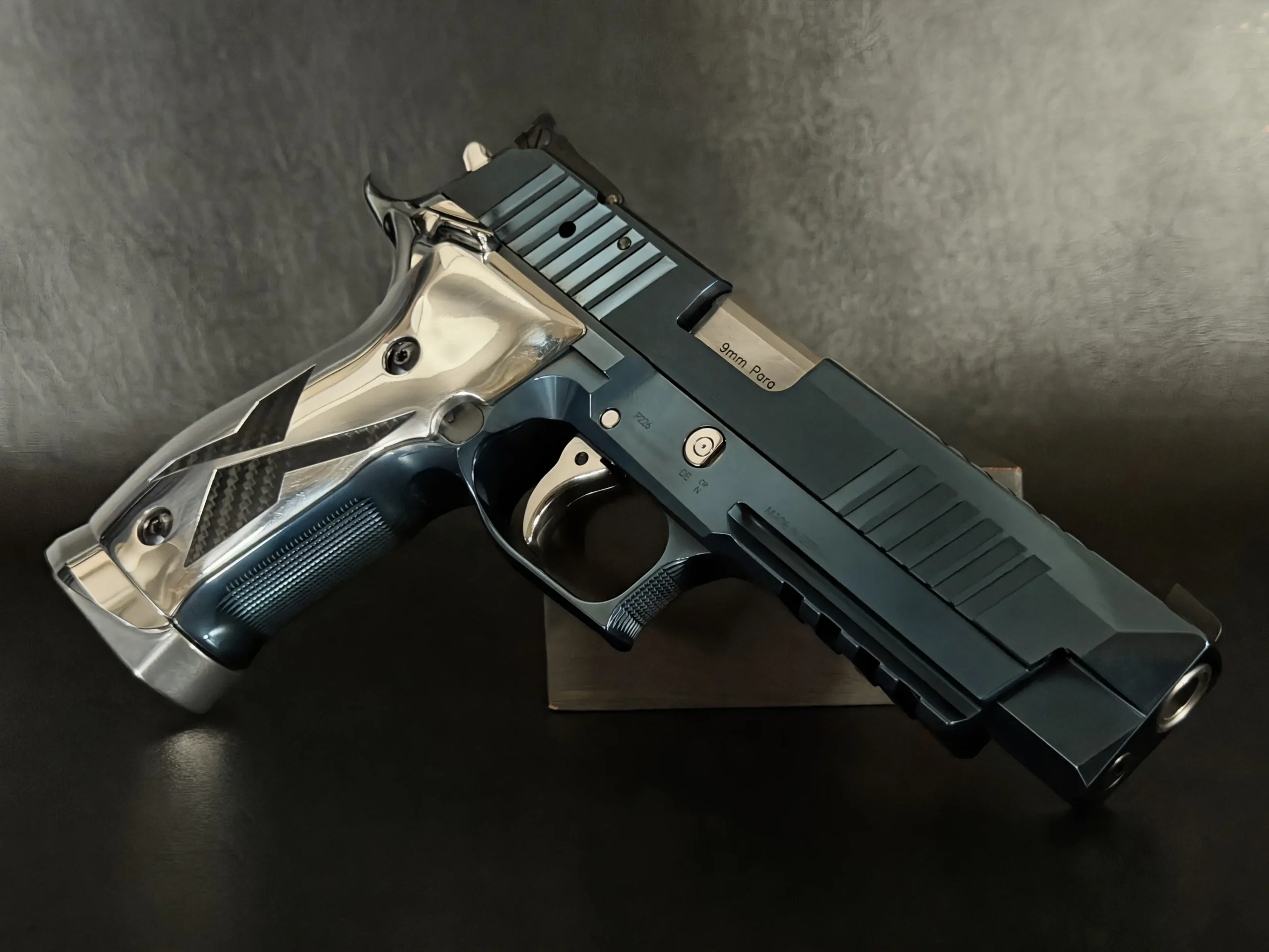 For collectors and enthusiasts of the X-Series, the P226 X-Five Titanium Blue stands out for its uncommon finish combination and unmistakable styling. It is an eye-catching example of the craftsmanship and design language that made the Mastershop-era pistols so memorable.