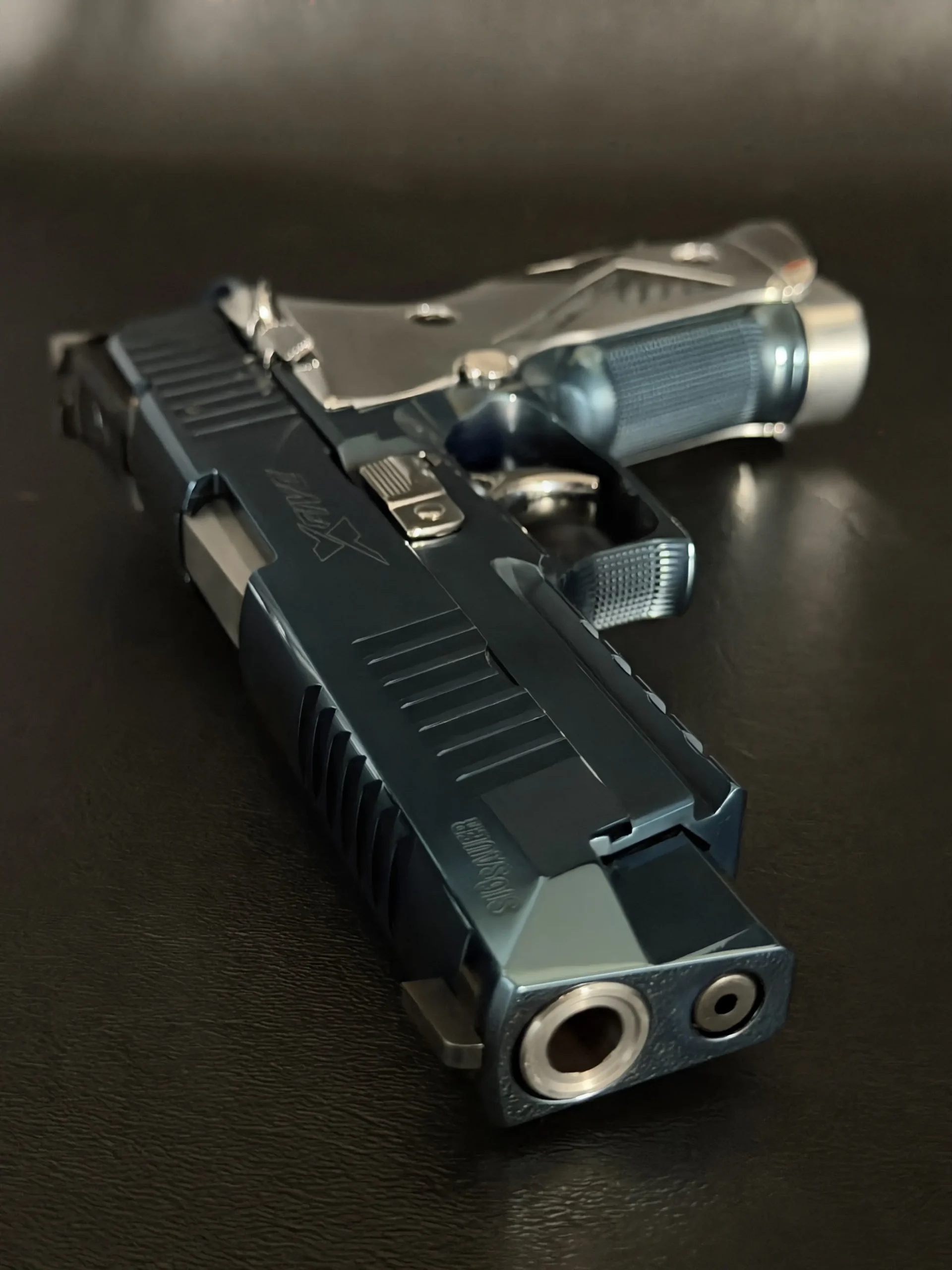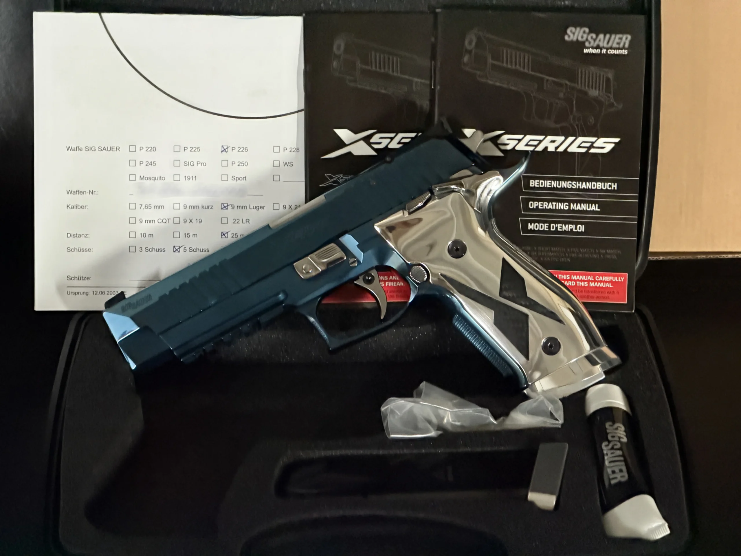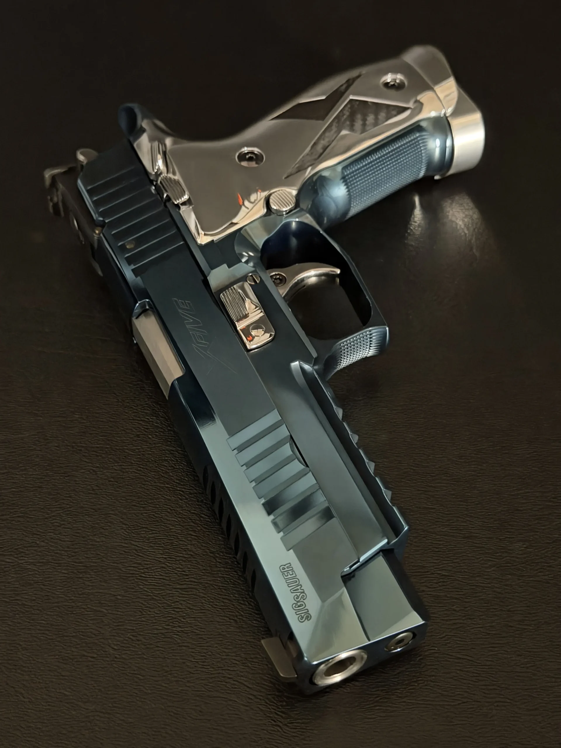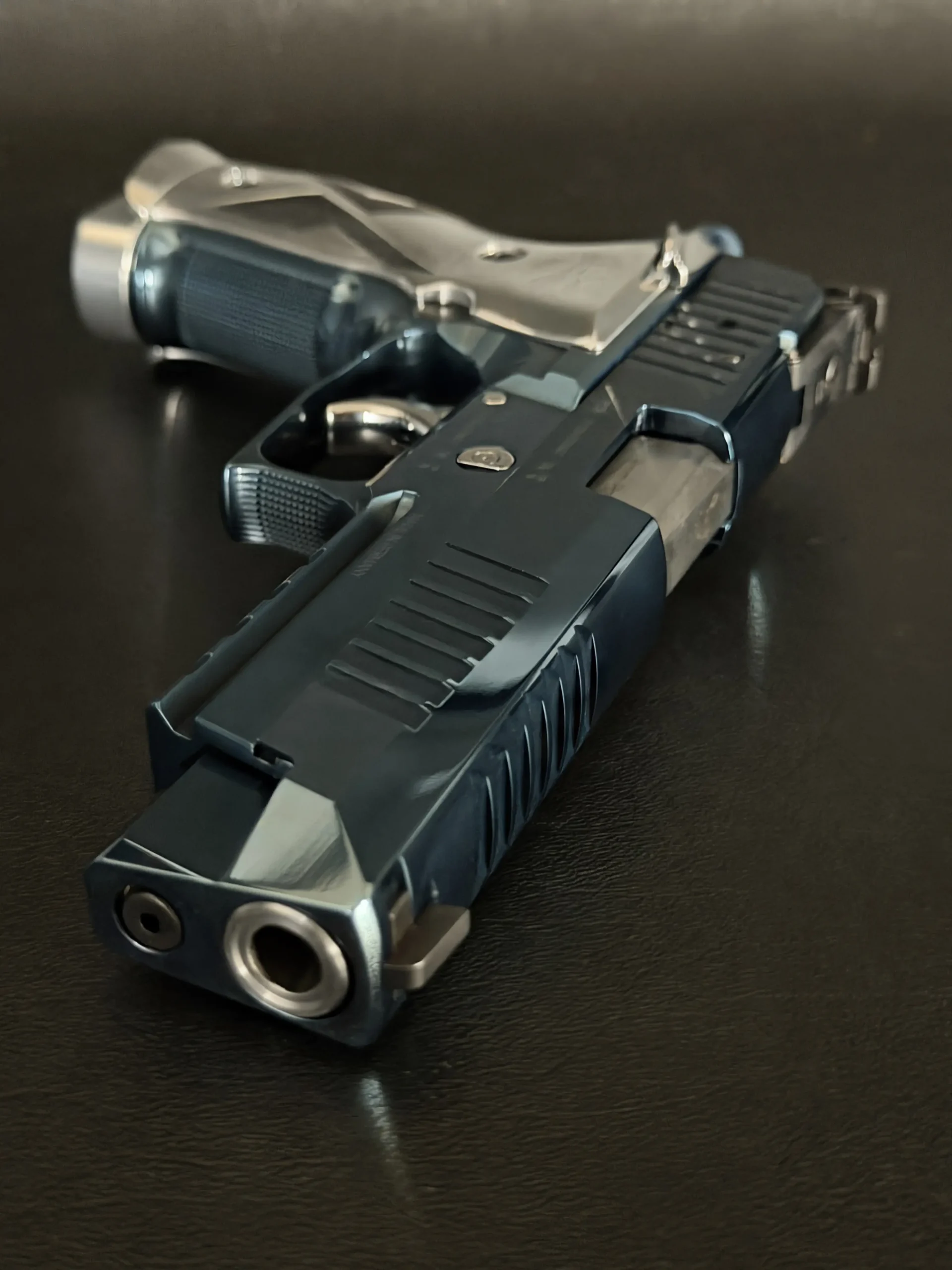 For collectors and enthusiasts of the X-Series, the P226 X-Five Titanium Blue stands out for its uncommon finish combination and unmistakable styling. It is an eye-catching example of the craftsmanship and design language that made the Mastershop-era pistols so memorable.