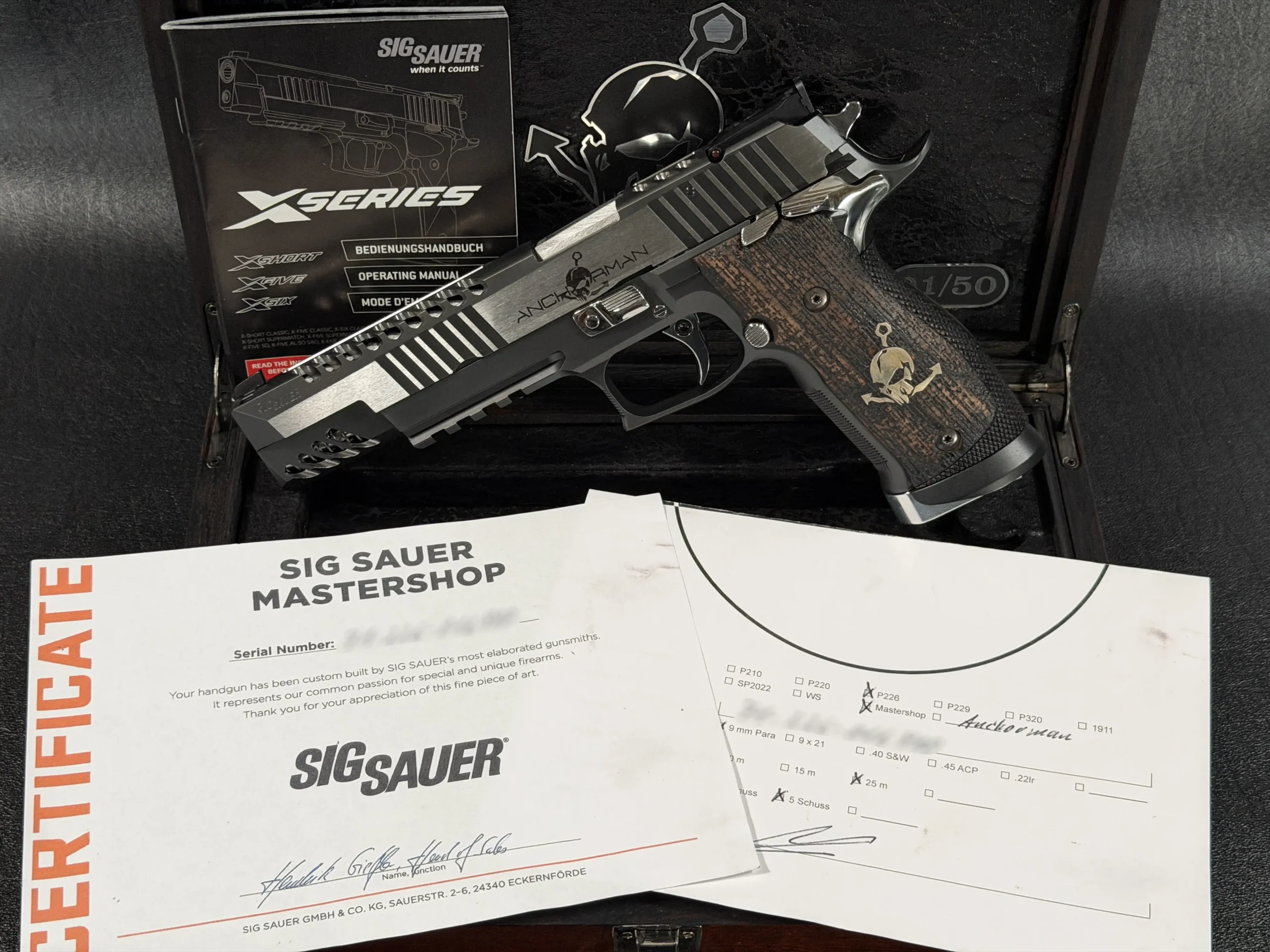 The SIG Sauer P226 X-Six Anchorman is a special-edition model built on the X-Six platform and chambered in 9mm. This example is marked as Number 1 of 50 in the series.