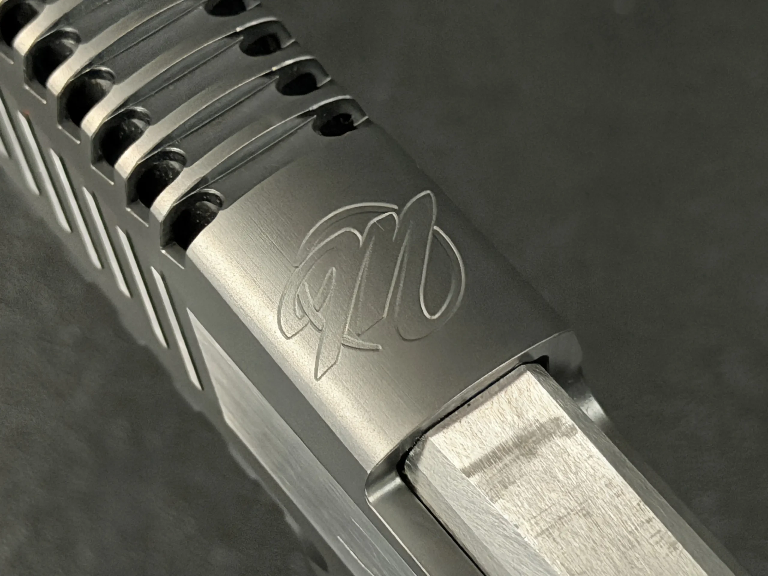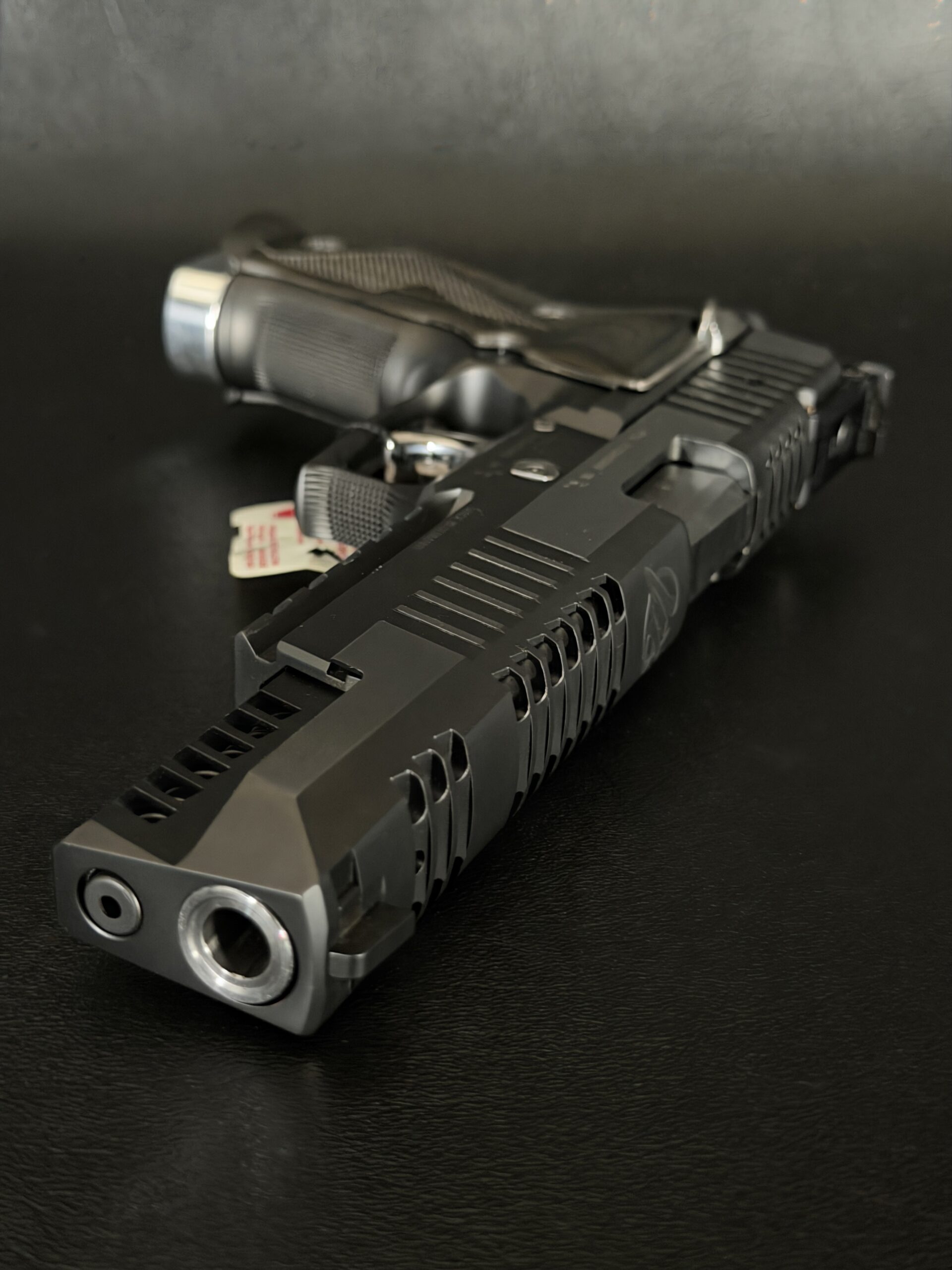 Lightening cuts and porting define the slide, giving it a layered, architectural look that sets this version apart. Forward and rear serrations offer added purchase, and the long slide is fitted to the frame with notably smooth movement.