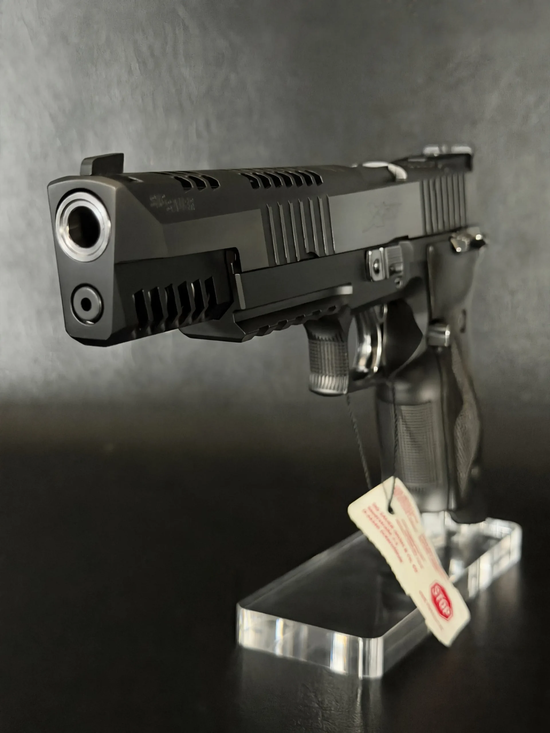 The frame is finished to complement the slide and is fitted with ergonomic controls and a polished trigger. The X-Series trigger system delivers a crisp break and refined reset, making the overall presentation as considered as the mechanical layout.