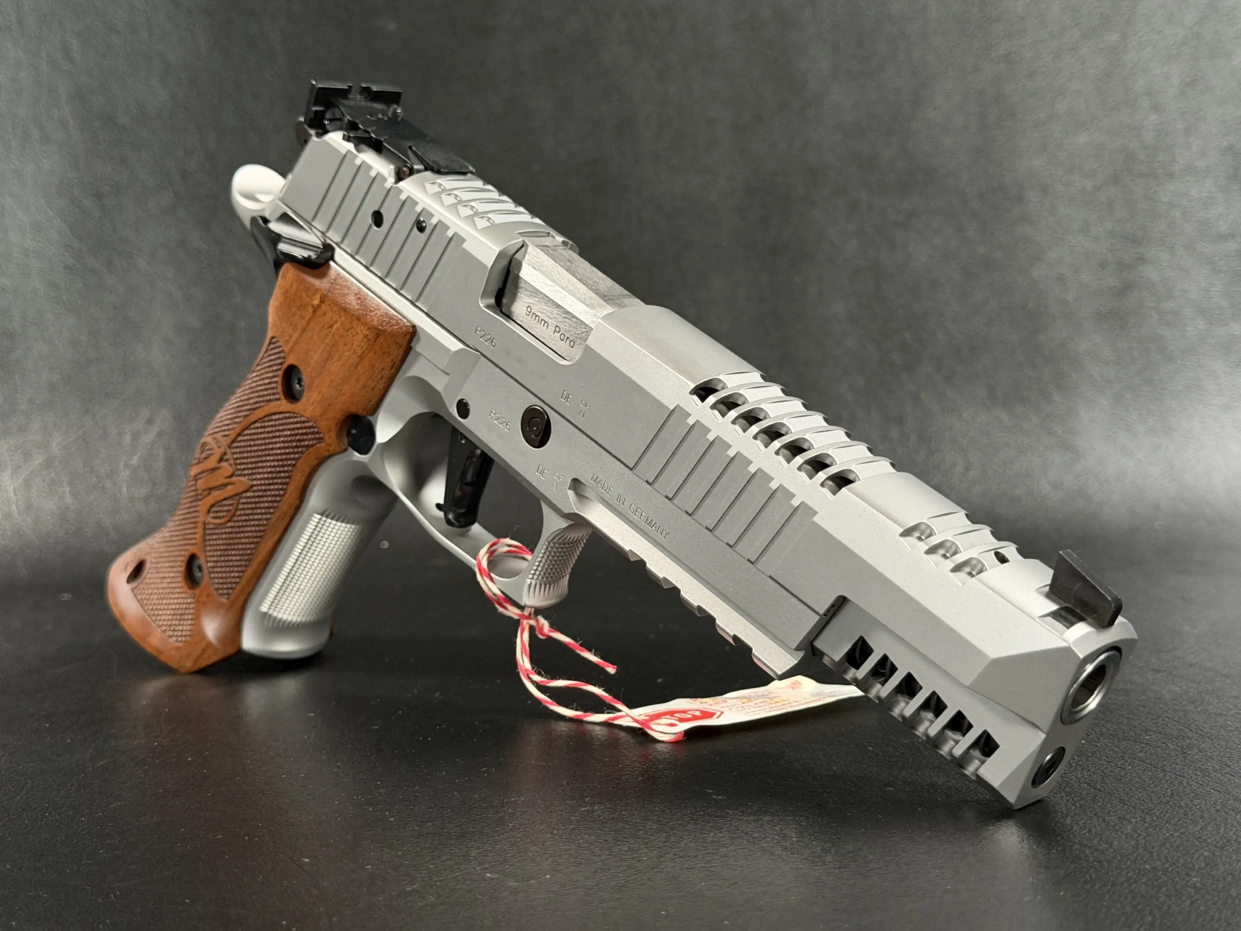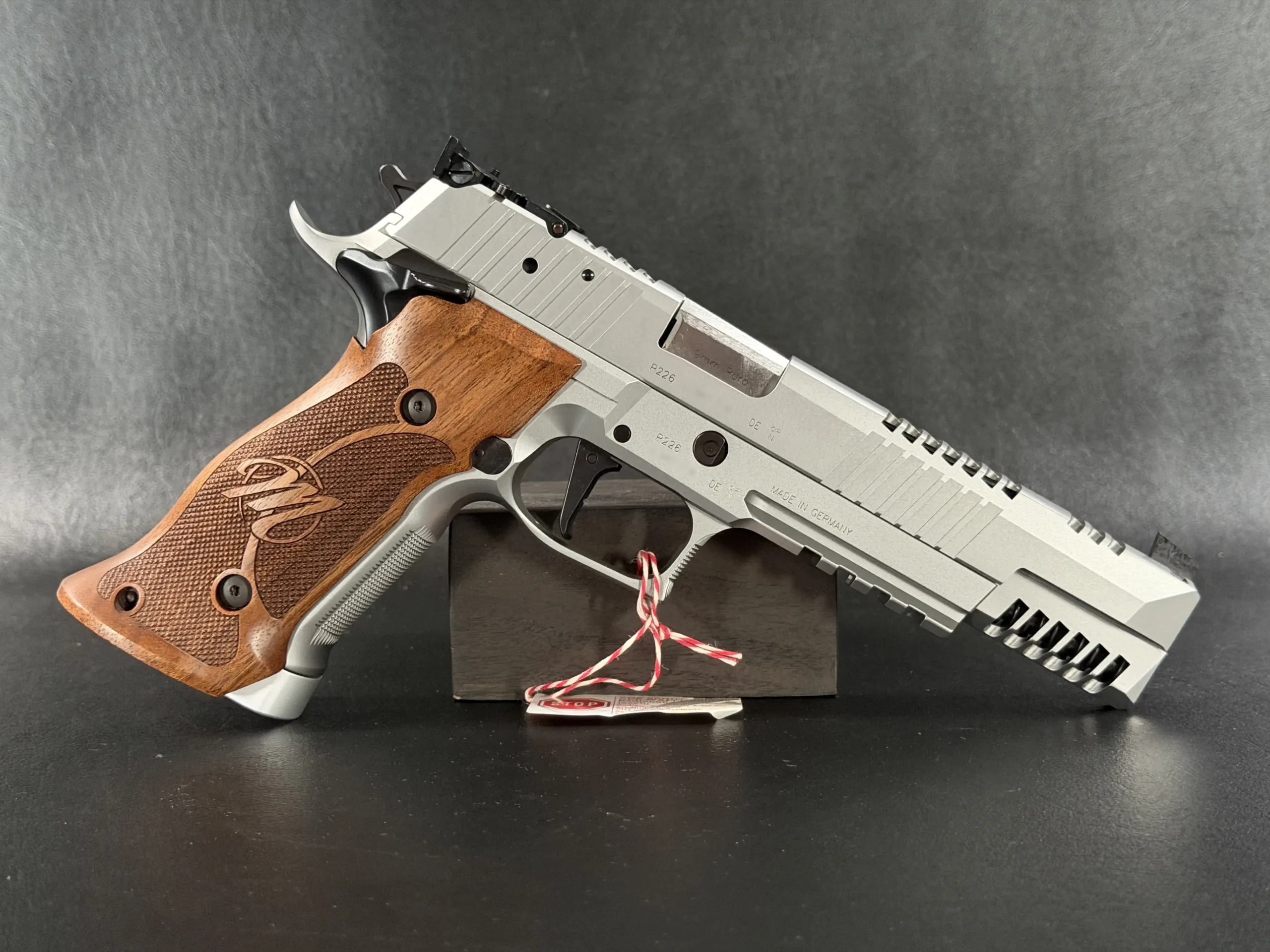 The SIG Sauer P226 X-Six PPC Skeleton is a German-made 9mm X-Series pistol designed around the PPC competition format. With its stainless steel construction, Skeleton lightening cuts, adjustable rear sight, and ergonomic wood grips, it offers a refined target-focused configuration with distinctive visual appeal.
