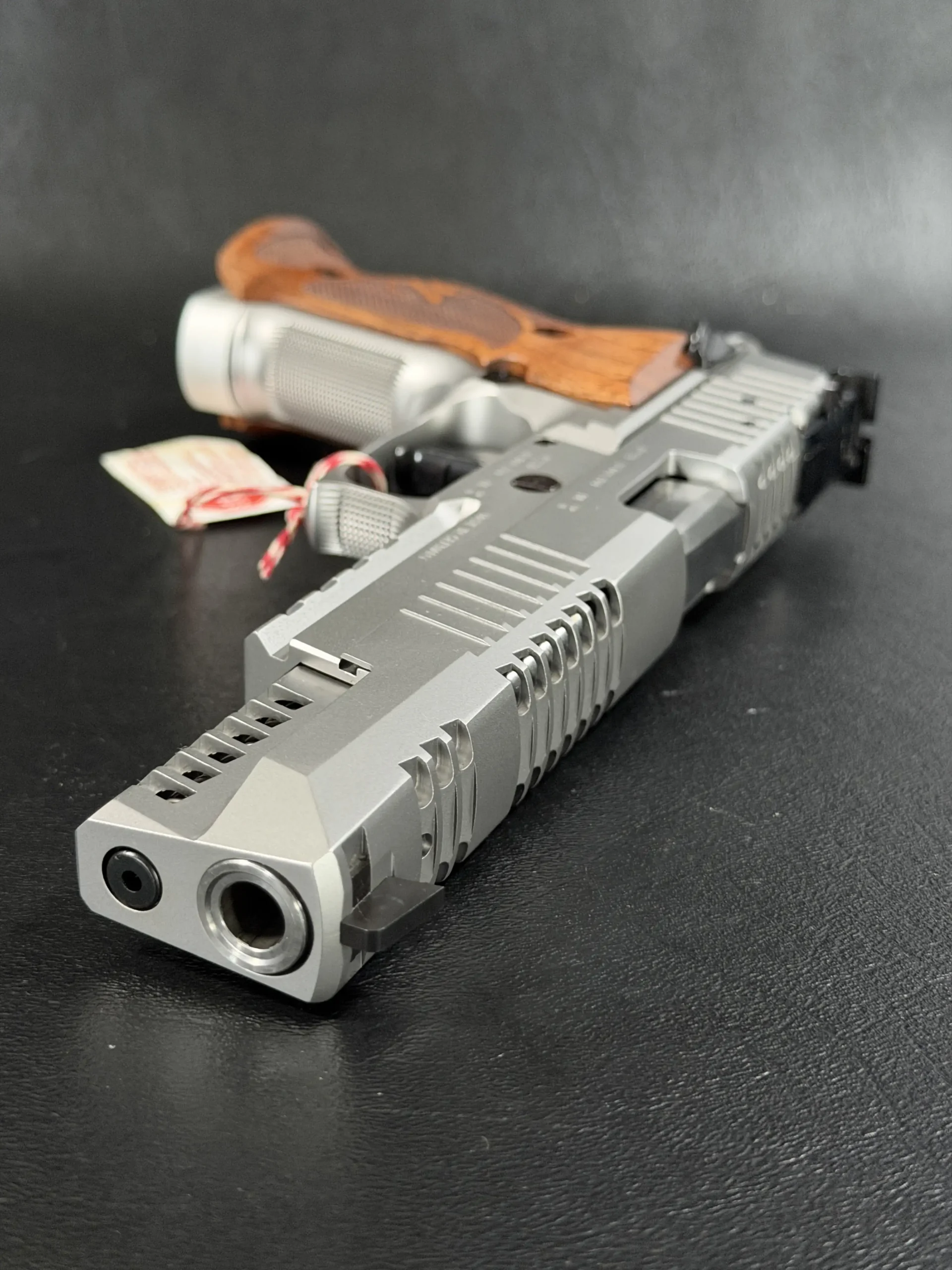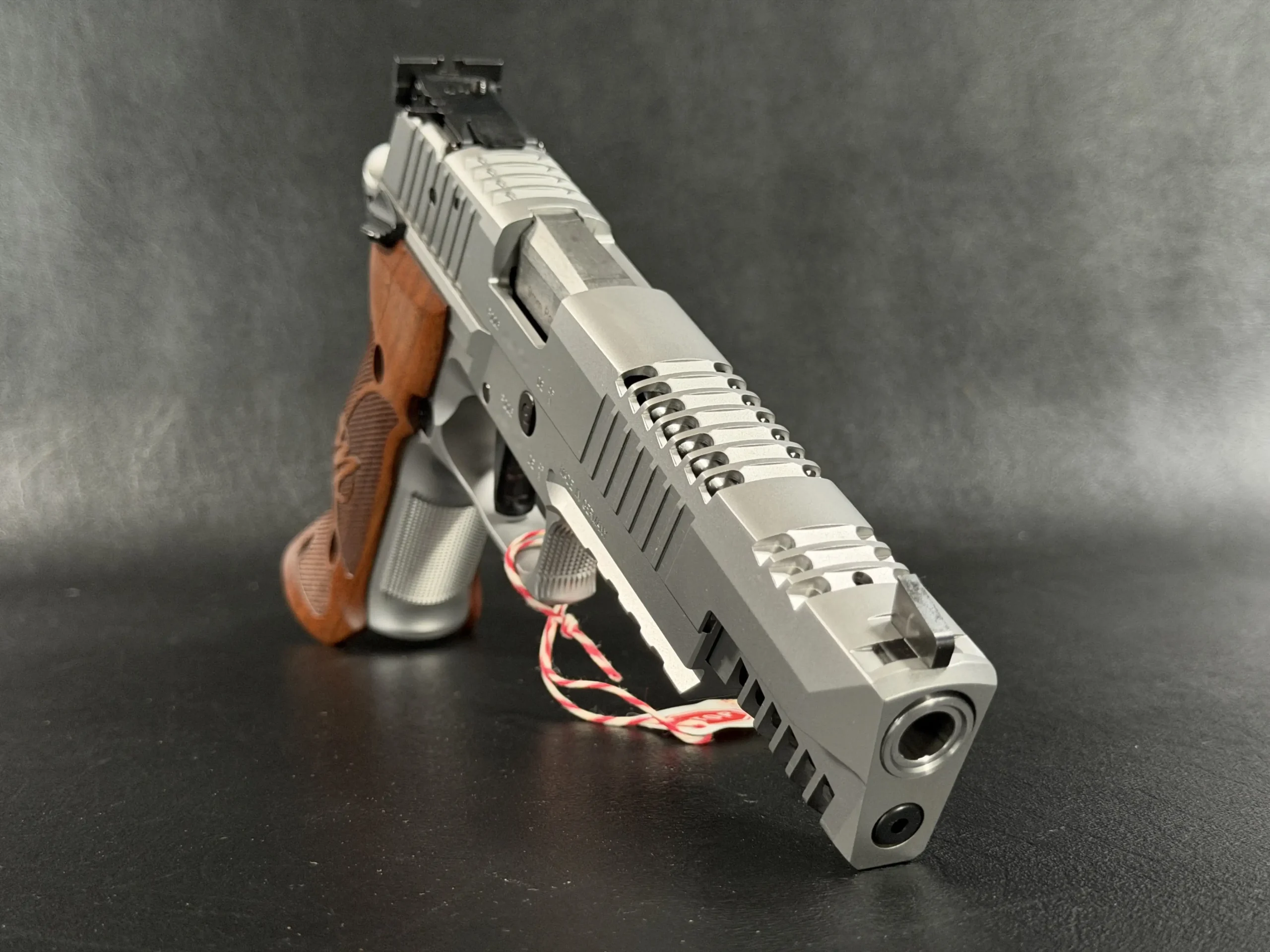 Precision lightening cuts help reduce forward weight while preserving balance and controllability. A long, heavy barrel profile, extended sight radius, and fully adjustable rear sight support careful setup and consistent target work.