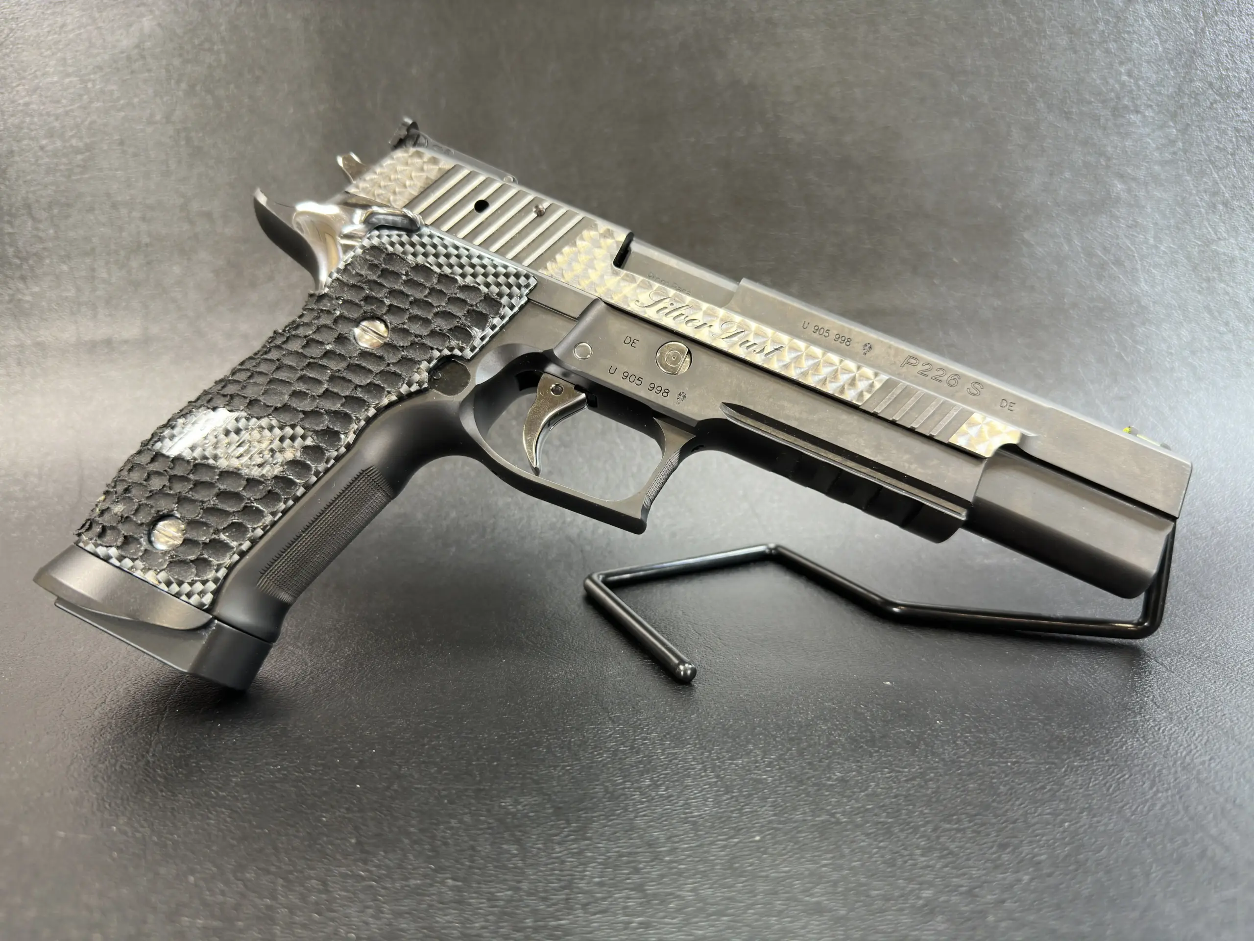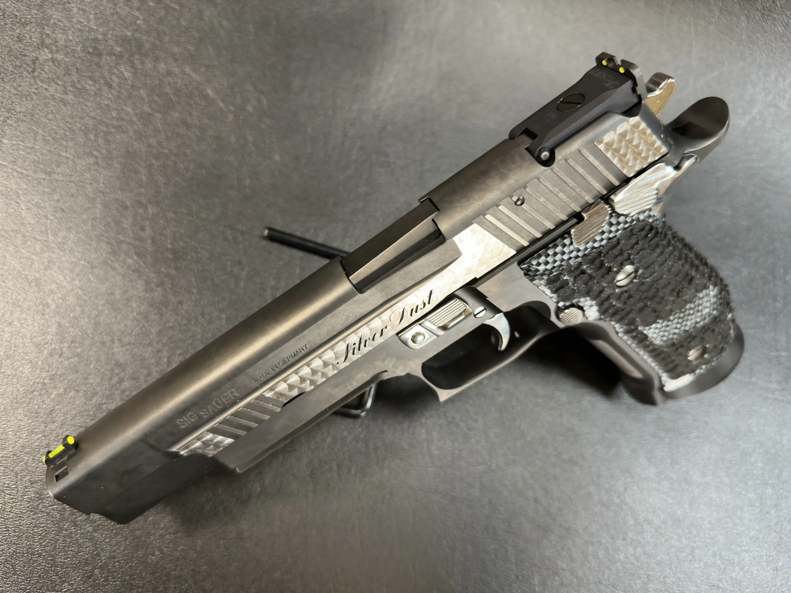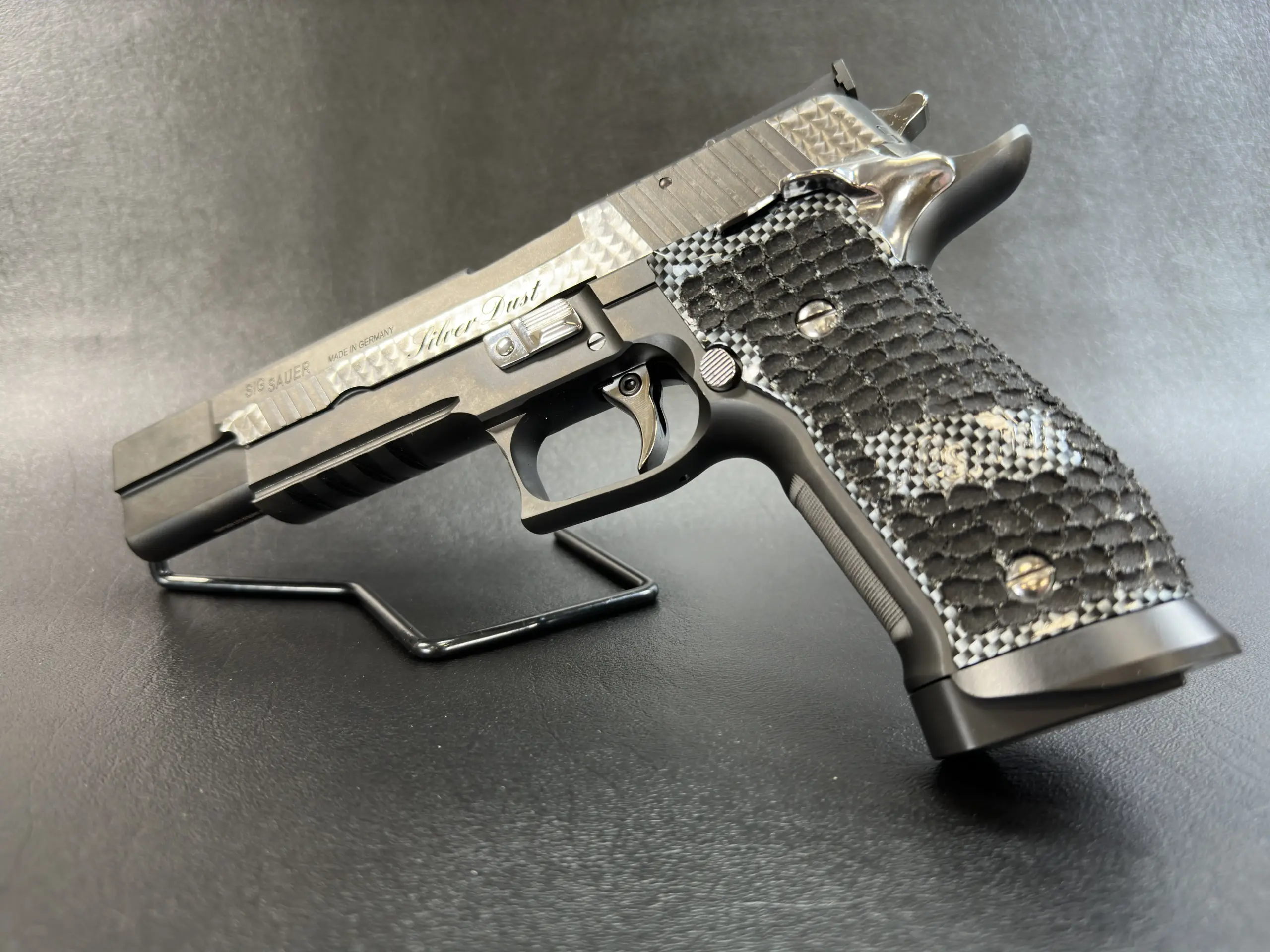 The Sig Sauer P226 X-Six Silver Dust Generation 1 is a SIG Sauer Mastershop pistol that pairs distinctive styling with a competition-oriented configuration. Finished in Silver Dust, it has a refined, eye-catching look that sets this model apart.