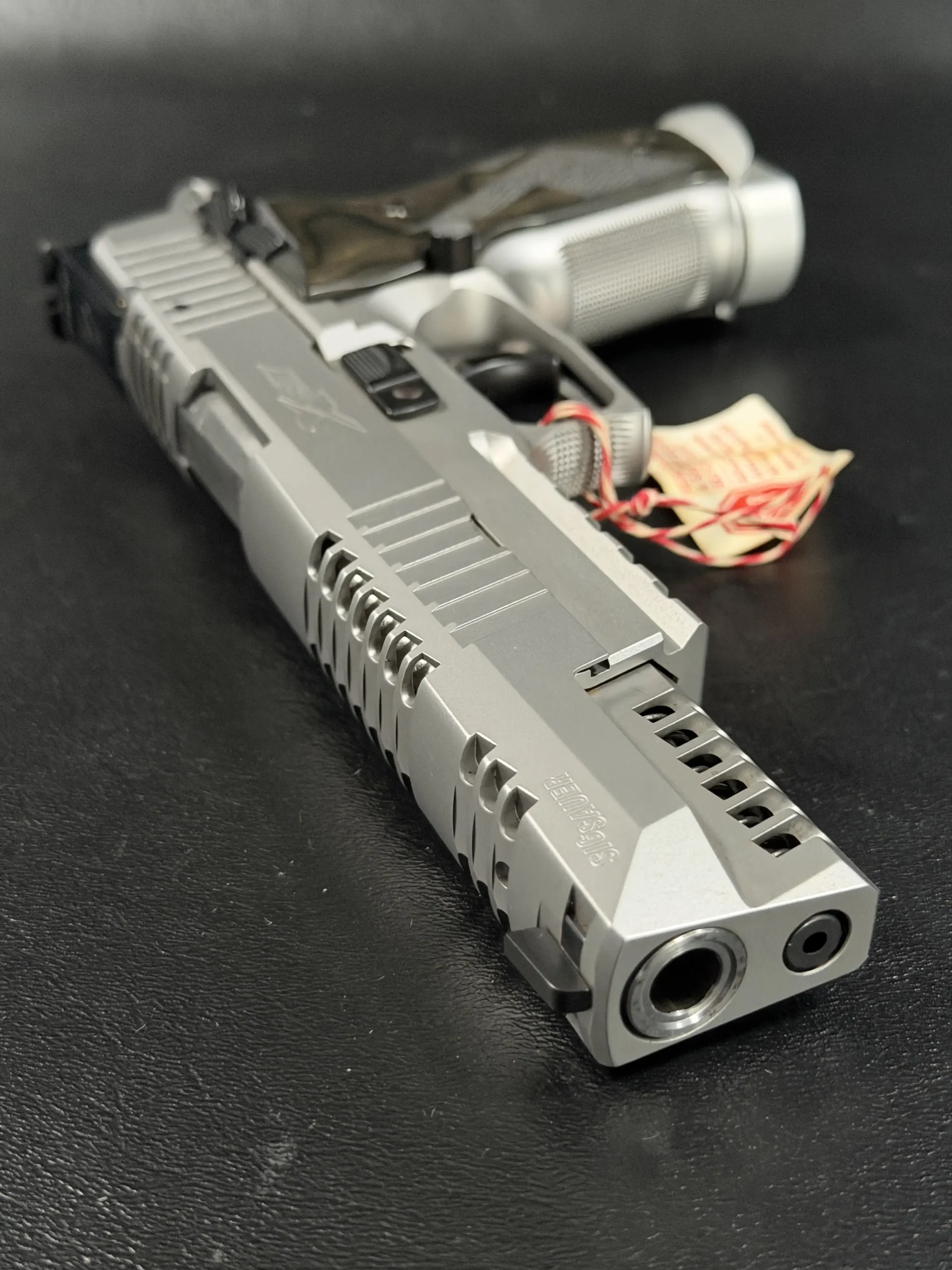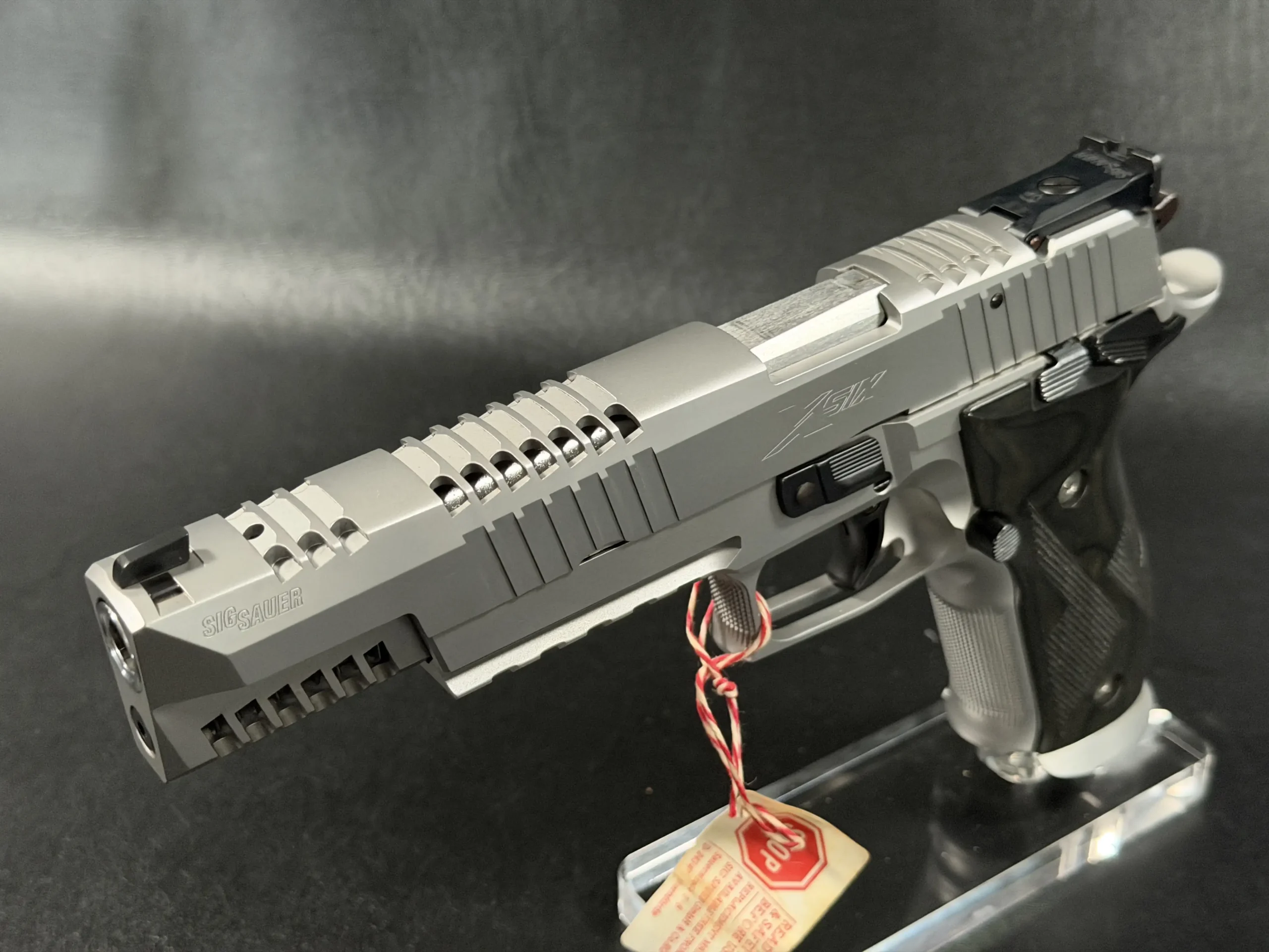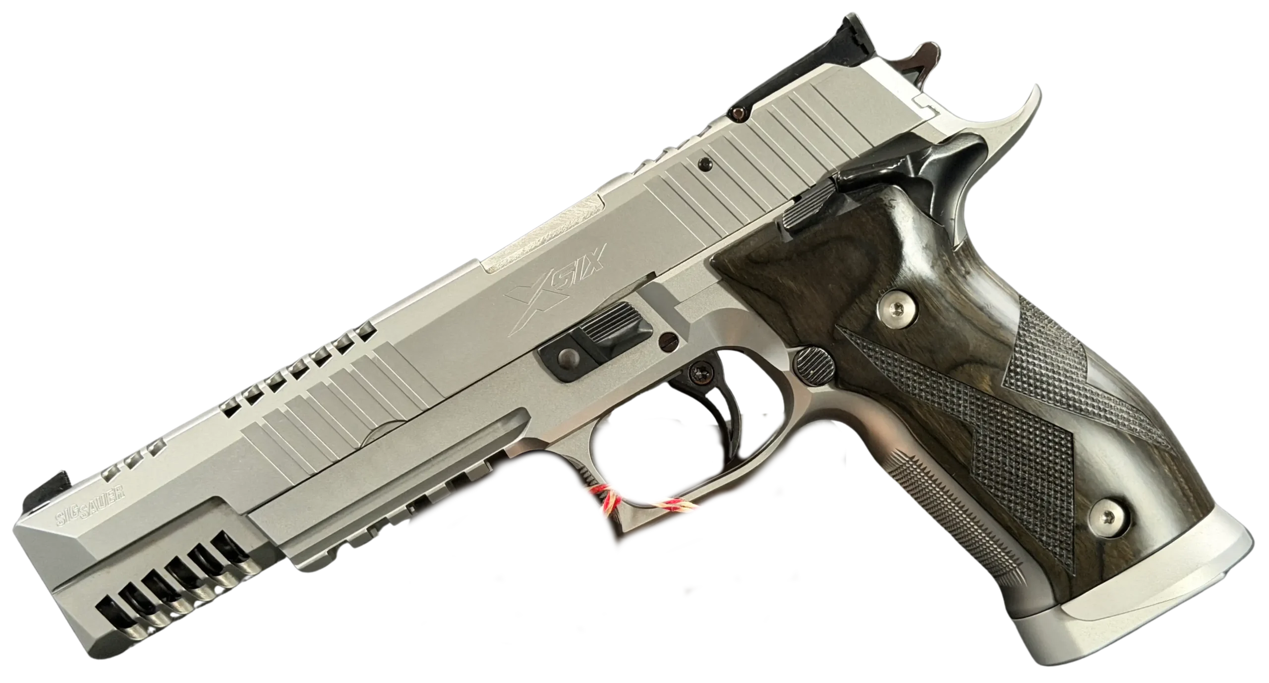 The SIG Sauer P226 X-Six Skeleton is a German Mastershop pistol that brings together precision manufacturing, competition-inspired design, and distinctive visual detail. This X-Six variant is immediately recognizable for its skeletonized slide treatment and long-slide profile, giving it a purposeful look with finely executed machining throughout.
