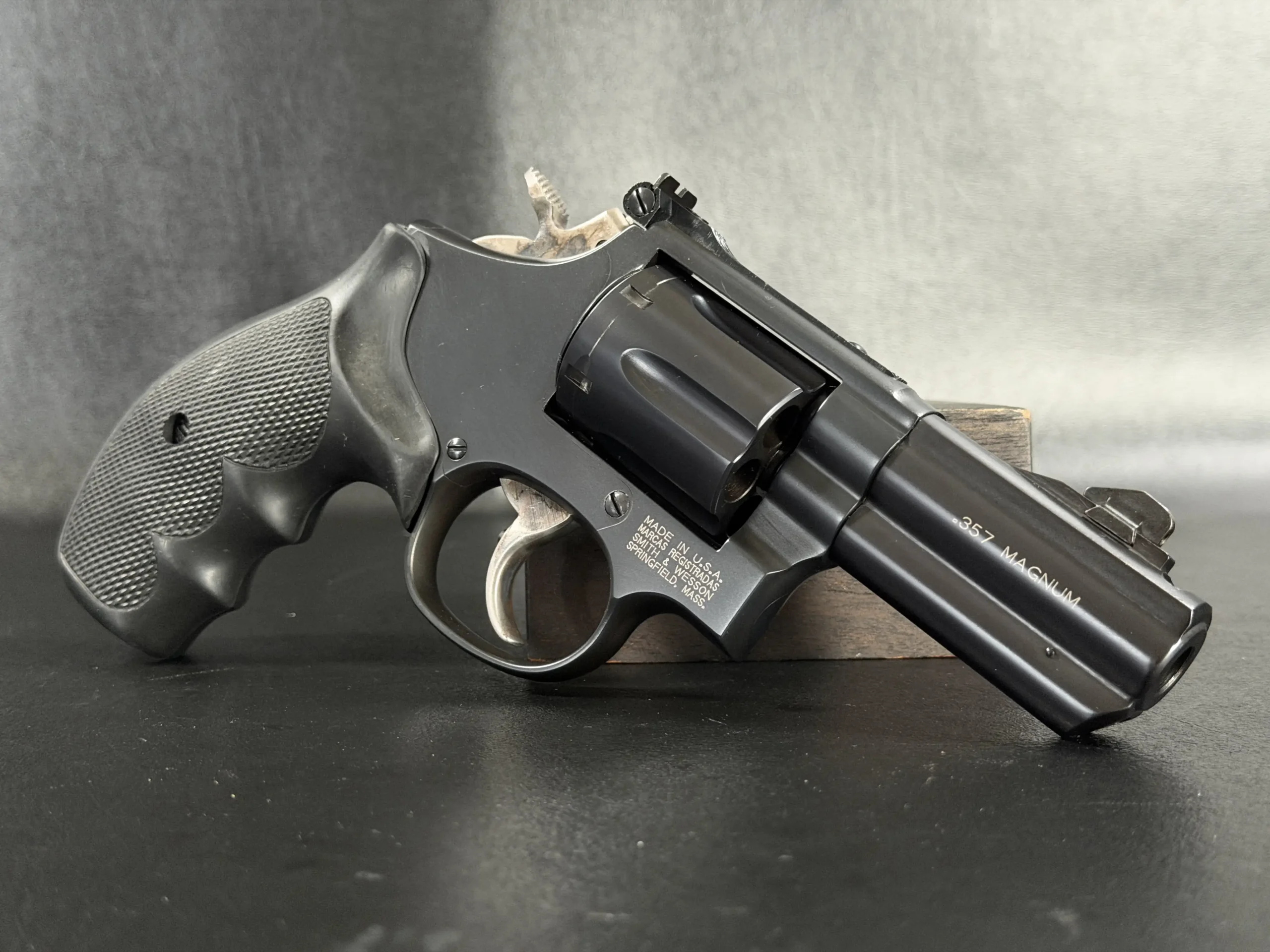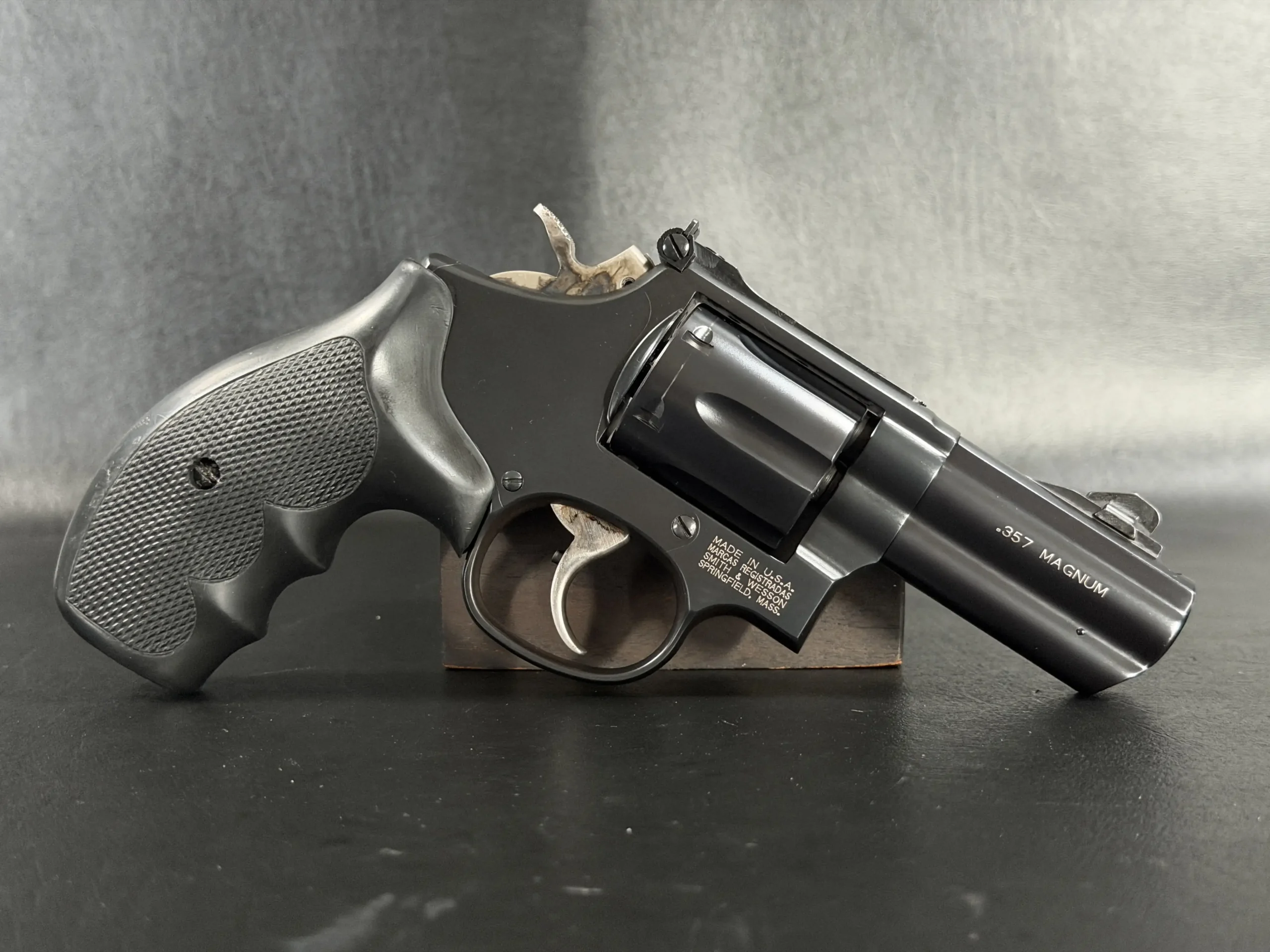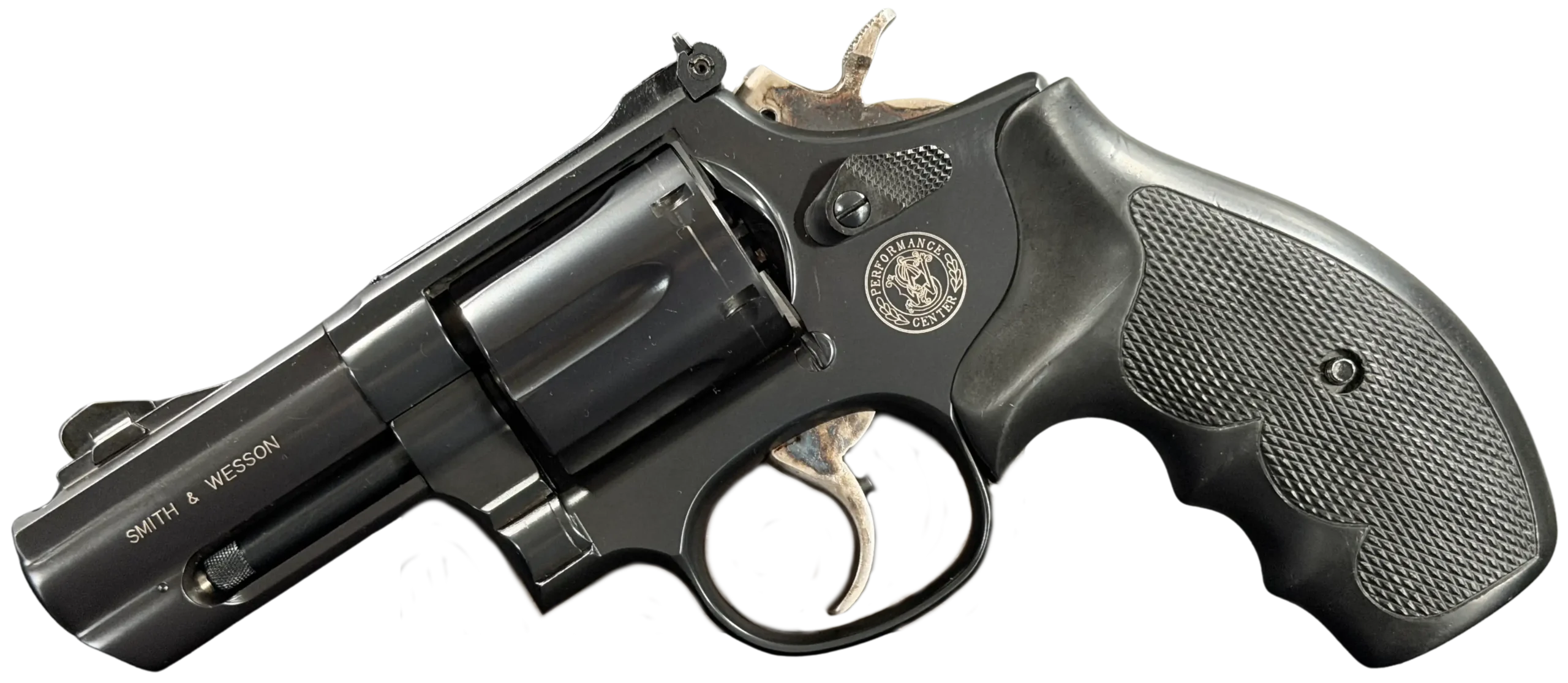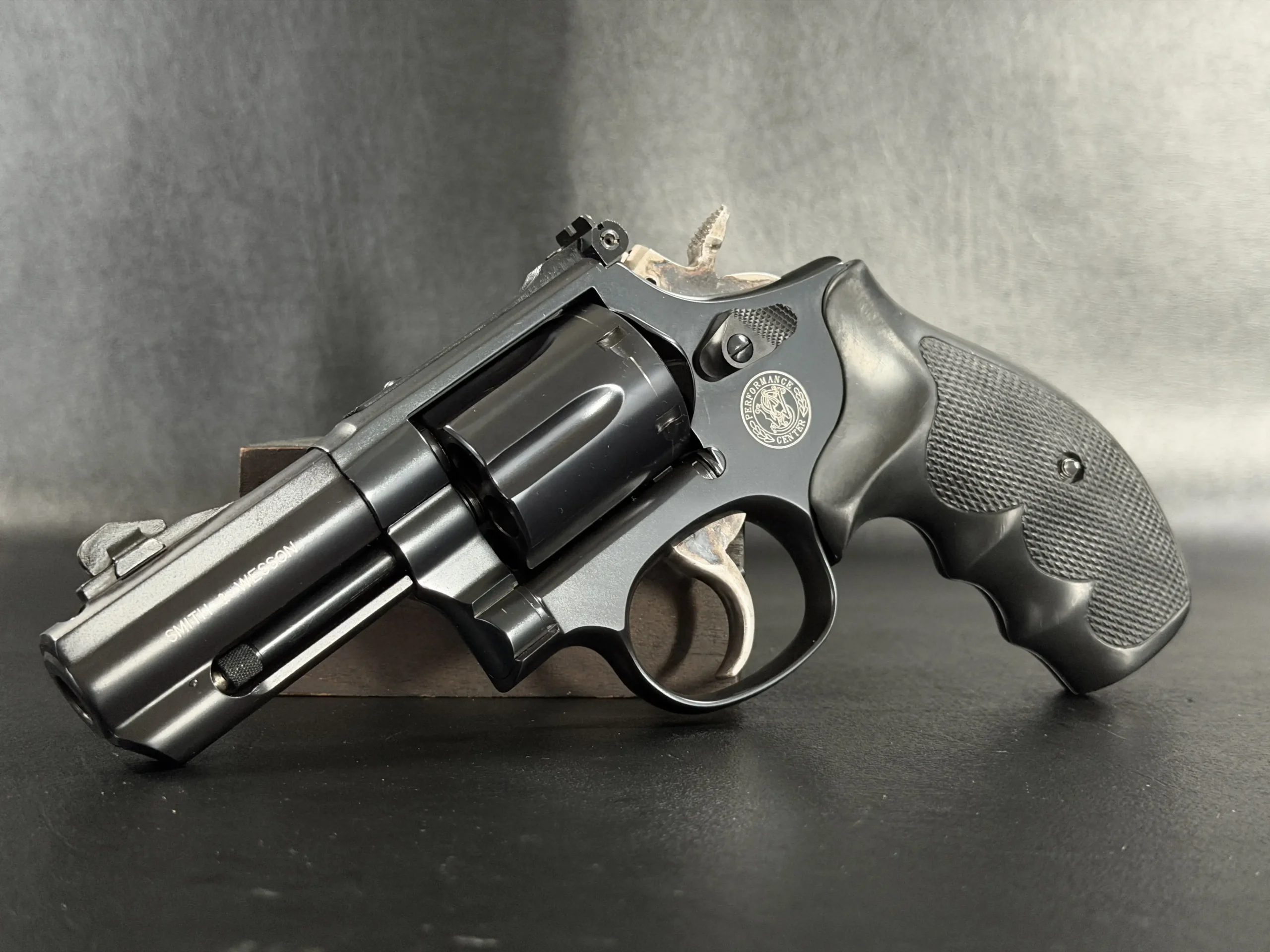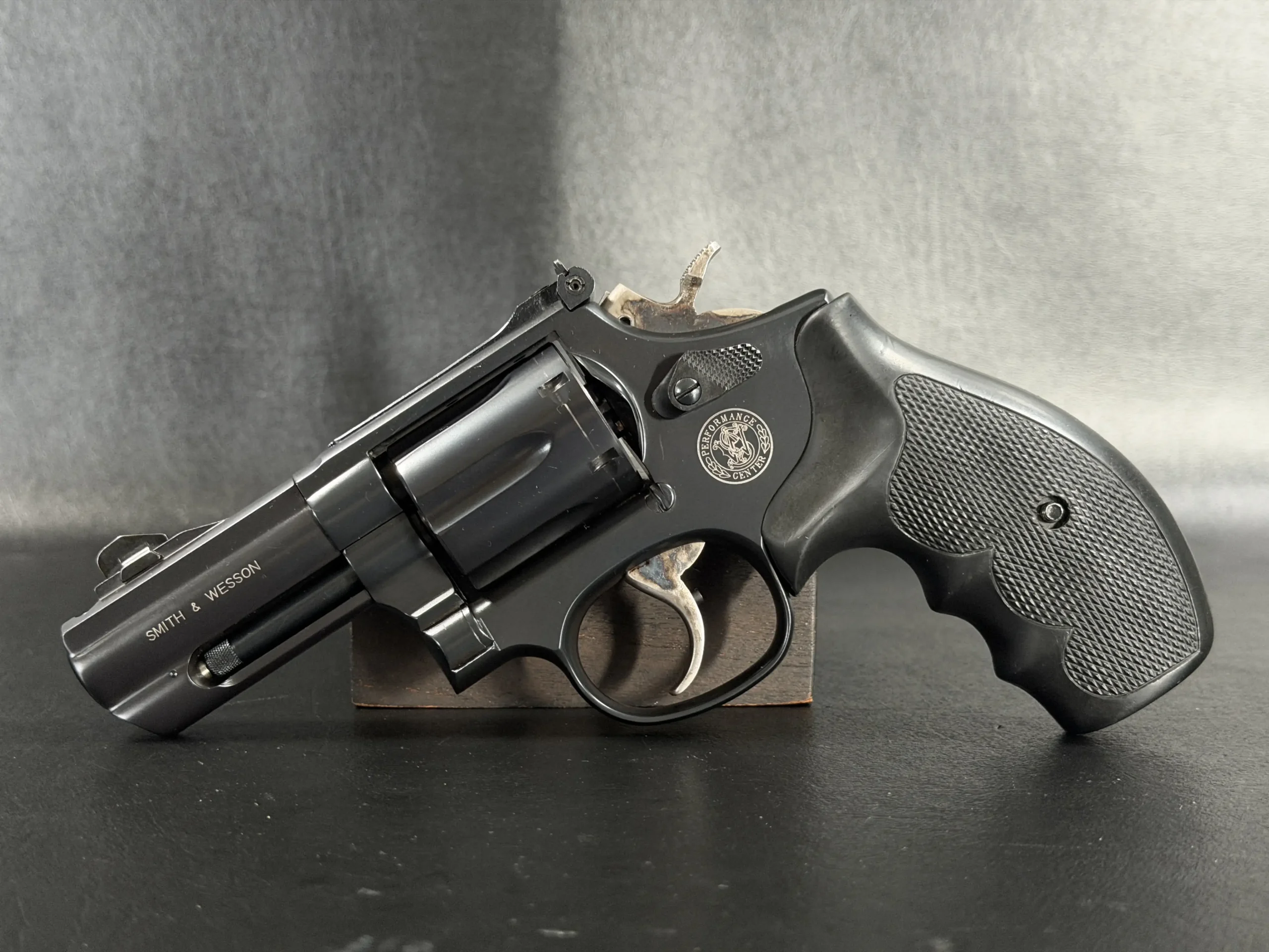 Produced by the Smith & Wesson Performance Center, it reflects the specialized fit and finish associated with that line. The barrel is marked “.357 Magnum,” and the revolver retains the balanced handling that helped define the Model 19 series.