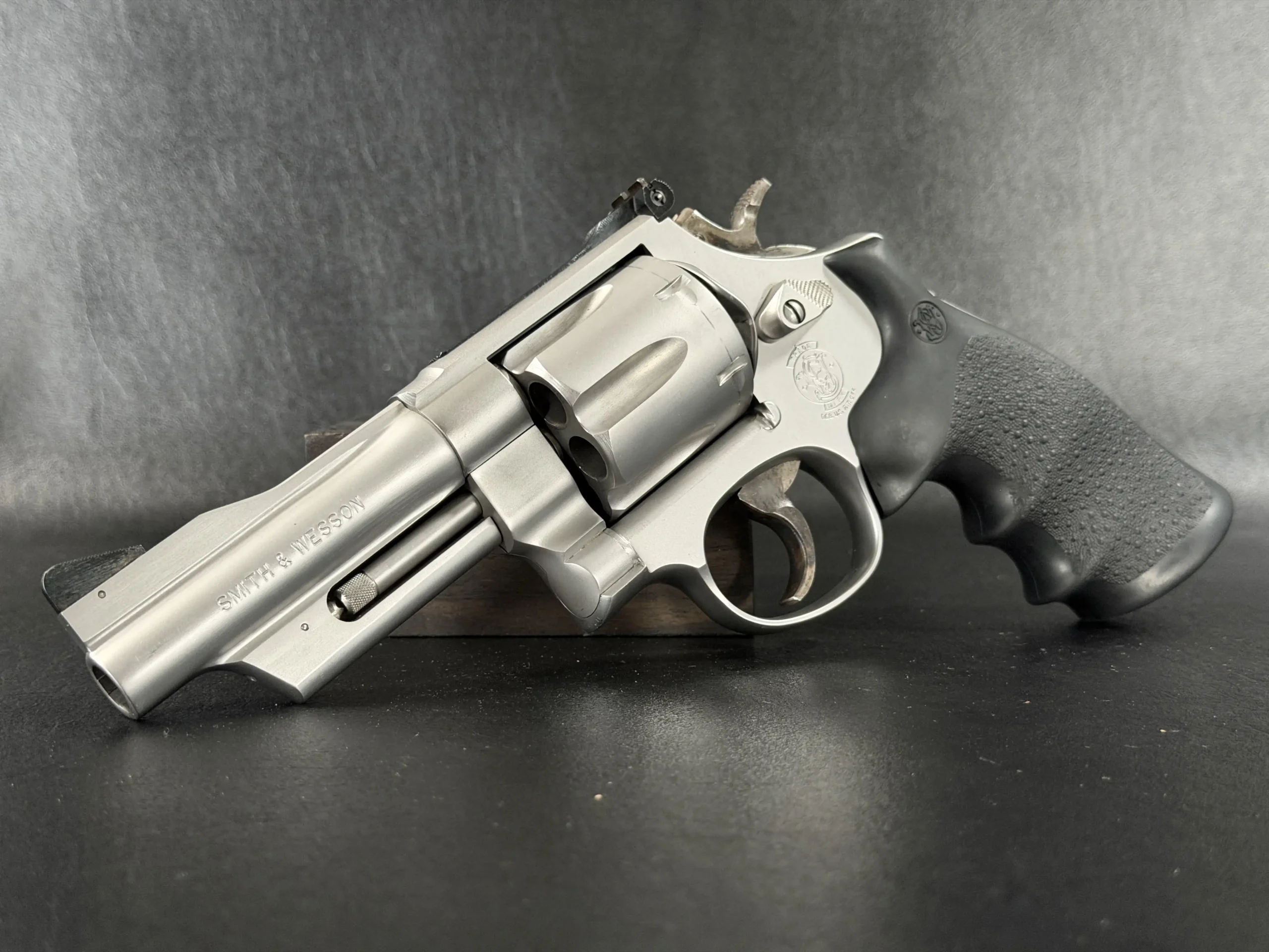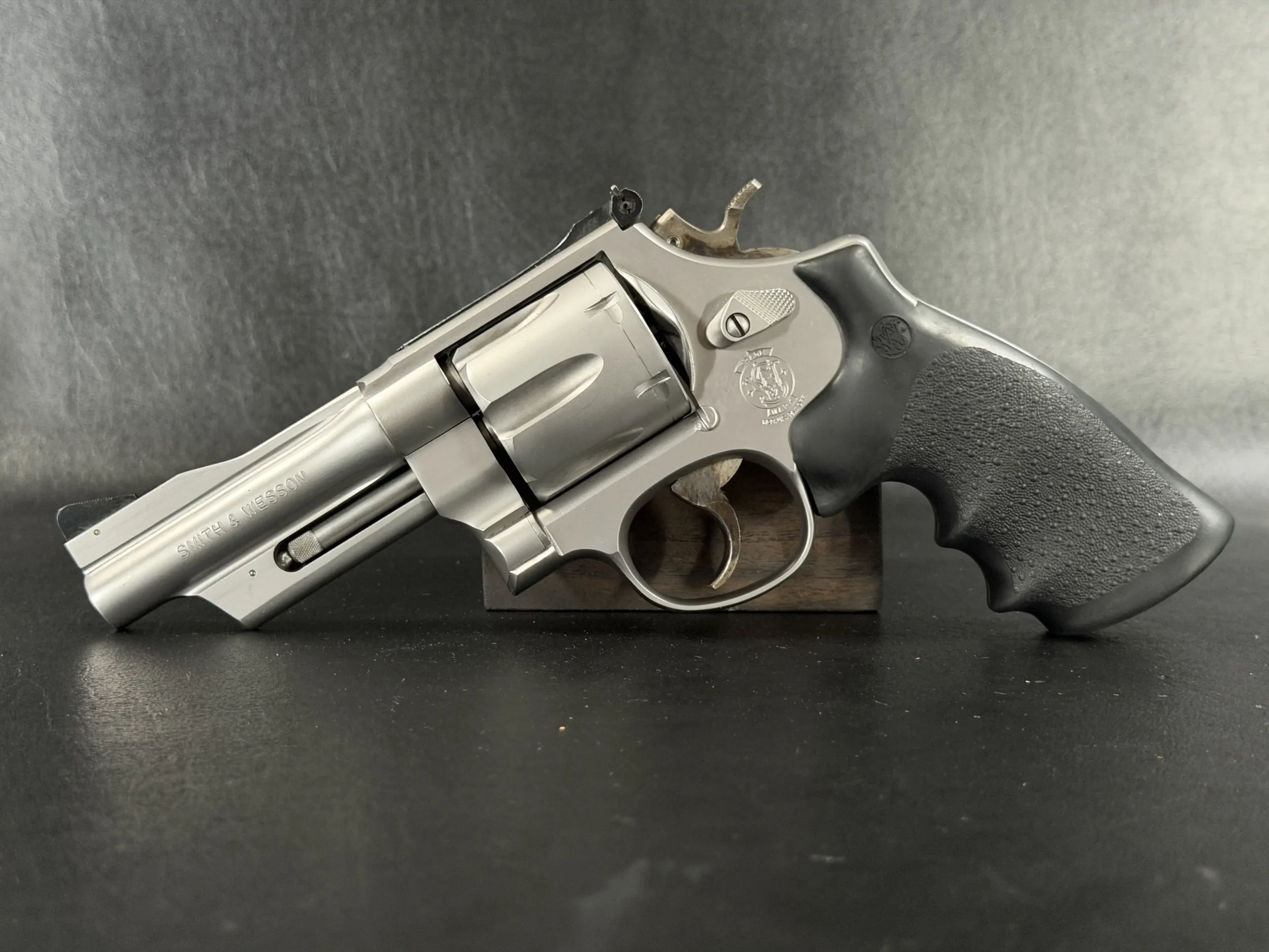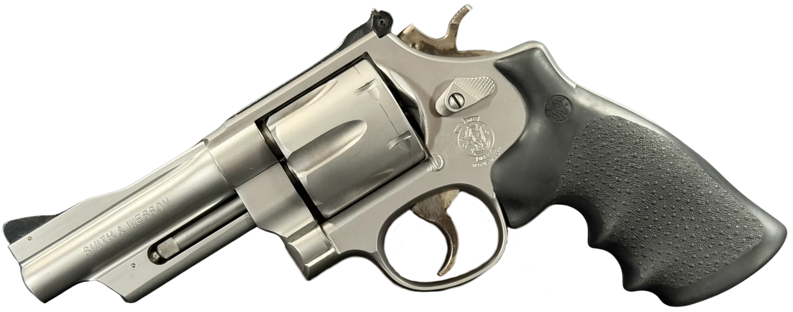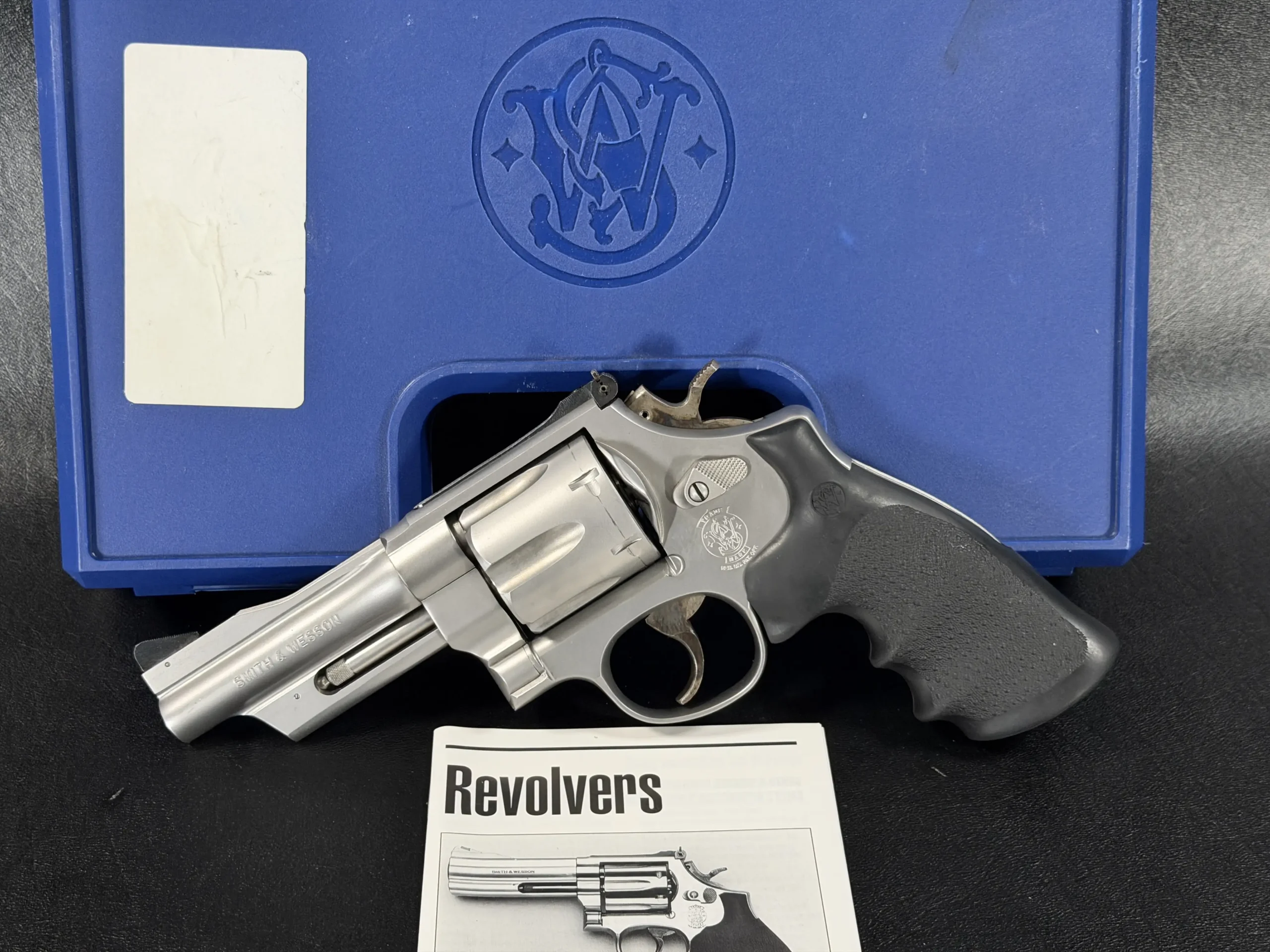 Chambered in .44 Magnum and built on Smith & Wesson’s large N-frame, this revolver features a 4-inch barrel, satin stainless steel finish, and full underlug. The fluted cylinder, clean barrel profile, and substantial frame give it the classic look and feel associated with the Model 629 line.