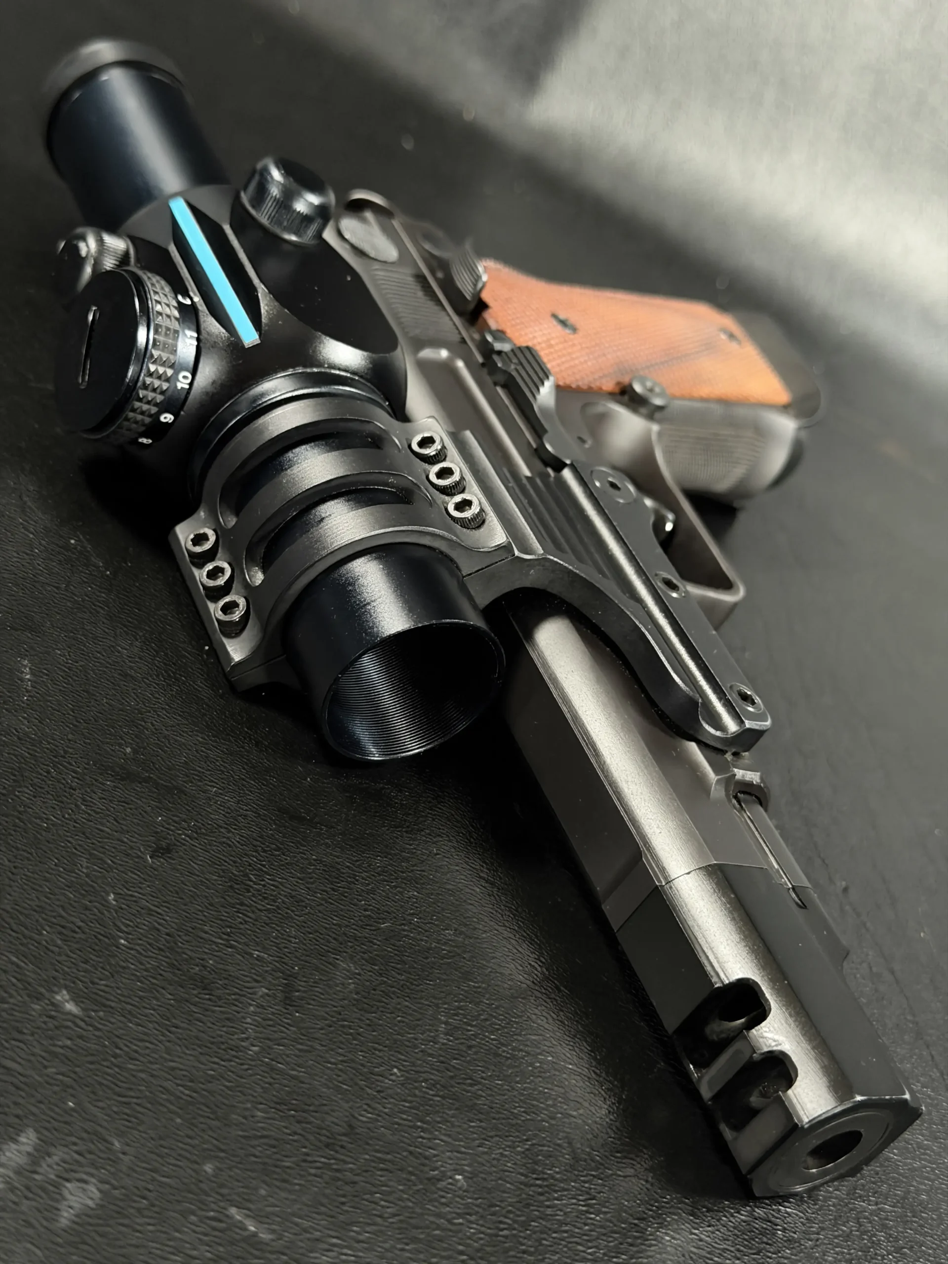 The Smith & Wesson Prototype PC Model 356TSW reflects the company’s early 1990s effort to develop a competition-focused pistol for IPSC shooting. Developed in 1992 by Smith & Wesson’s Pistol Team in collaboration with the Performance Center, the platform was built around the .356 TSW cartridge, a purpose-designed round created to meet IPSC major power factor requirements while retaining the advantages of a high-capacity format.