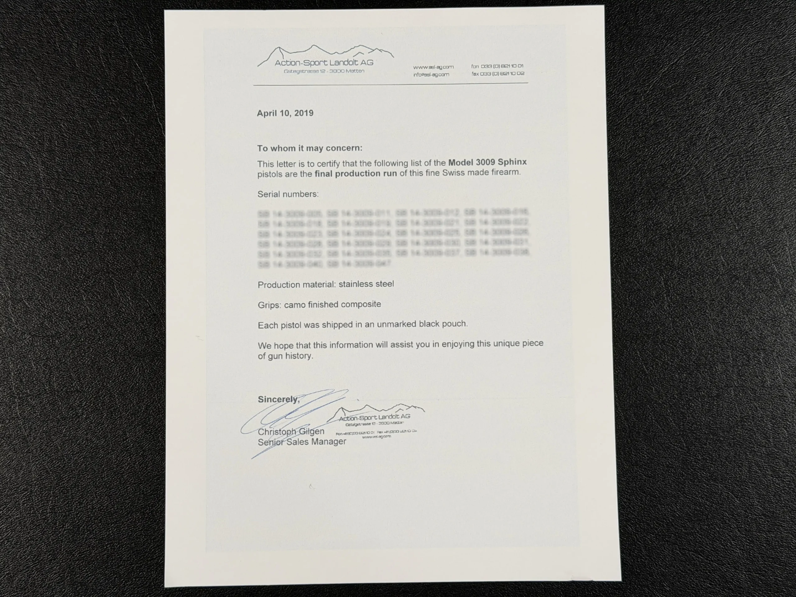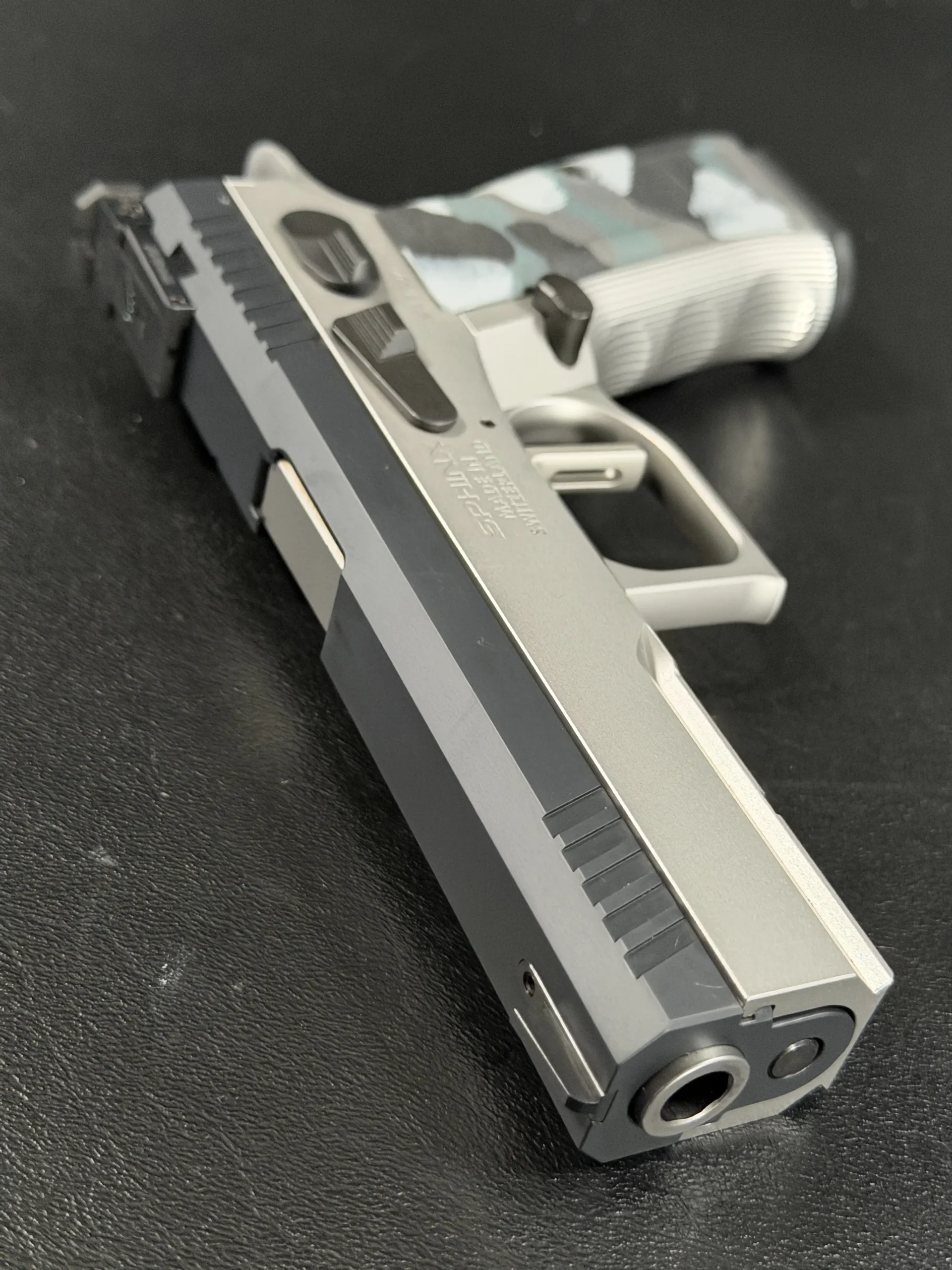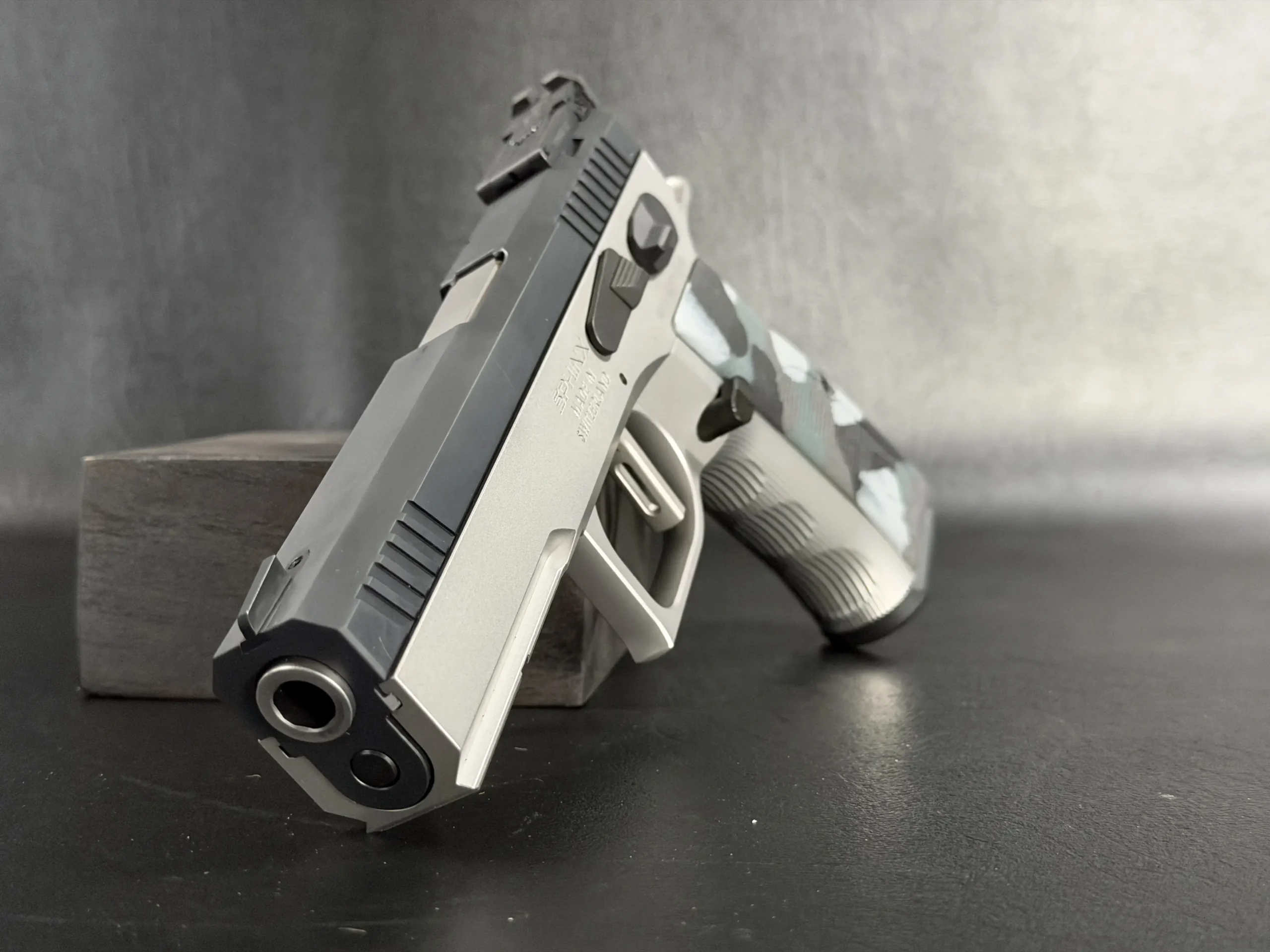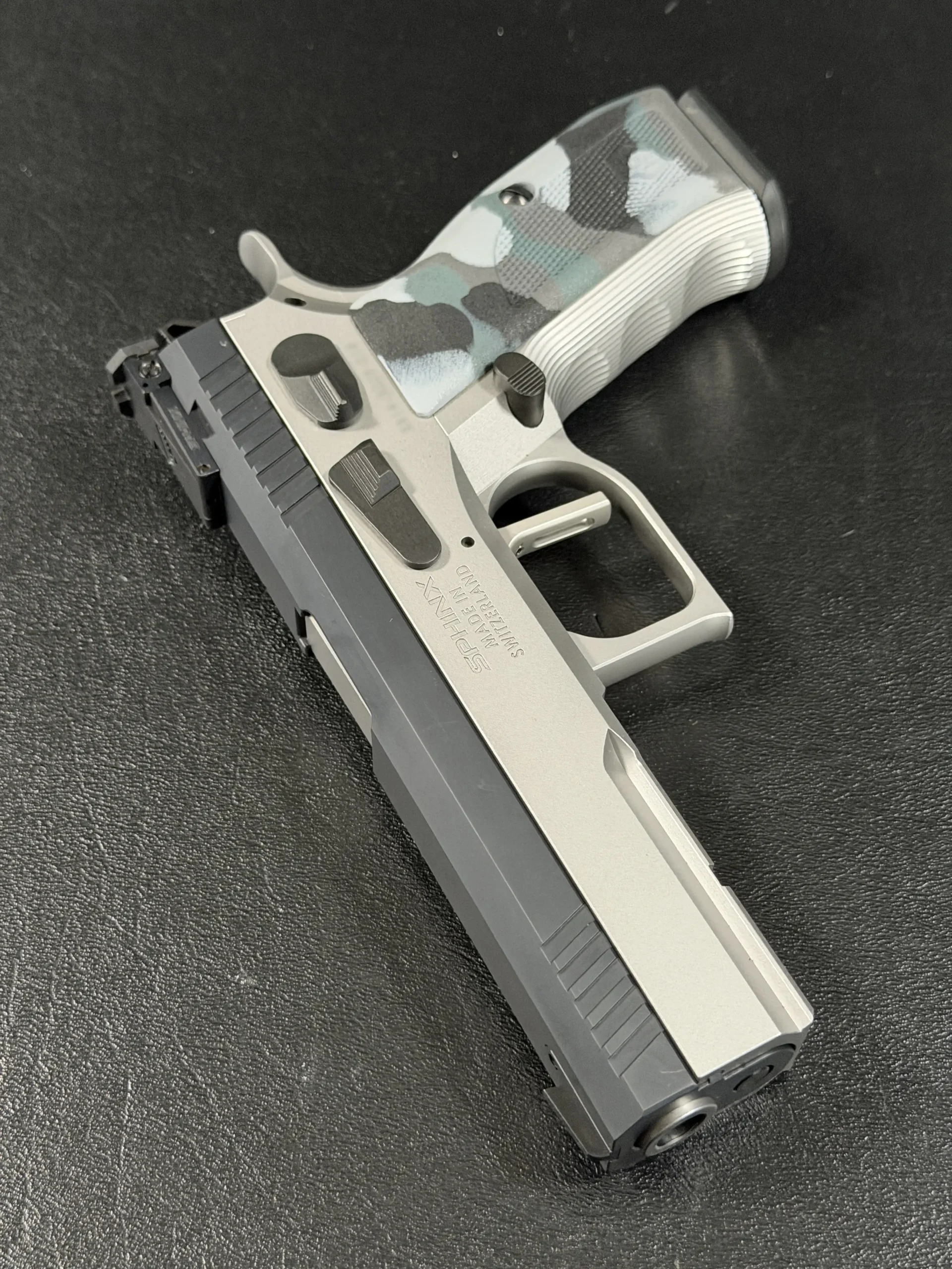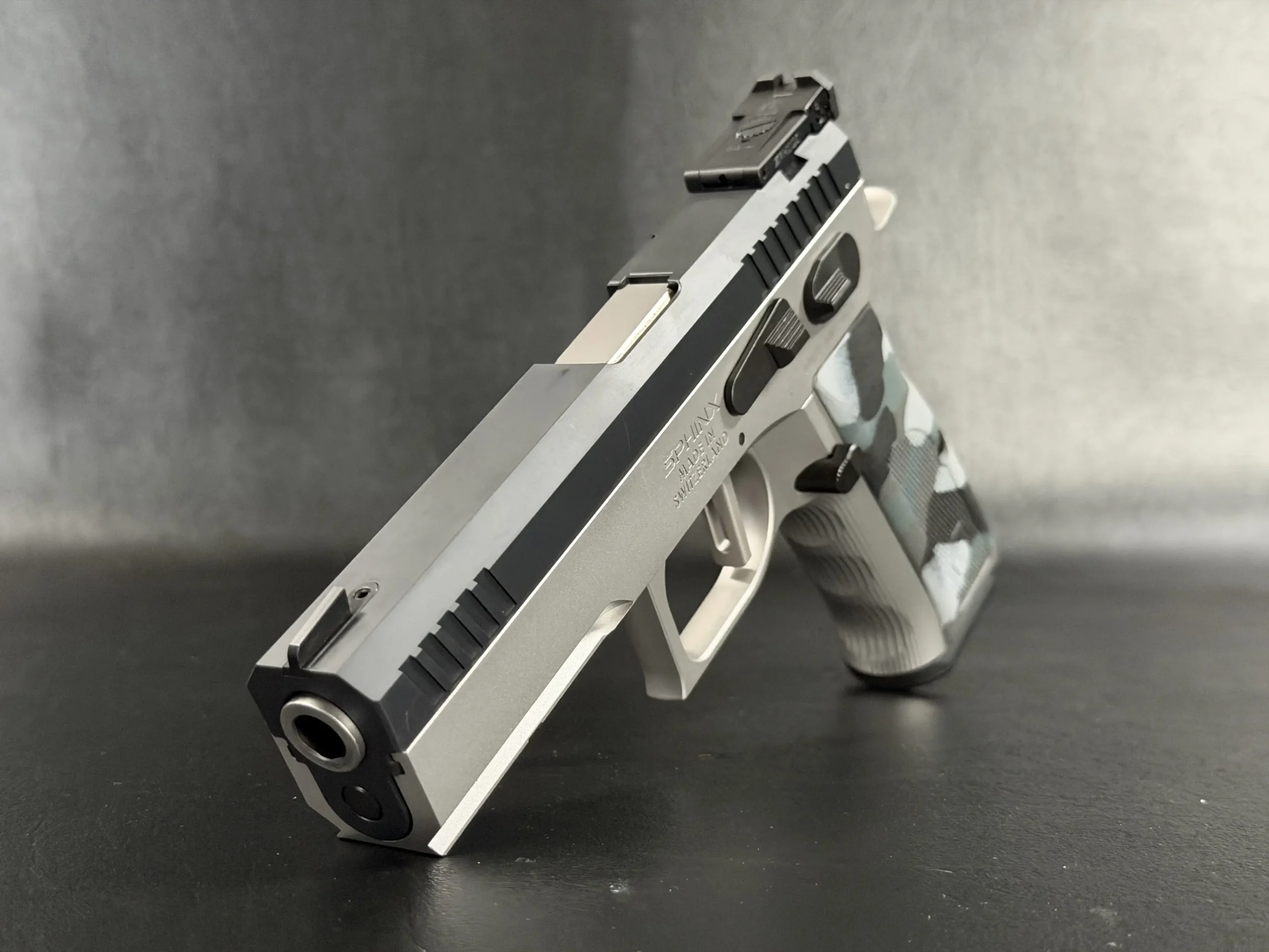 The Sphinx Model 3009 is a Swiss-made pistol from the final production run of the Sphinx factory. Built from stainless steel, it reflects the precise machining and careful fitment associated with the model.