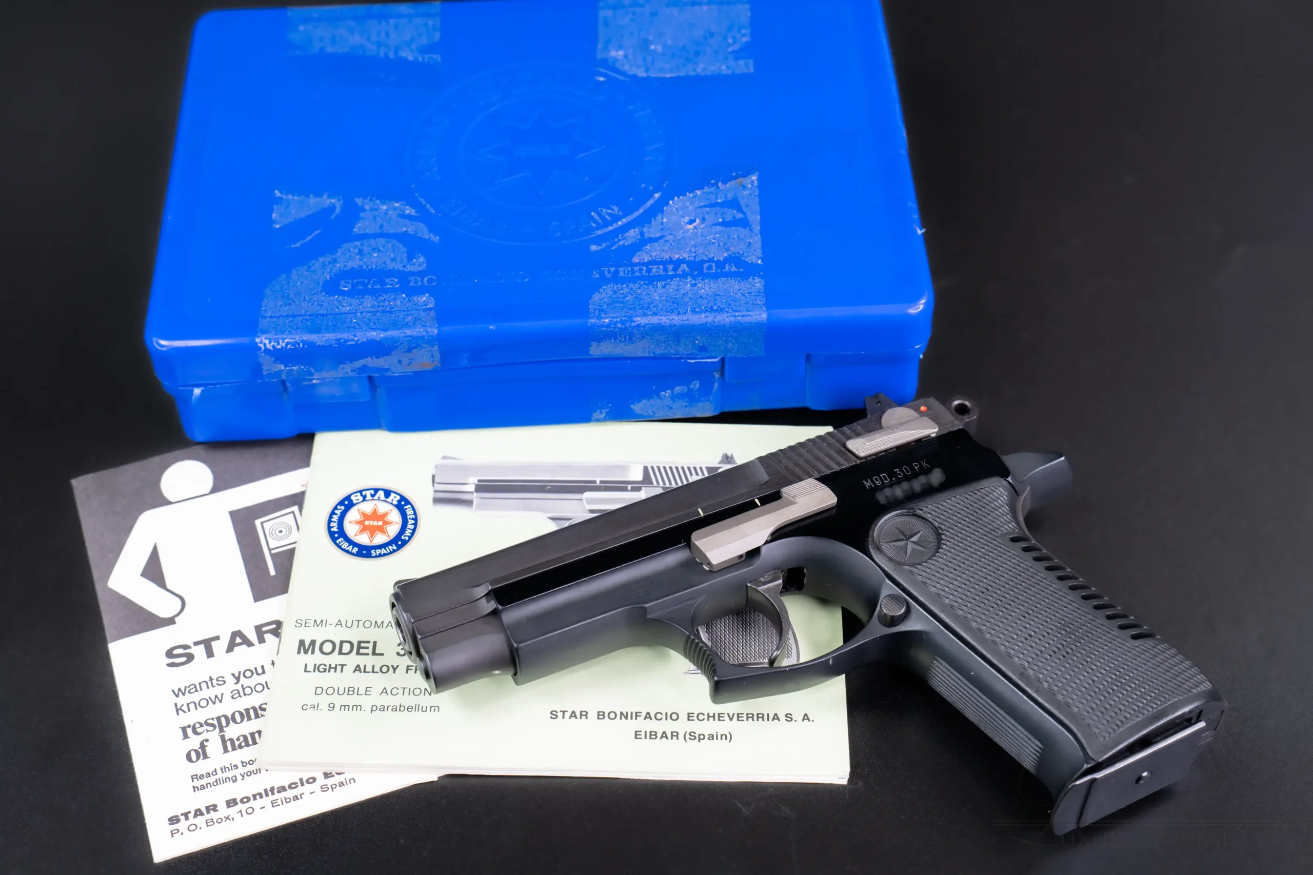 Included with the pistol are its original blue Star factory case and documentation, adding to the completeness of the package. A similar Star Bonifacio 30PK was featured on Forgotten Weapons.