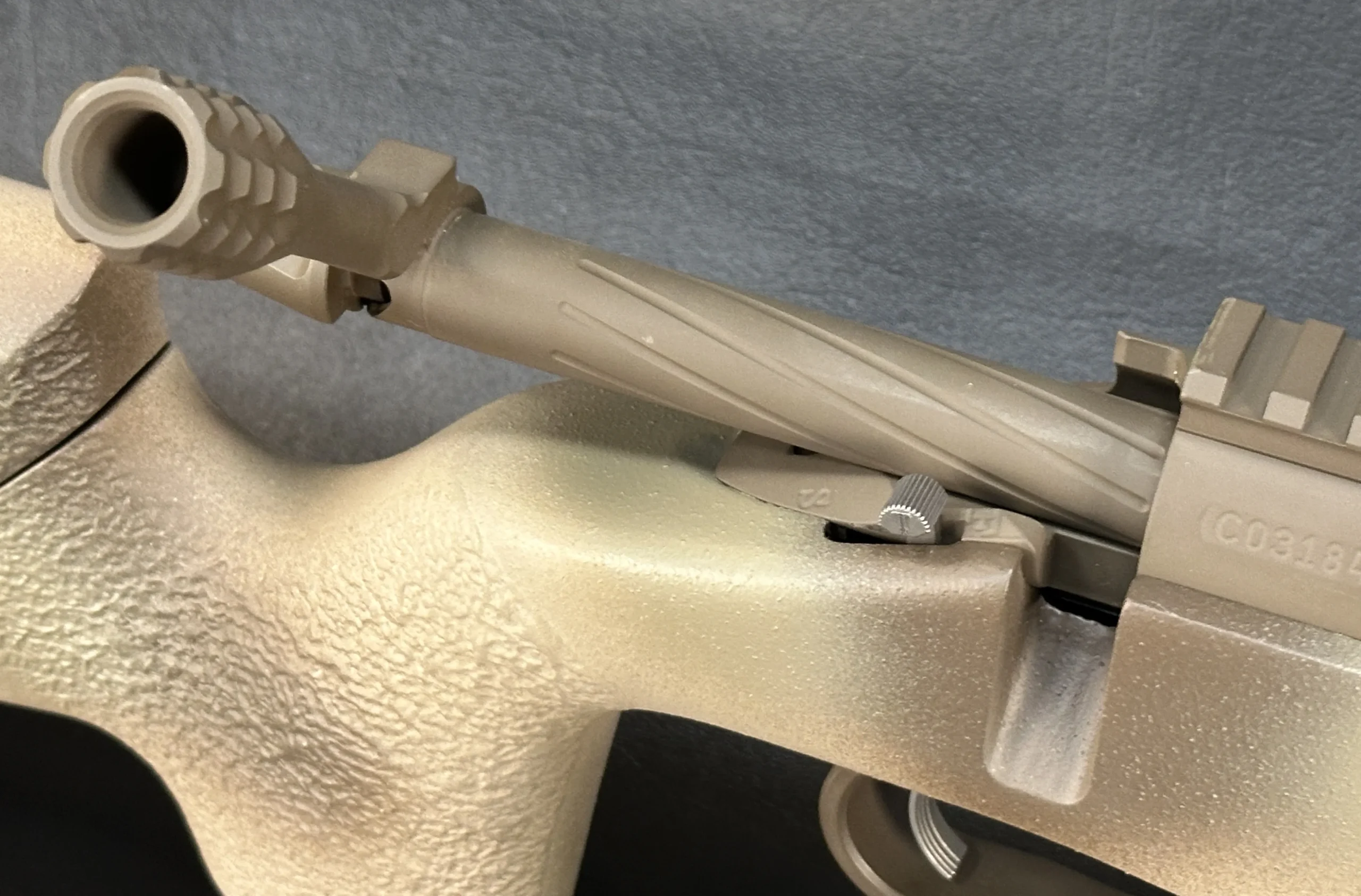 The Surgeon Custom Scalpel SA 591 Precision Rifle in 6mm Creedmoor is a purpose-built bolt-action platform configured for shooters who prefer to run dedicated optics, with no traditional iron sights fitted. Built on a Surgeon Scalpel 591 short action receiver, this rifle pairs a straight fluted barrel with a thread-on AWC suppressor mount, PSR muzzle brake, and thread protector.