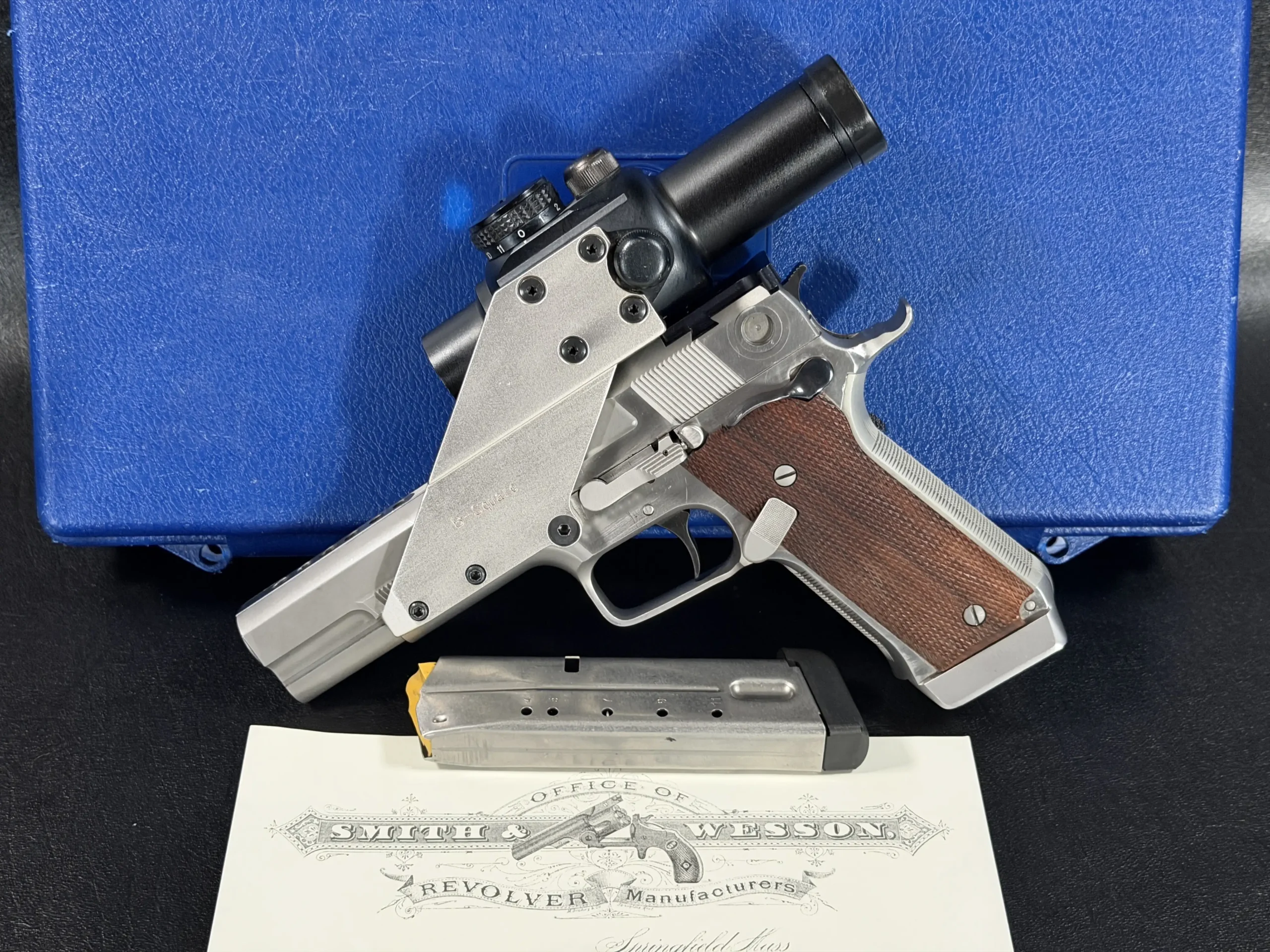 Altogether, the configuration captures an early stage in Performance Center development, when specialized competition builds explored new approaches to handgun setup and sighting systems. For collectors interested in Performance Center prototypes, competition firearms, and Smith & Wesson pistols, this is a distinctive example with documented factory history.