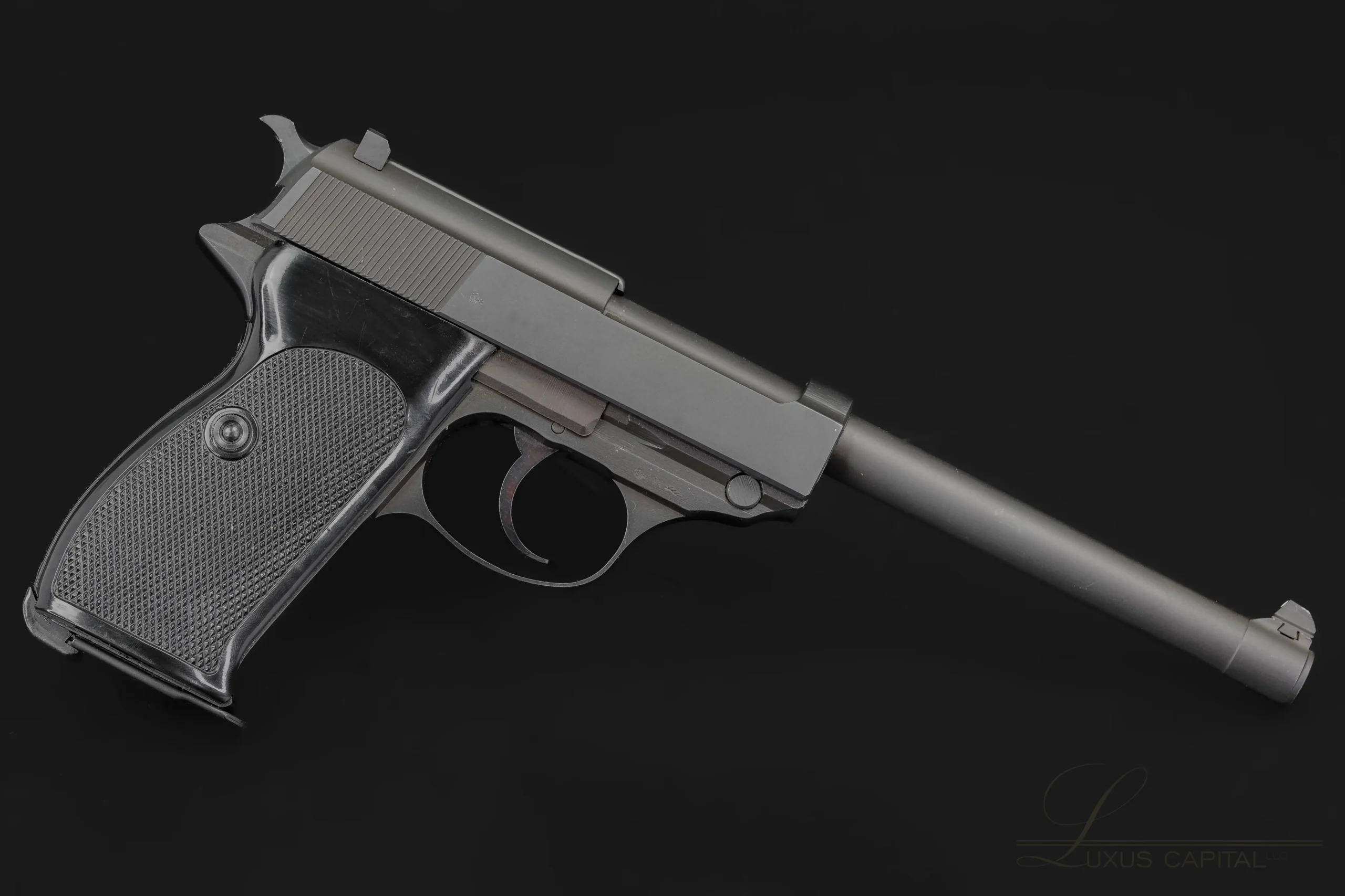 The Walther P38SD Long (Lang) takes the familiar P38 profile and extends it with a long barrel that gives the pistol a distinctly different look and feel. Chambered in 9mm Parabellum, this variant reflects a different direction in Walther’s postwar development, with proportions that emphasize its long-barrel configuration and the visual impact that comes with it.