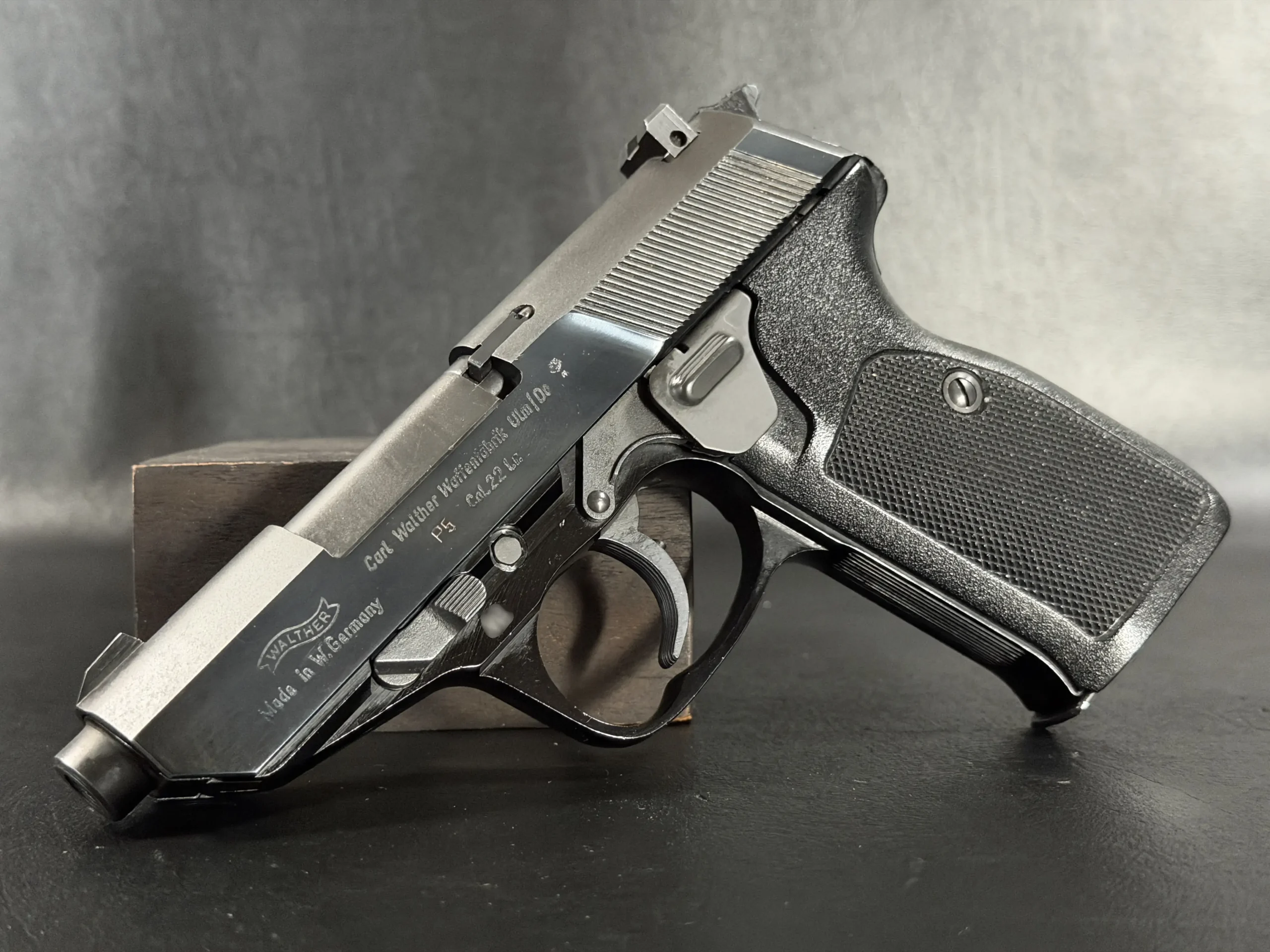 Originally developed as a successor to the post-war P38 line, the P5 introduced a more modern set of mechanical and ergonomic features. In this configuration, the design remains faithful to the platform’s established silhouette while presenting it in a rimfire chambering that gives the pistol its own appeal within the broader P5 family.