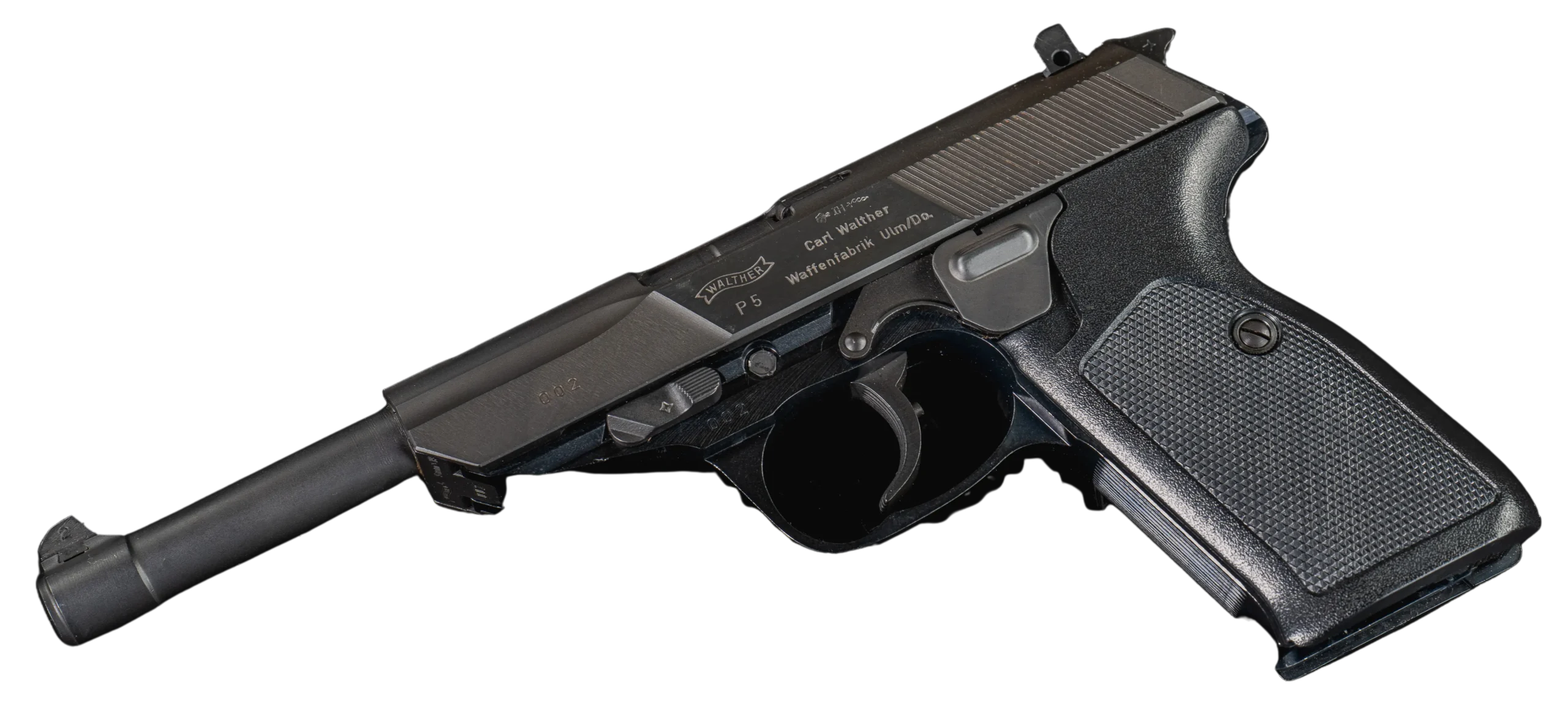 Introduced as part of the P5 line in the mid-1970s, the design used an aluminum alloy frame to reduce weight while maintaining the robust construction associated with Walther. The pistol also incorporated a firing pin safety, an added internal feature that marked the platform’s forward-looking approach.