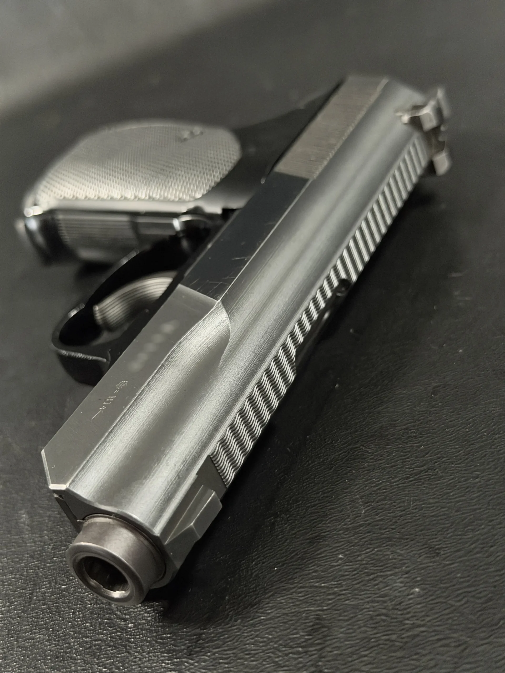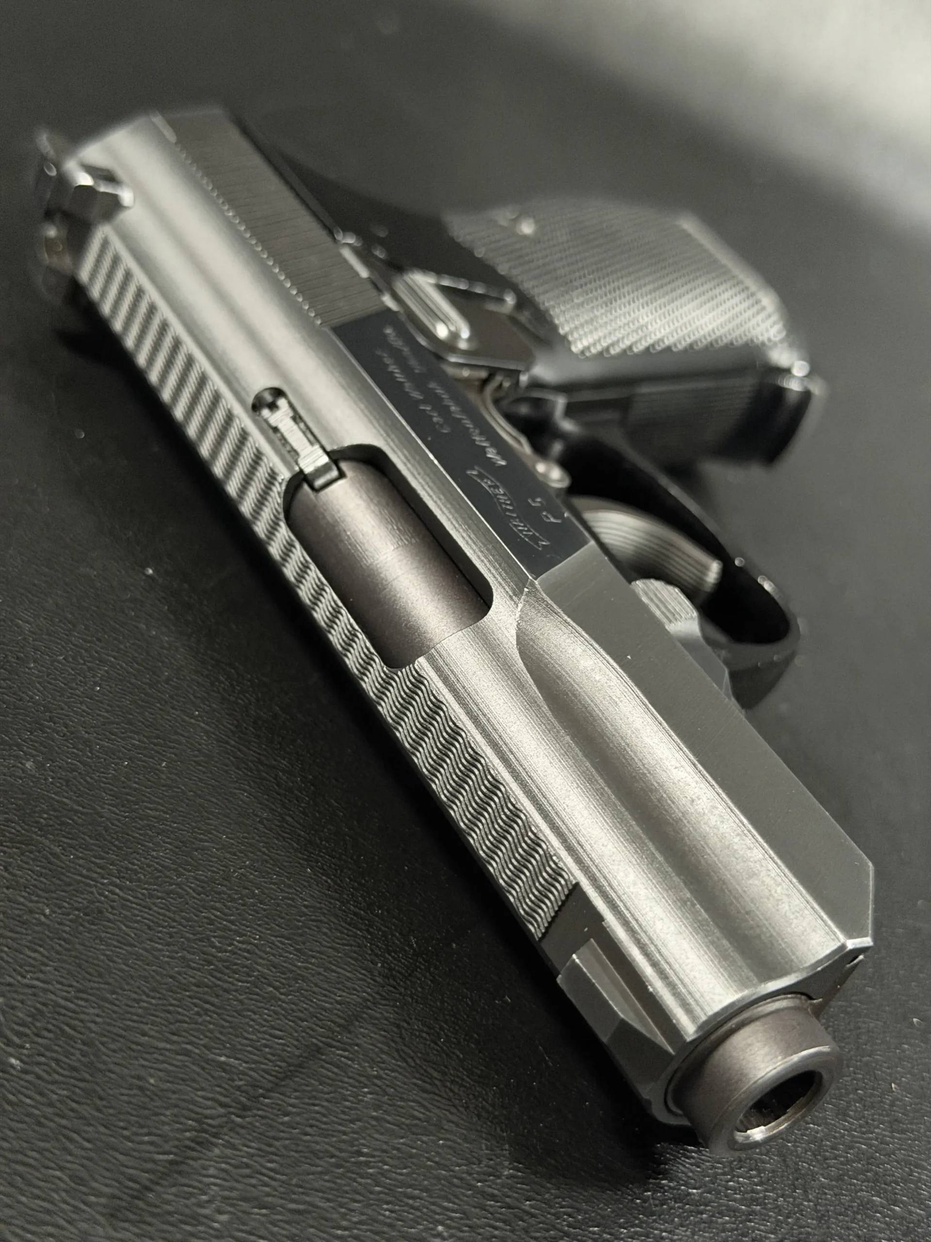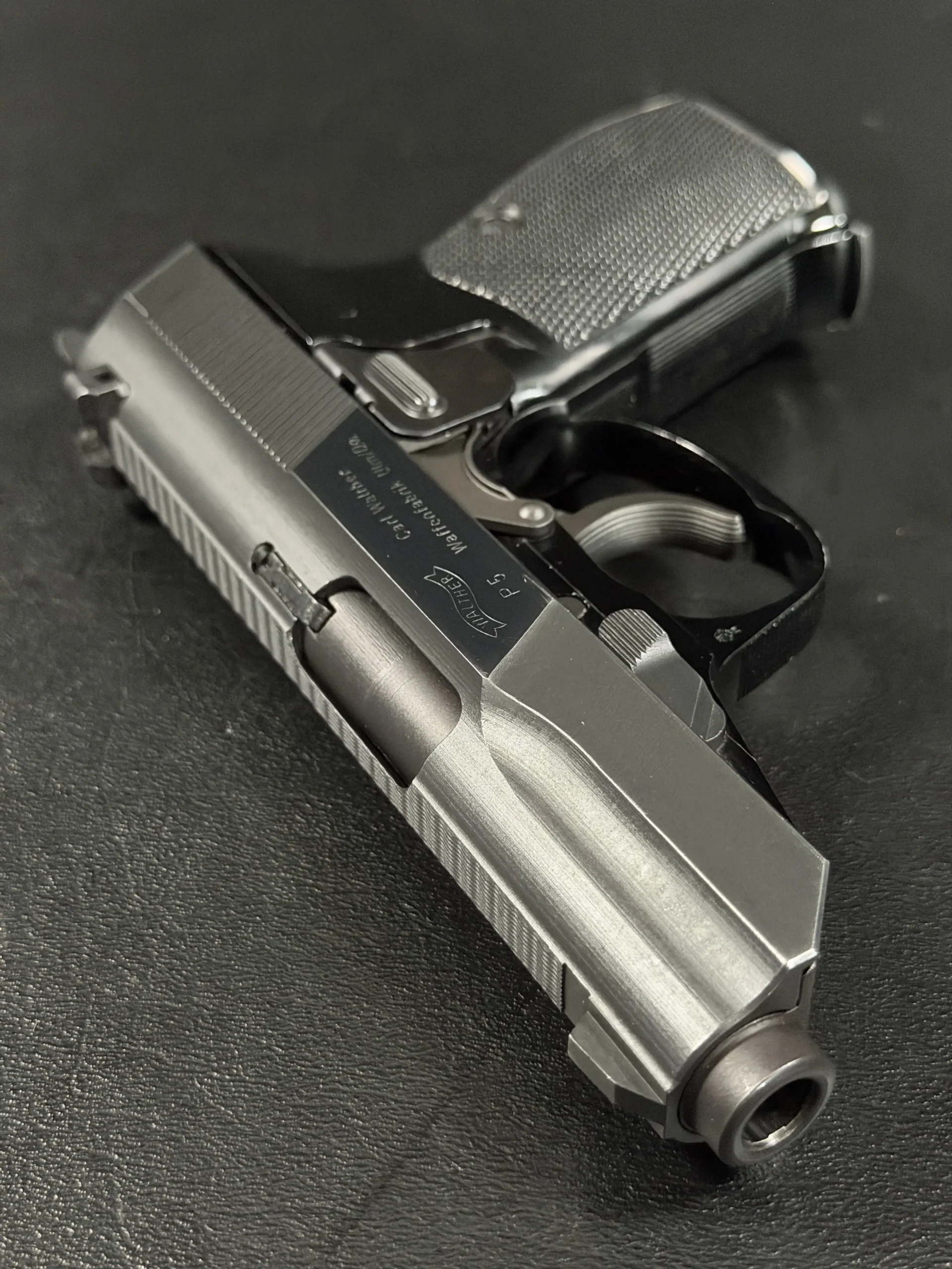 The design retains the locking block system associated with the P38 while incorporating updates such as a shorter slide, revised ergonomics, and a modernized safety and decocking system. One of the P5’s most recognizable features is its left-side ejection port, a distinctive engineering detail of the model.