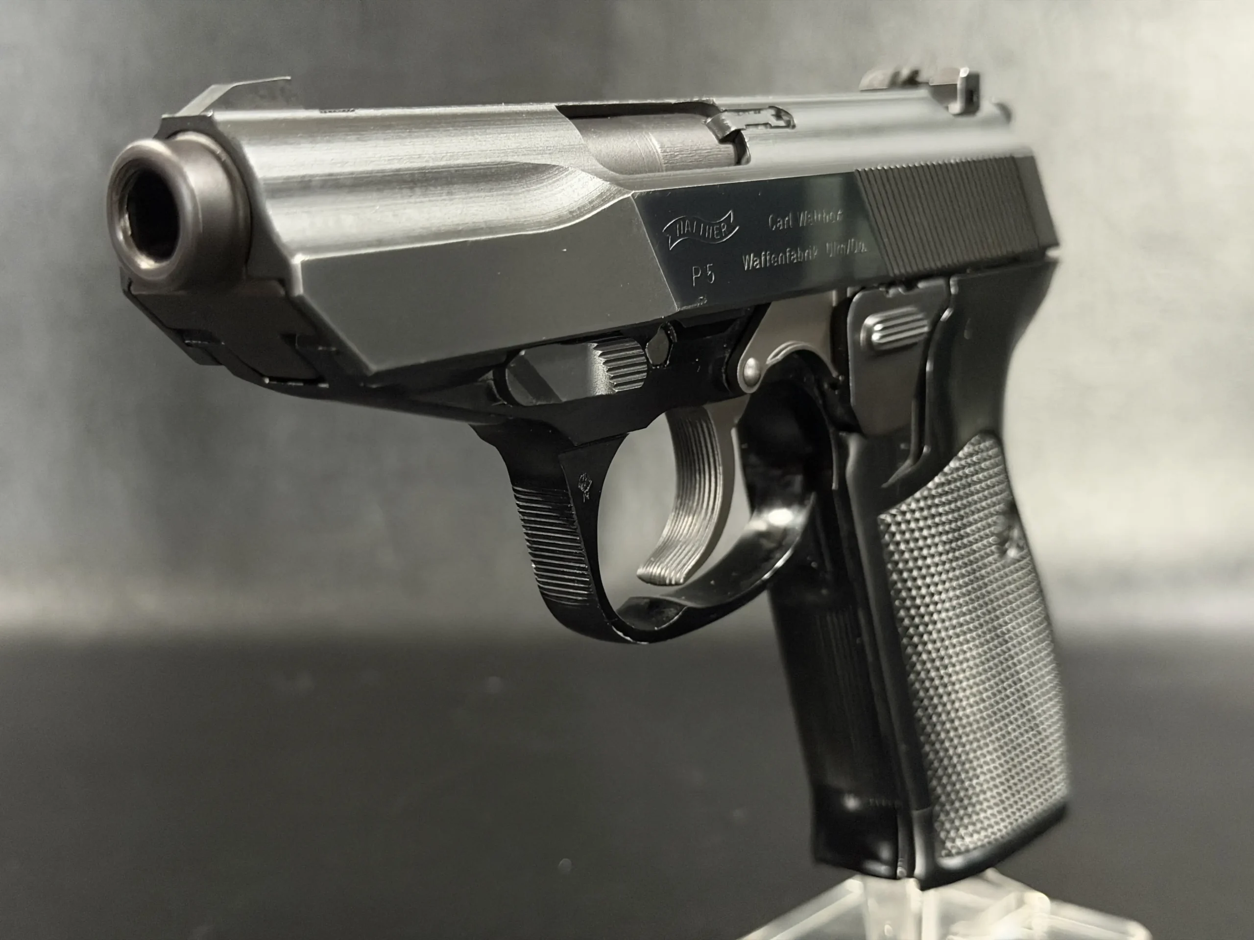 The Walther P5 reflects a key stage in post-war German handgun development, combining elements of the earlier Walther P38 with a more modern service-pistol layout. This example is a Walther P5 Prototype chambered in 9mm, offering a direct look at the model’s developmental period.