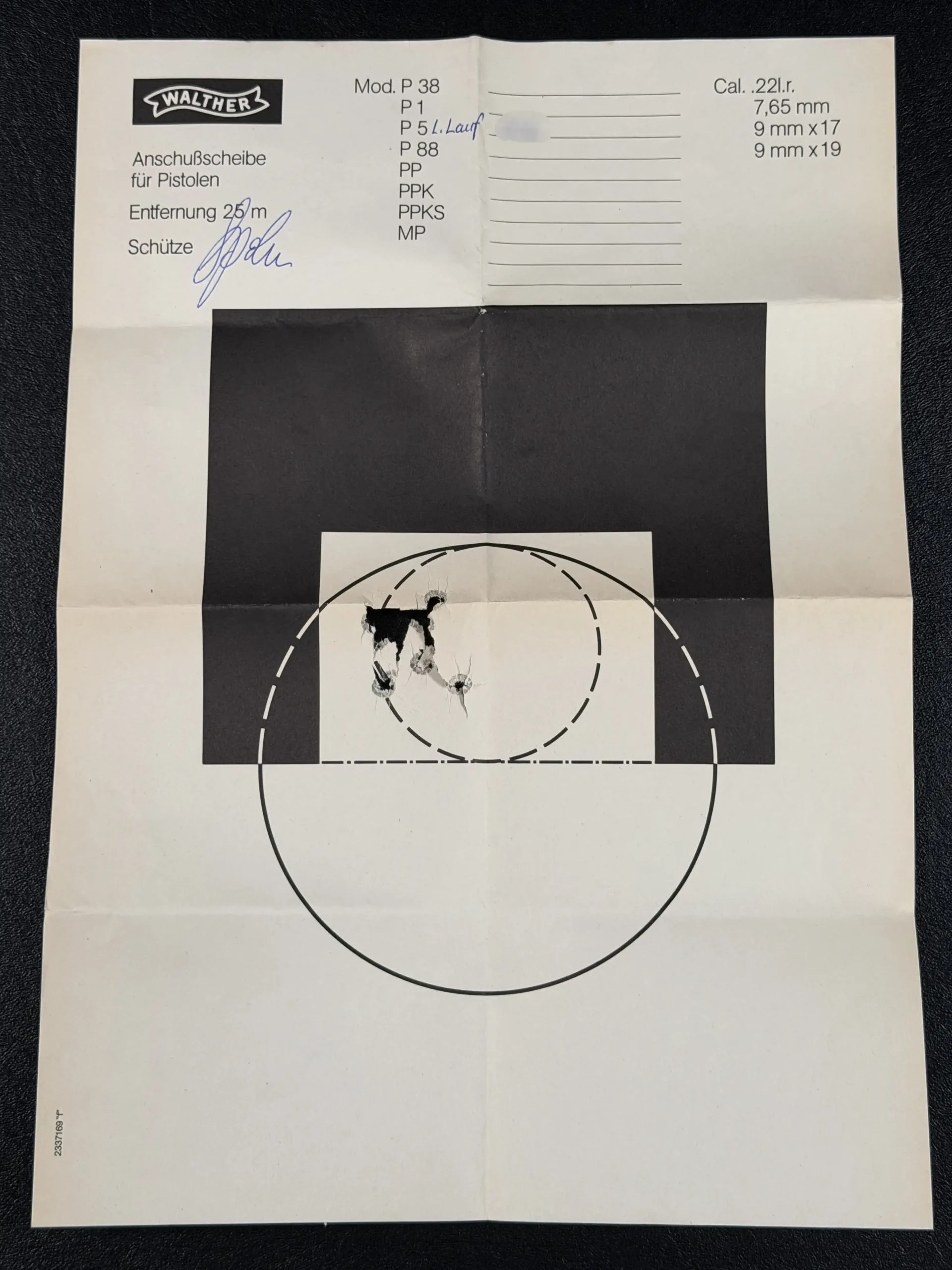 The Walther P5 is a late-20th-century service pistol that carries forward the recognizable lineage of the Walther P38 while introducing updated ergonomics and refined manufacturing details. Chambered in 9mm, it combines classic steel construction with a streamlined profile that reflects a transitional period in European pistol design.