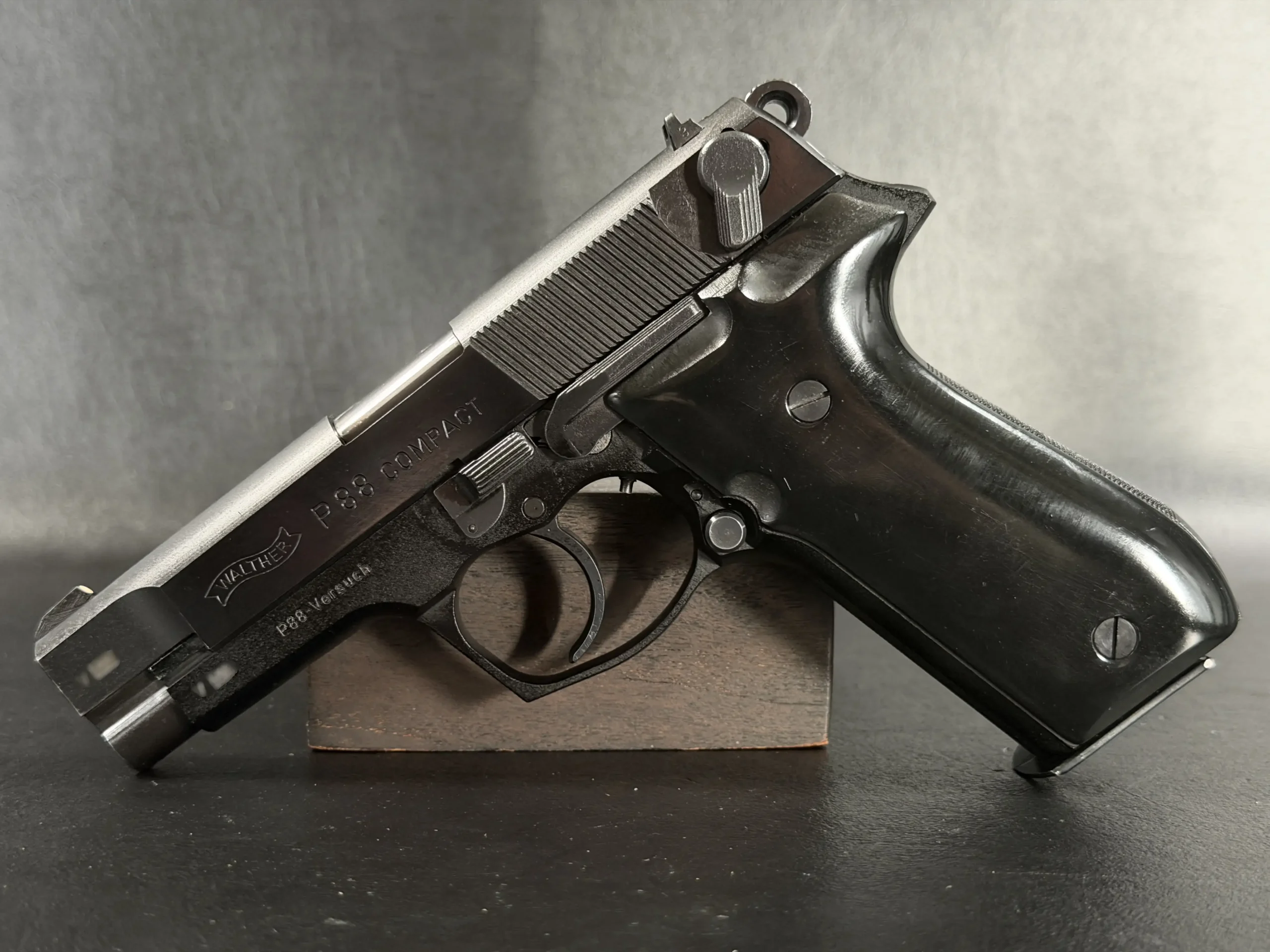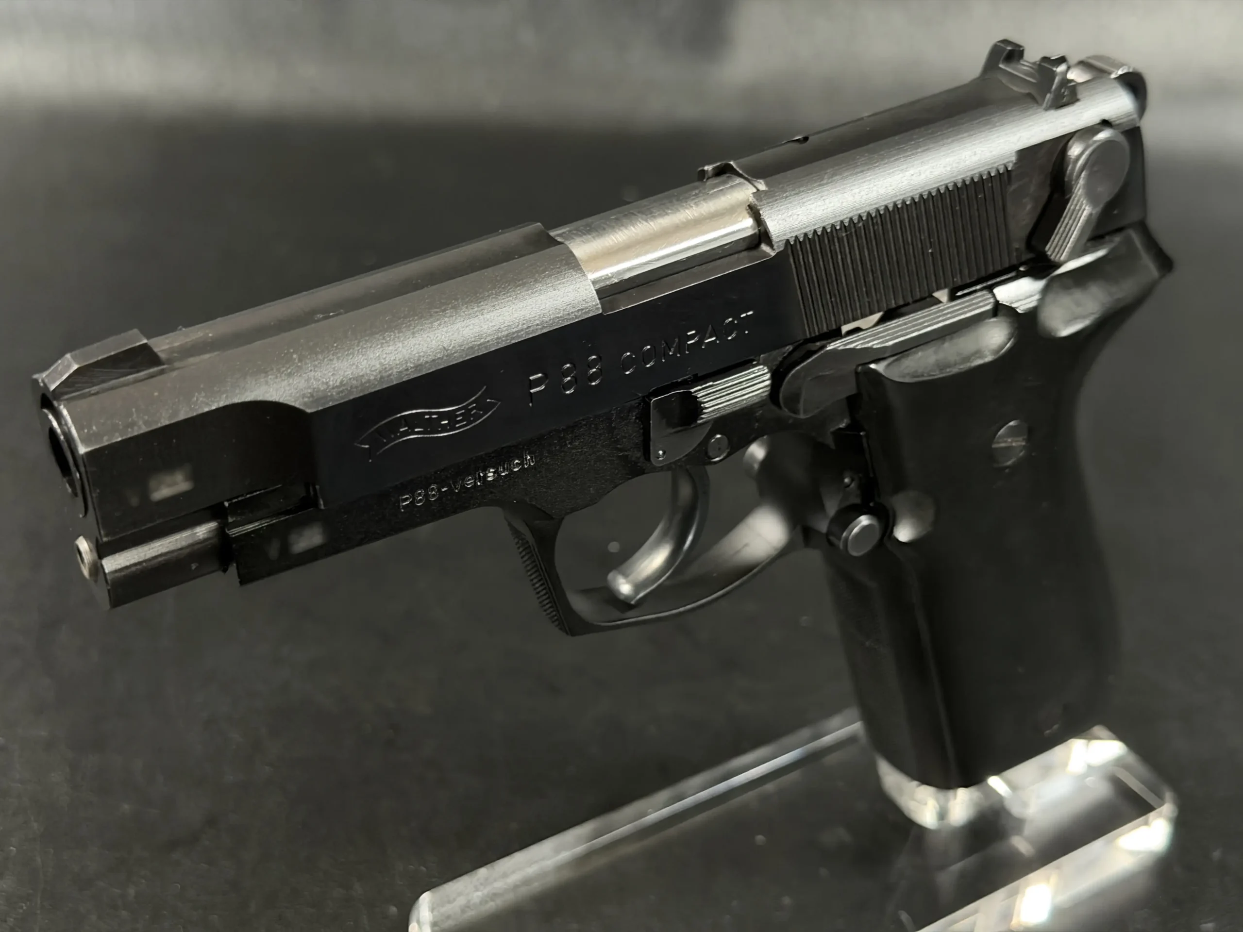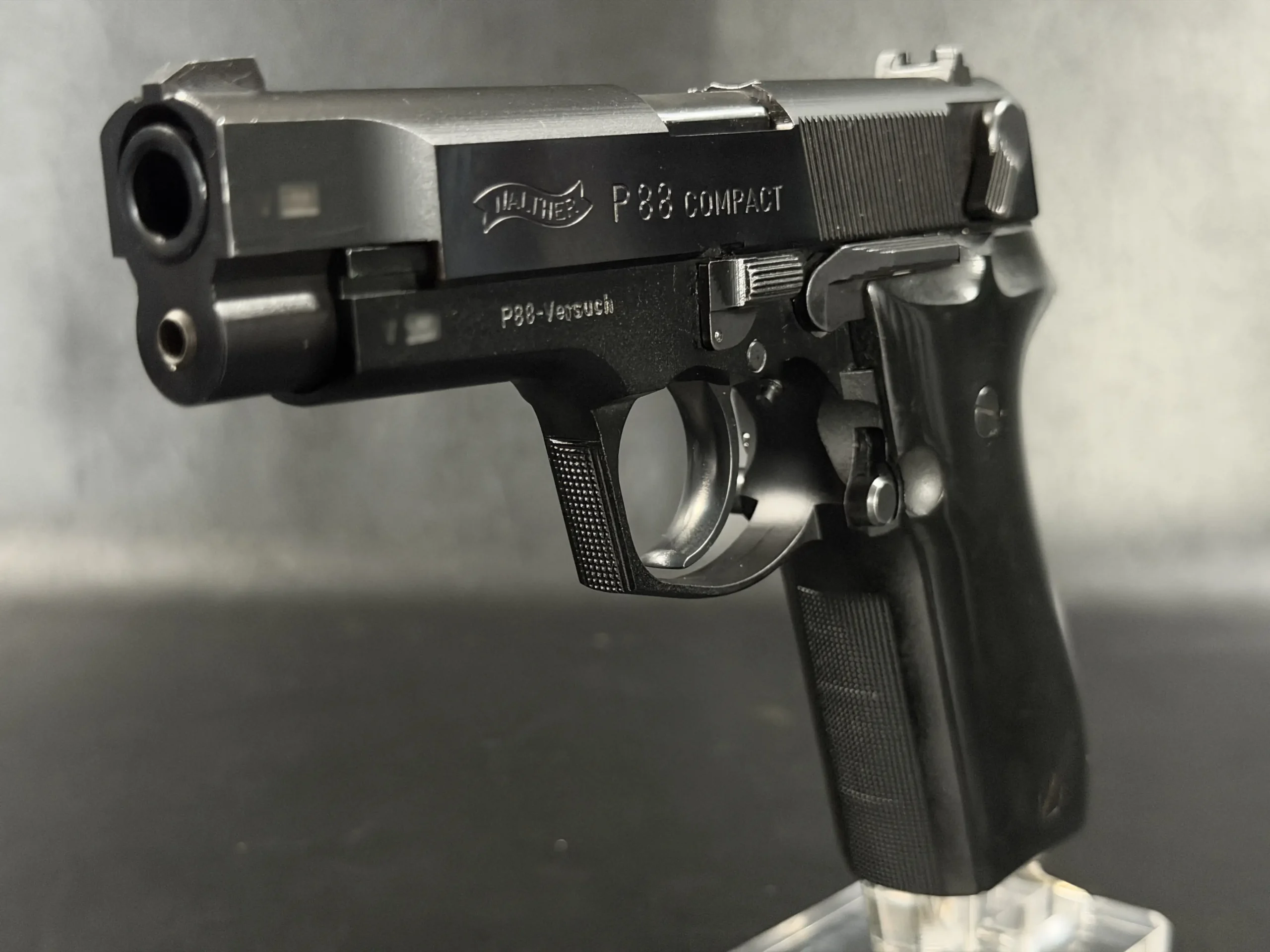 As a prototype, this example offers a closer look at the development of the P88 Compact before full production refinement. It is a notable piece for collectors interested in Walther design history, prototype firearms, and late Cold War-era service pistol development.
