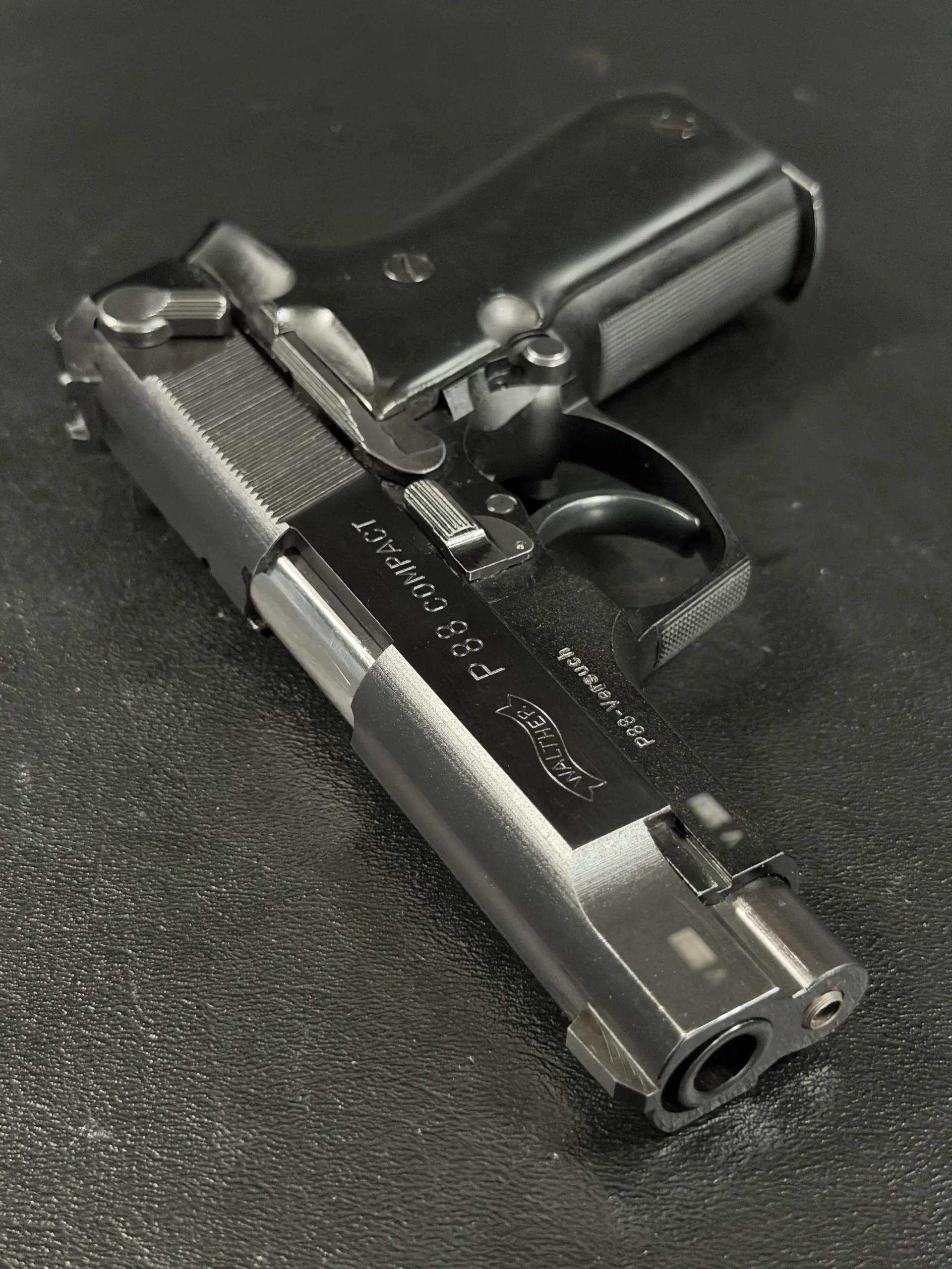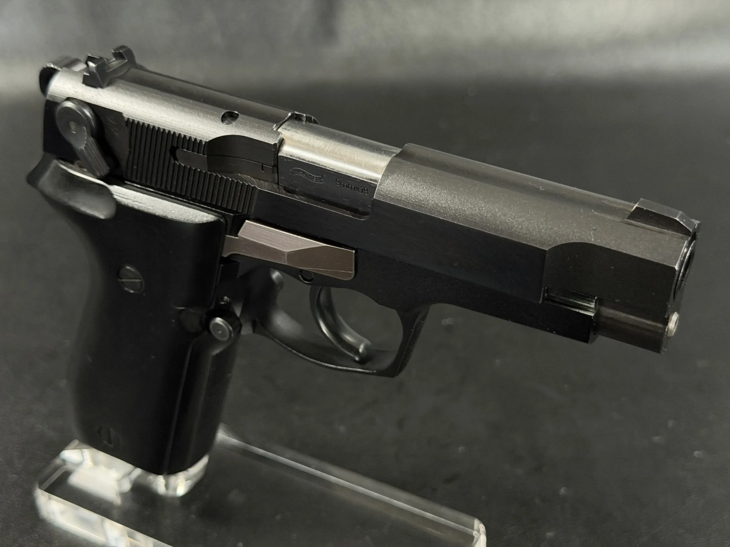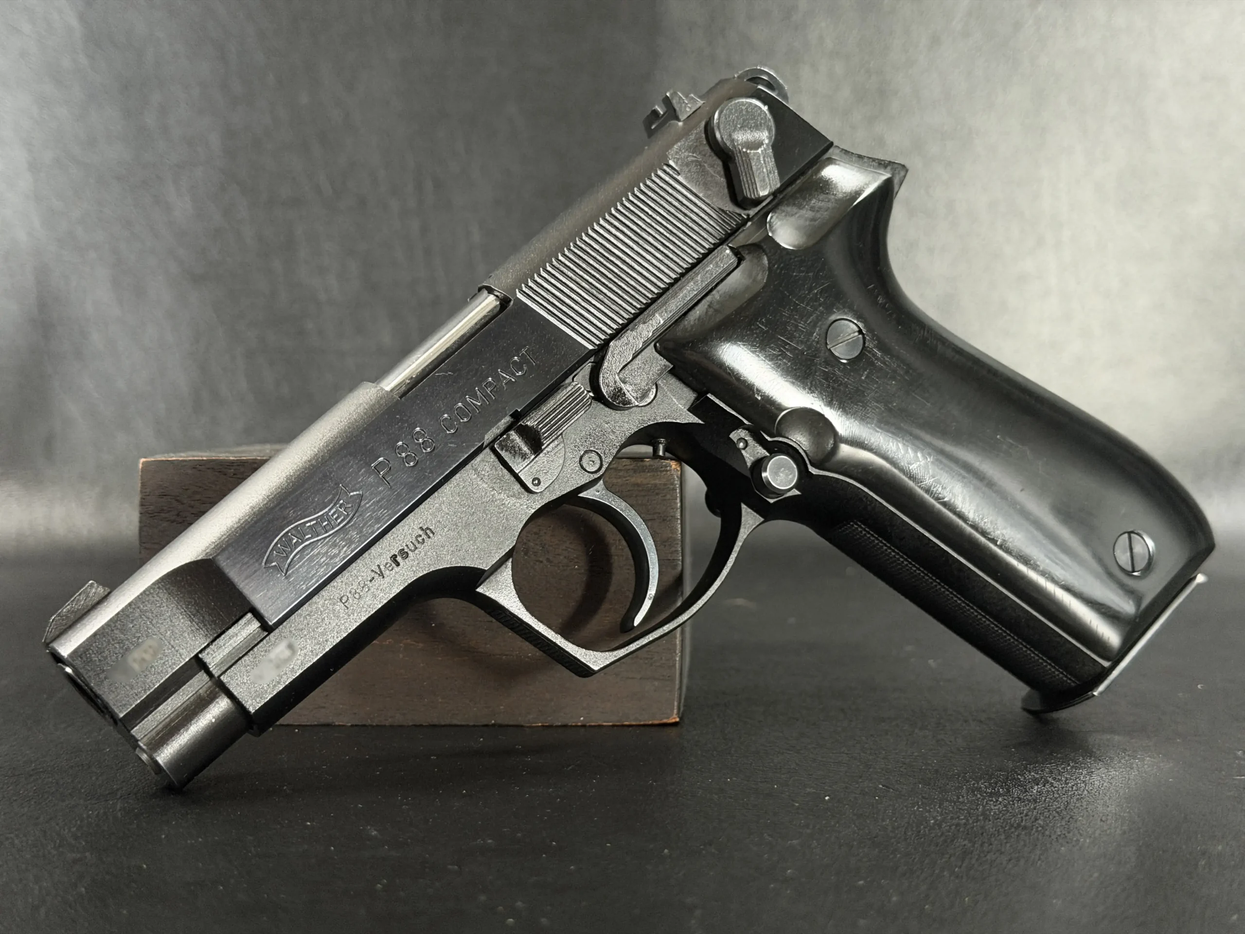 As a prototype, this example offers a closer look at the development of the P88 Compact before full production refinement. It is a notable piece for collectors interested in Walther design history, prototype firearms, and late Cold War-era service pistol development.