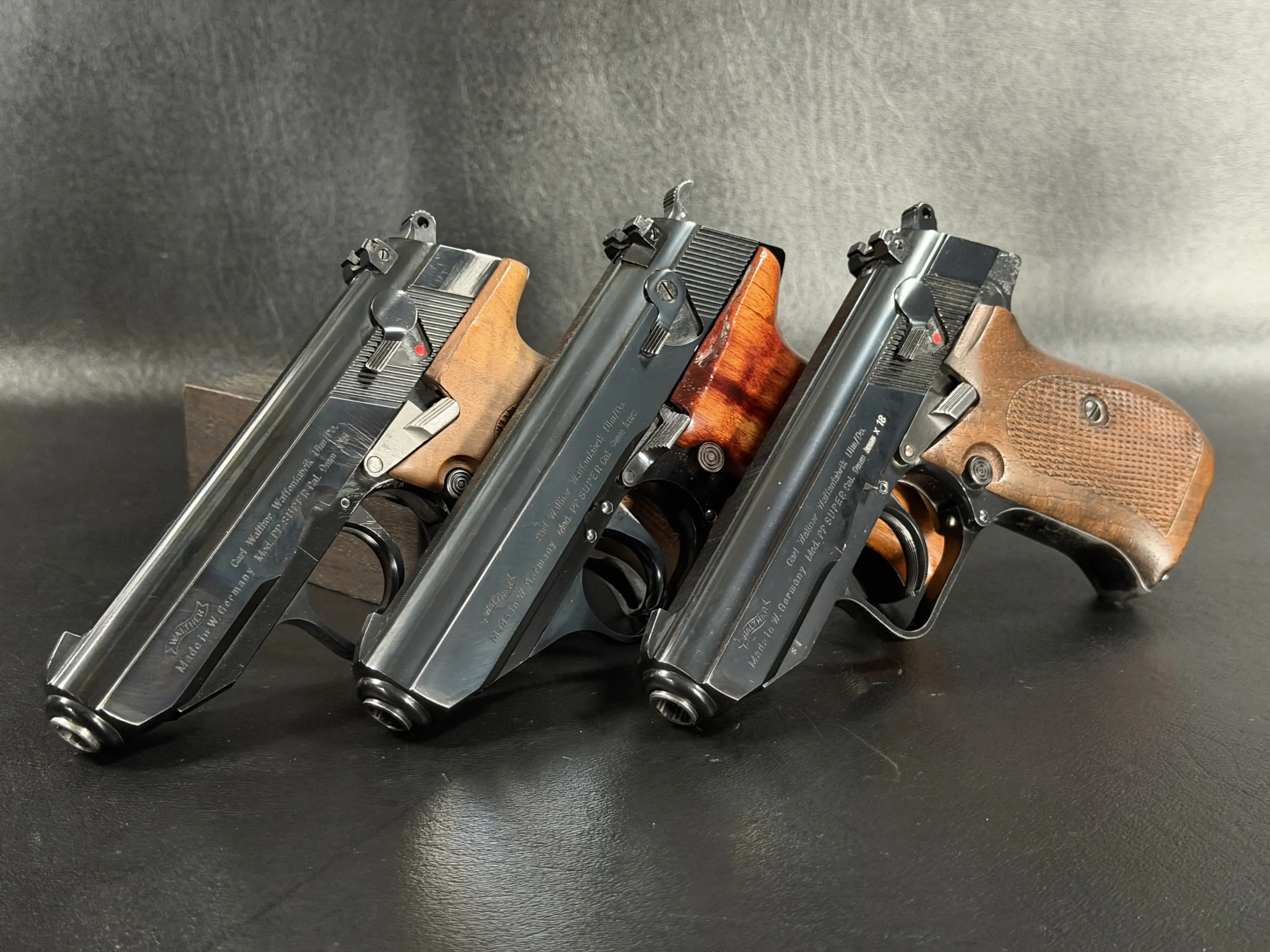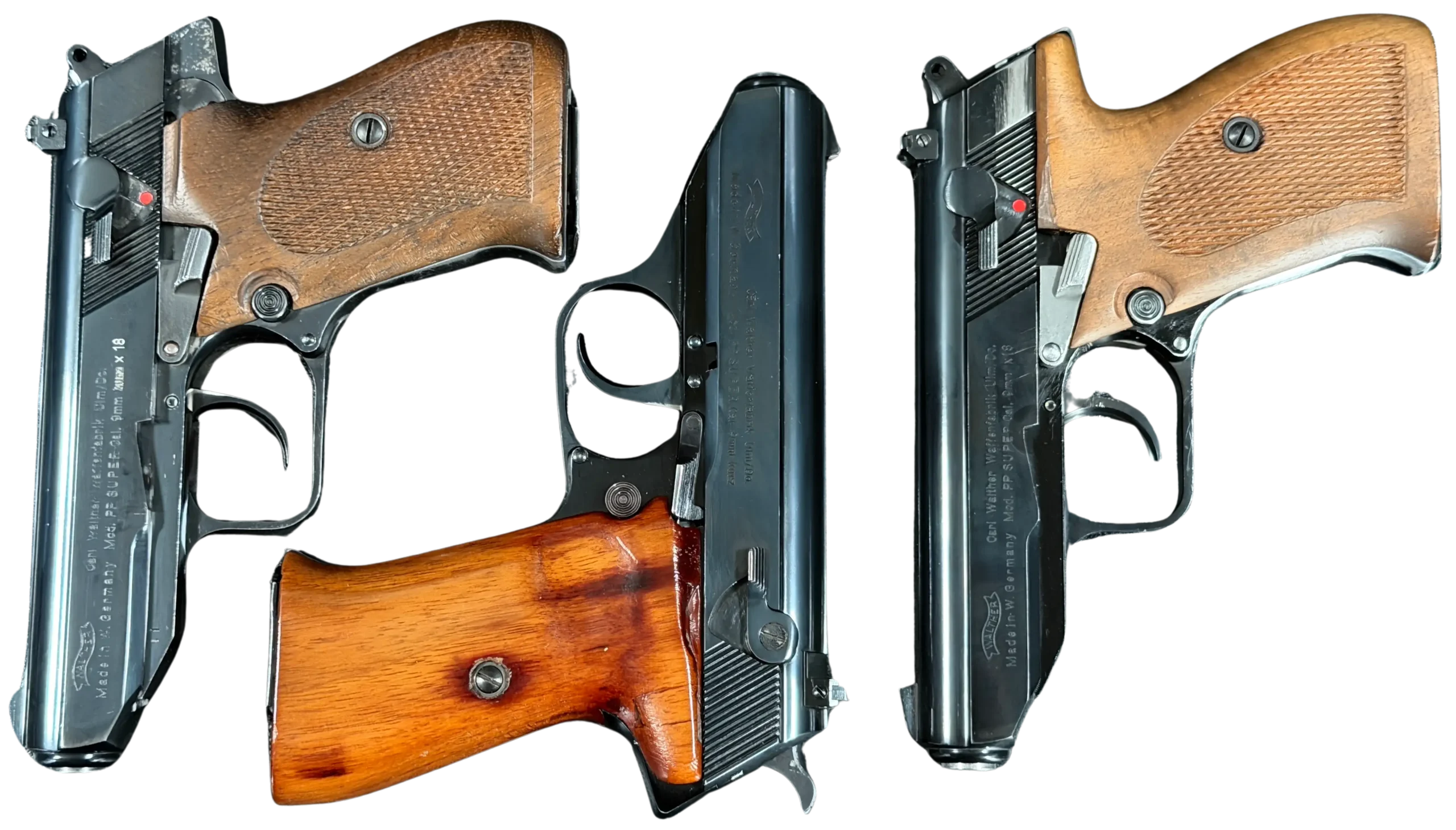 Across the trio, the pistols retain key Walther PP-family features, including double-action/single-action operation, a slide-mounted safety/decocker, and a fixed barrel design. The PP Super pattern also introduced structural changes intended to handle more powerful ammunition, while maintaining the familiar Walther slide profile and all-steel construction.